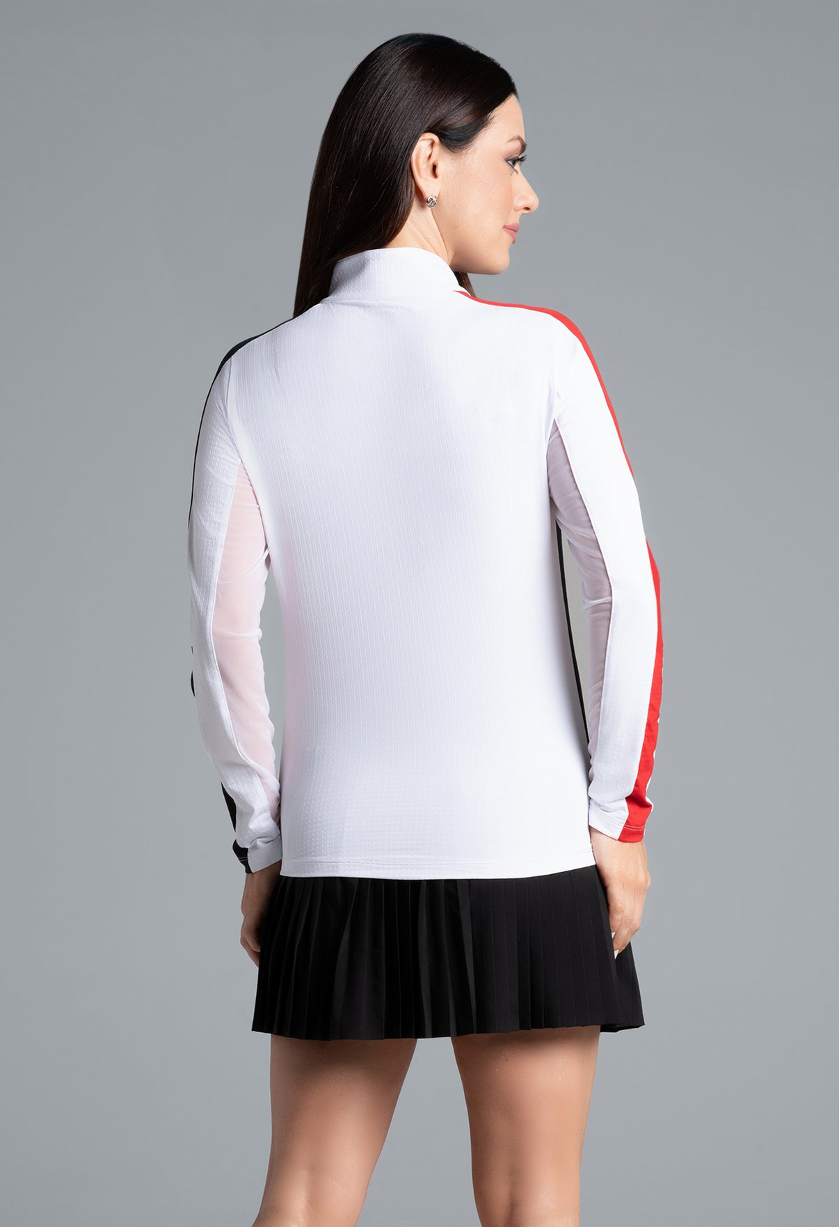 Look perfectly polished on the go with a lightweight long-sleeve half-zip, featuring our on-trend mock neck and eye-catching colorblock style. Designed with the patented Iceƒil® technology, UPF 50 protection, and moisture-wicking properties, you'll be keeping your cool from early morning coffee runs to impromptu cocktails at the country club.