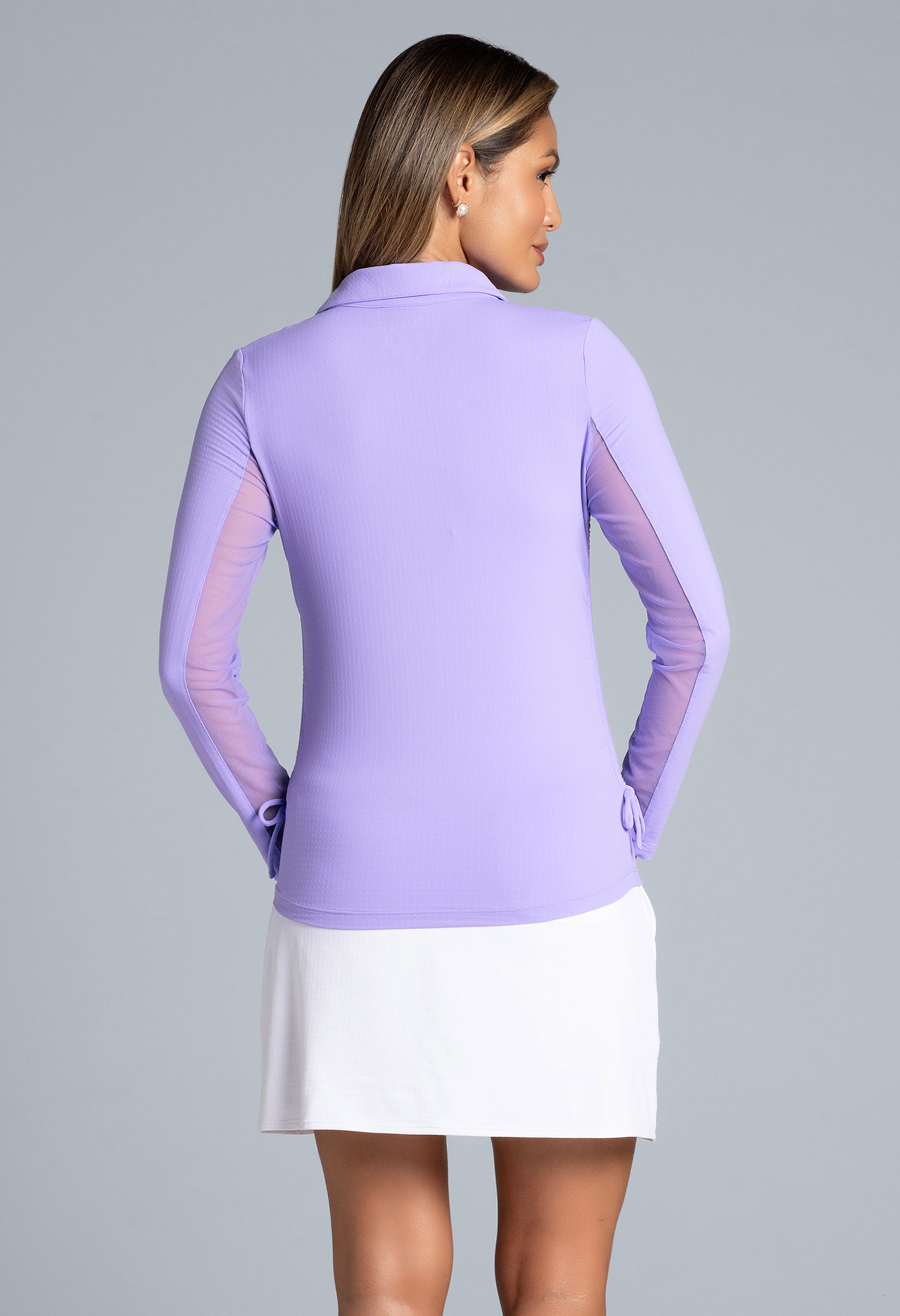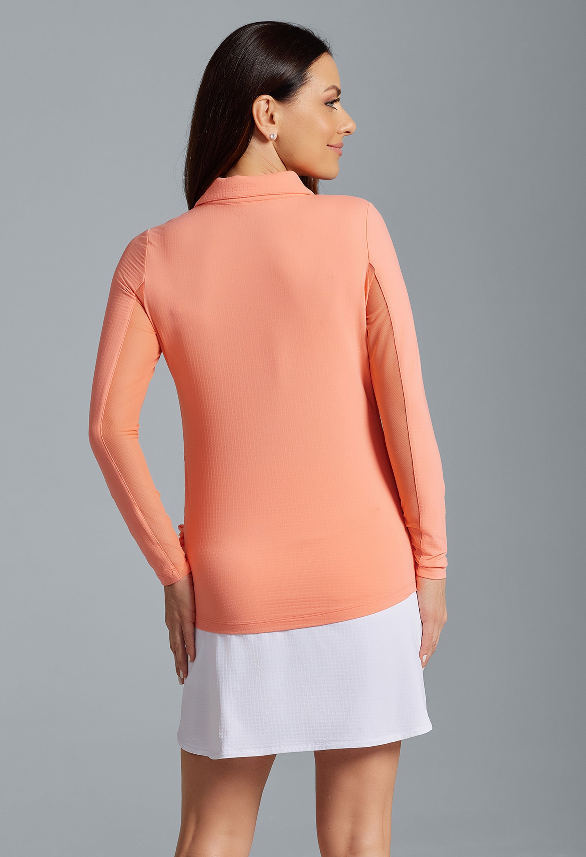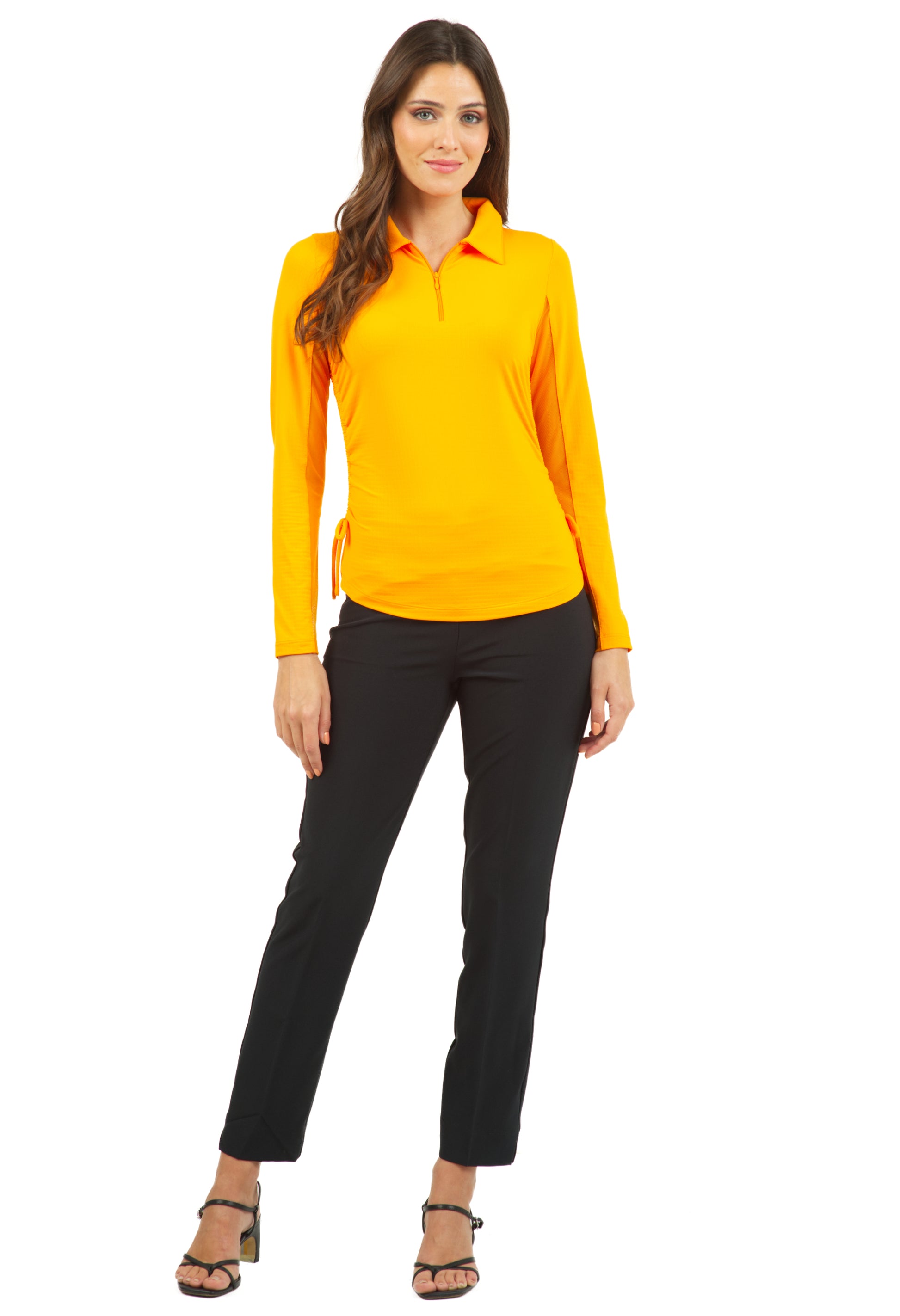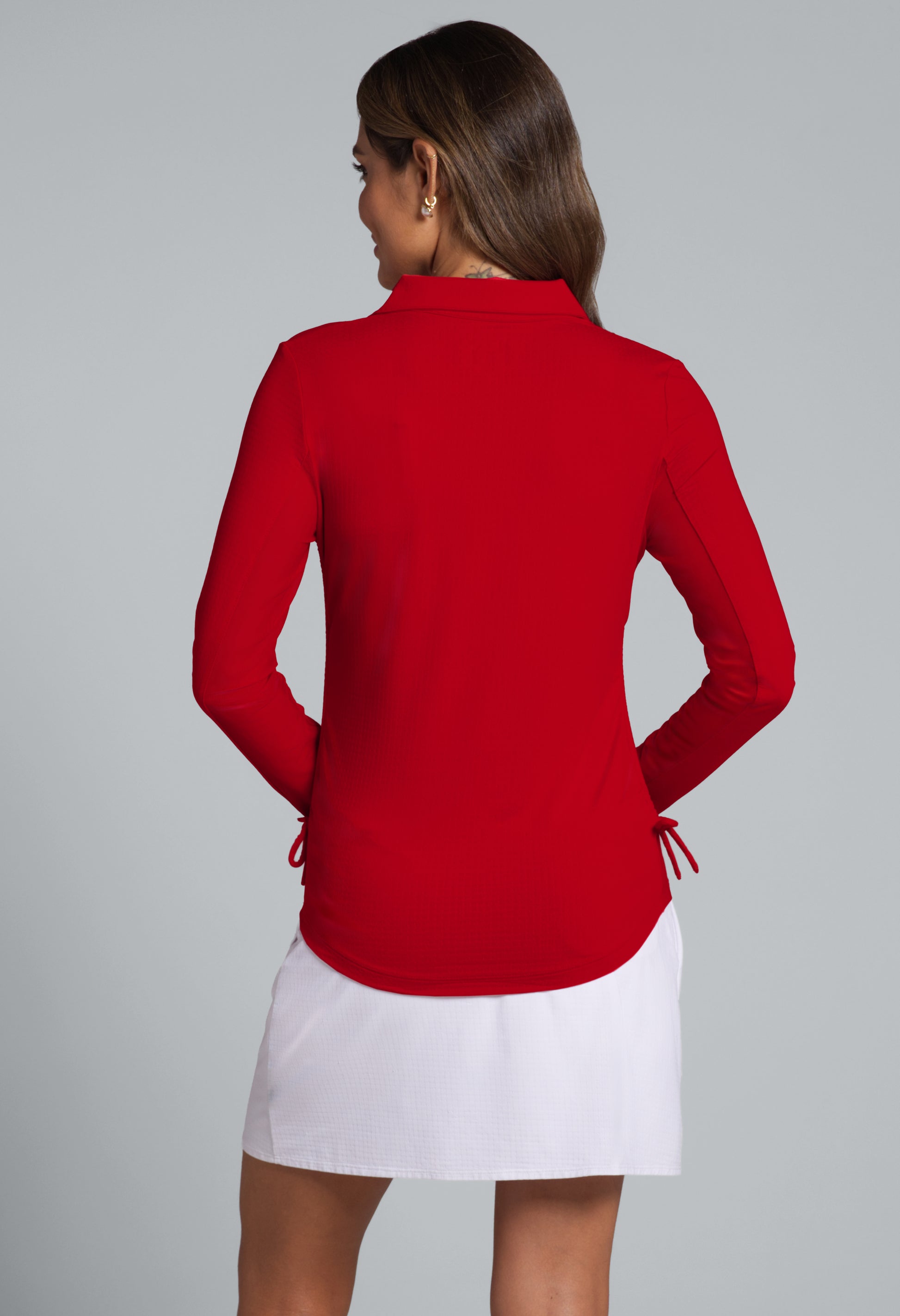 This flattering polo top has adjustable ties along the sides to let you create the length and look you choose. This silhouette features our patented Iceƒil Cooling Technology lowering your skin temperature up to five degrees. The mesh inner arm panels provide additional ventilation to keep you cool and dry for all your athleisure activities. UPF 50+ sun protection protects you from the sun along with anti-bacterial and moisture wicking properties allows you to look and feel your best on the hottest humid days.