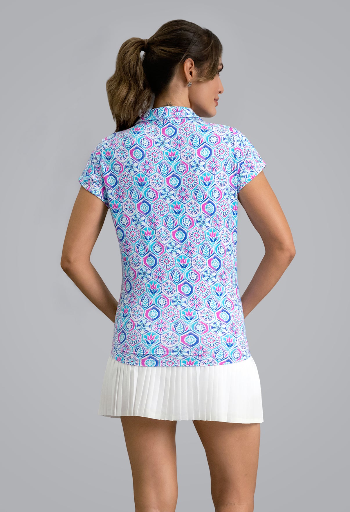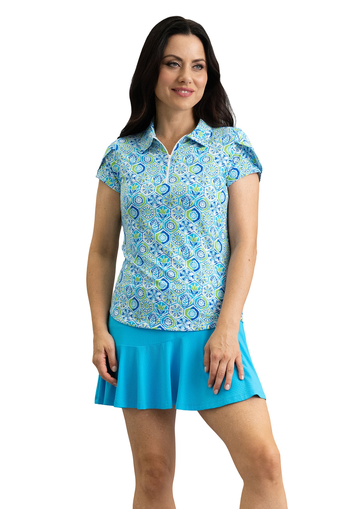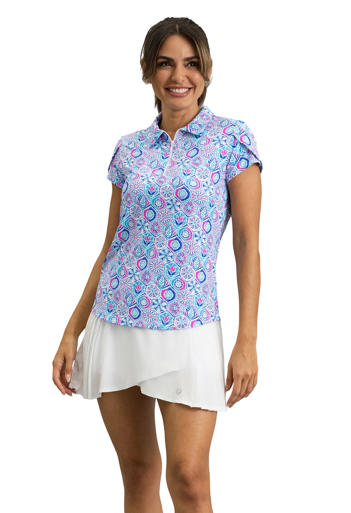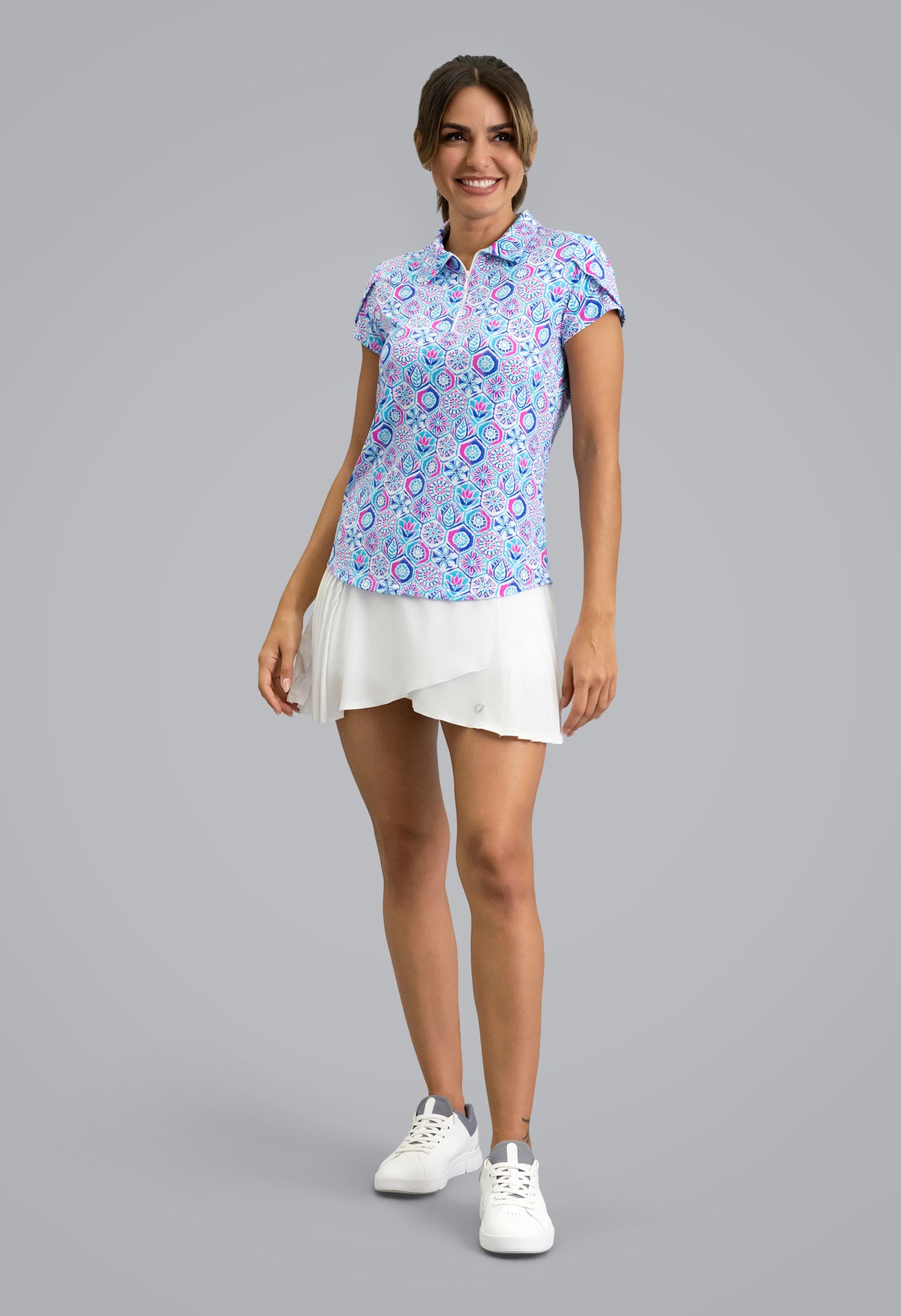 A mix of crisp lines and lively color gives the Alexis Print Tulip Sleeve Top its modern charm. Feminine tulip sleeves add a flattering finish and easy movement, while the zip placket lends a sleek, sporty touch. Made with our signature IceFil® fabric, it’s soft, light, and breathable—cooling the skin by up to five degrees while wicking away moisture and resisting odor. UPF 50+ sun protection makes it ready for wherever the day—or night—takes you.
