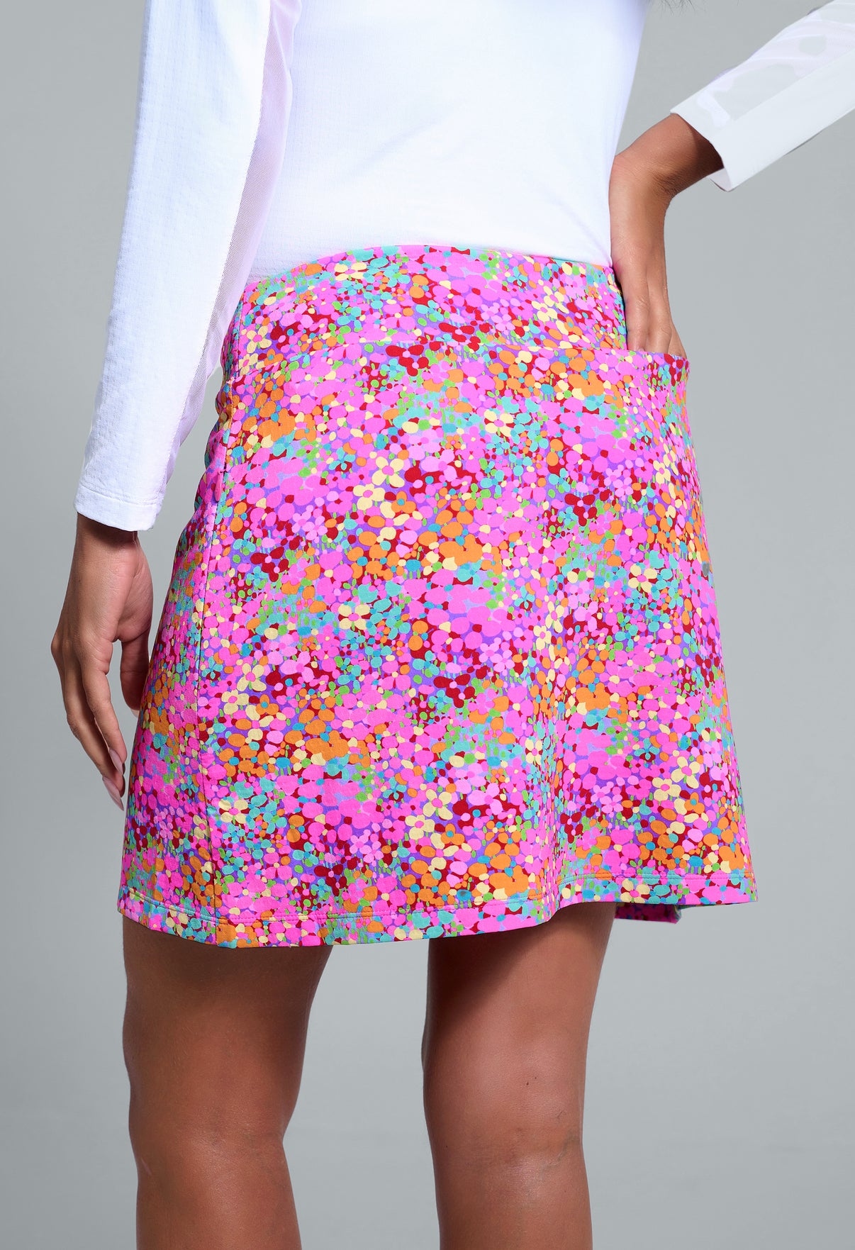 Color and confidence are combined in the Allana Faux Wrap Skort with a splash of floral energy in a flattering, functional silhouette. The wrap-front detail, built-in shorts, and side pockets deliver comfort and versatility. Soft, breathable, and light, this skort is built with Iceƒil® cooling technology, UPF 50+ sun protection, moisture-wicking, and anti-stink features to keep you fresh from sun-up to social hour.