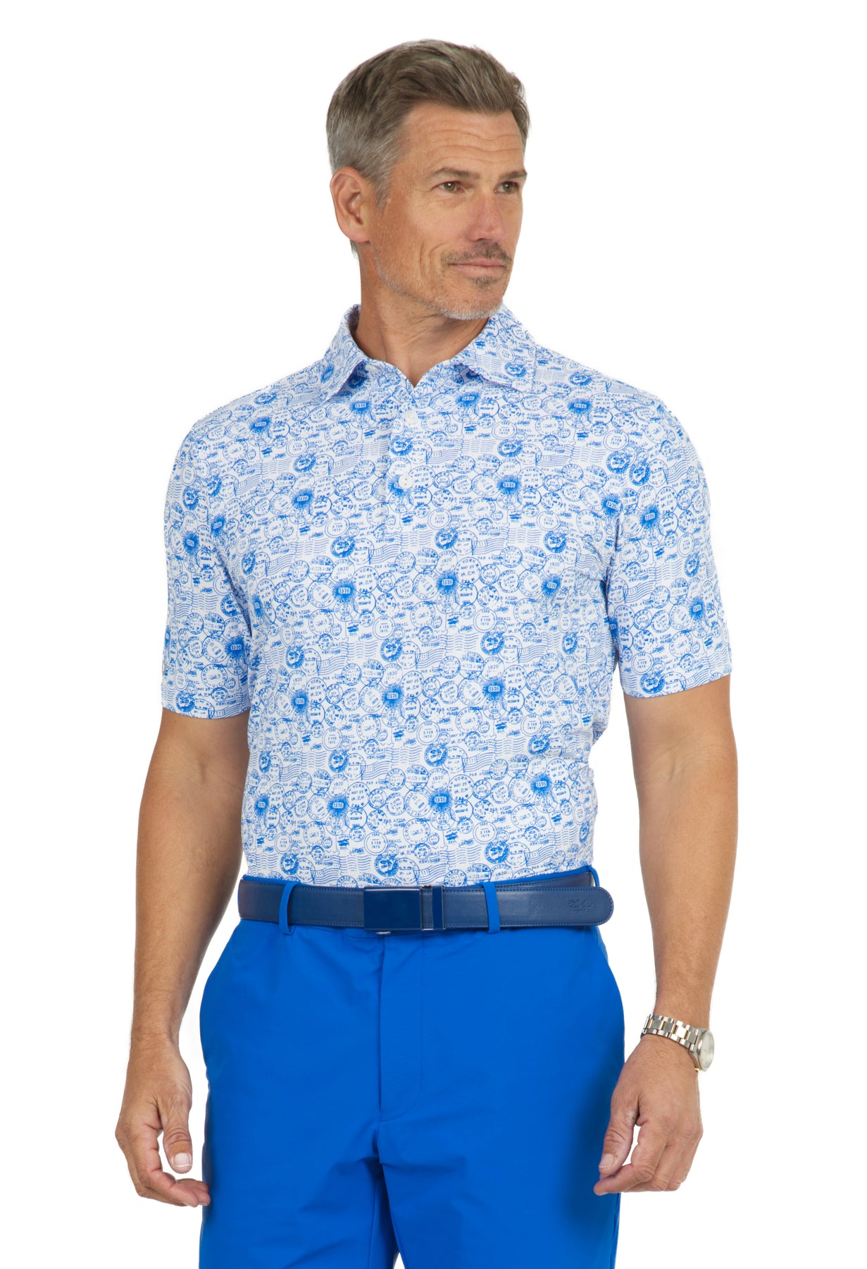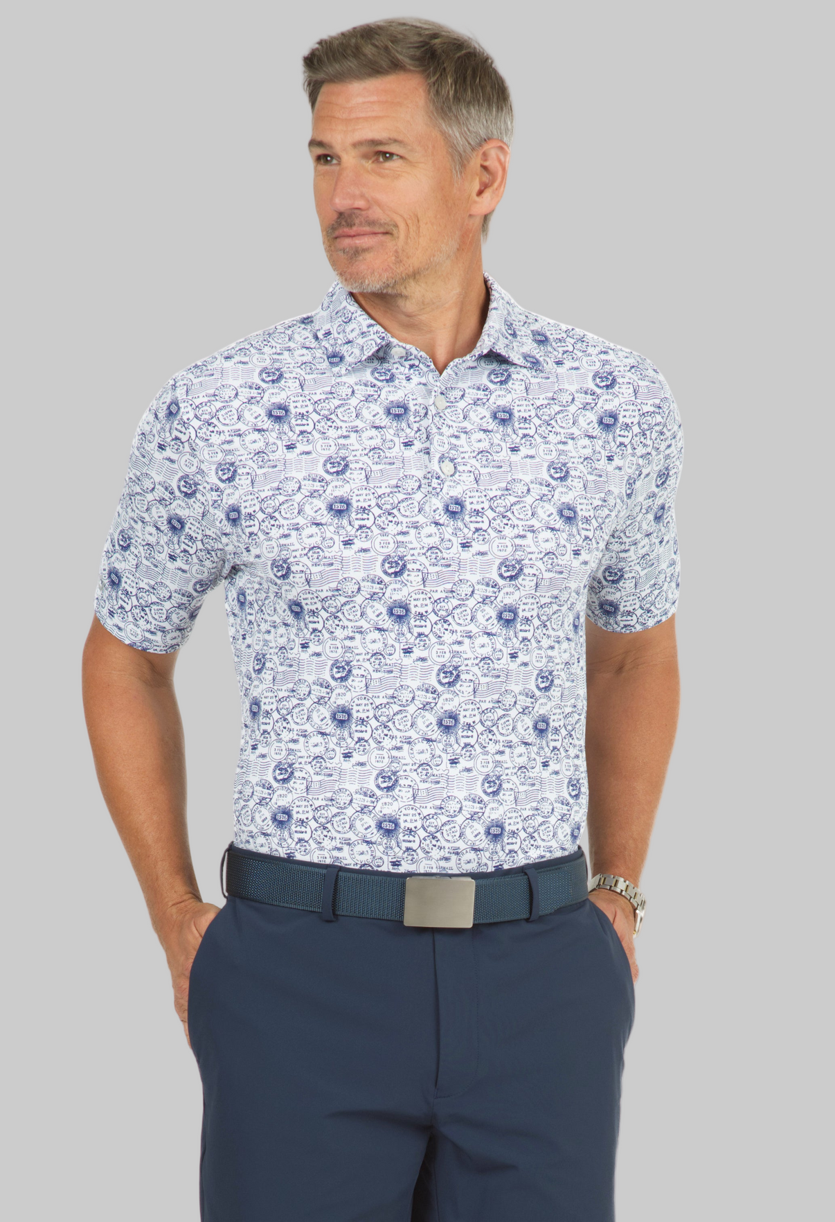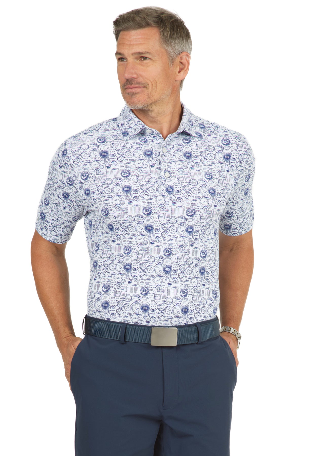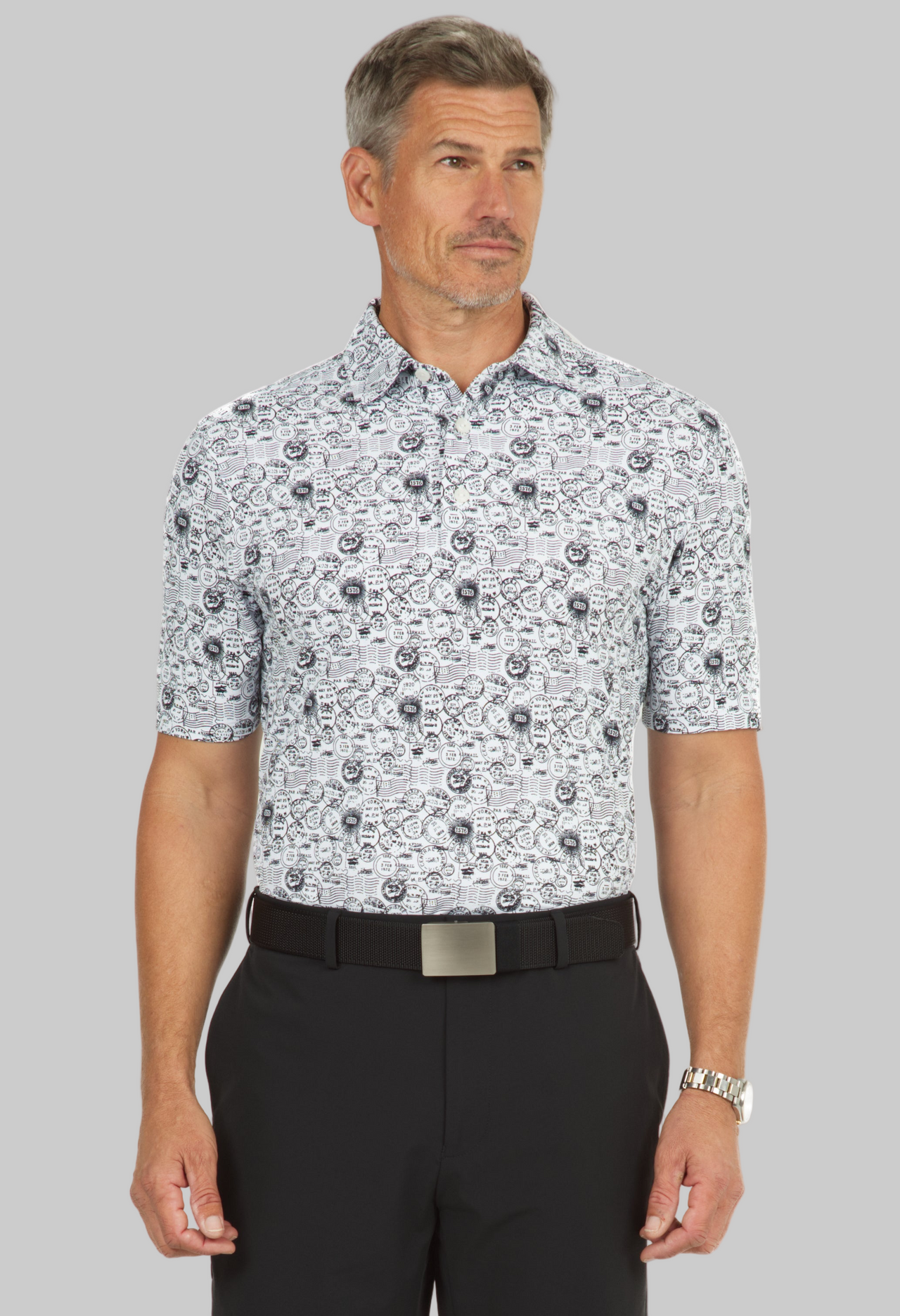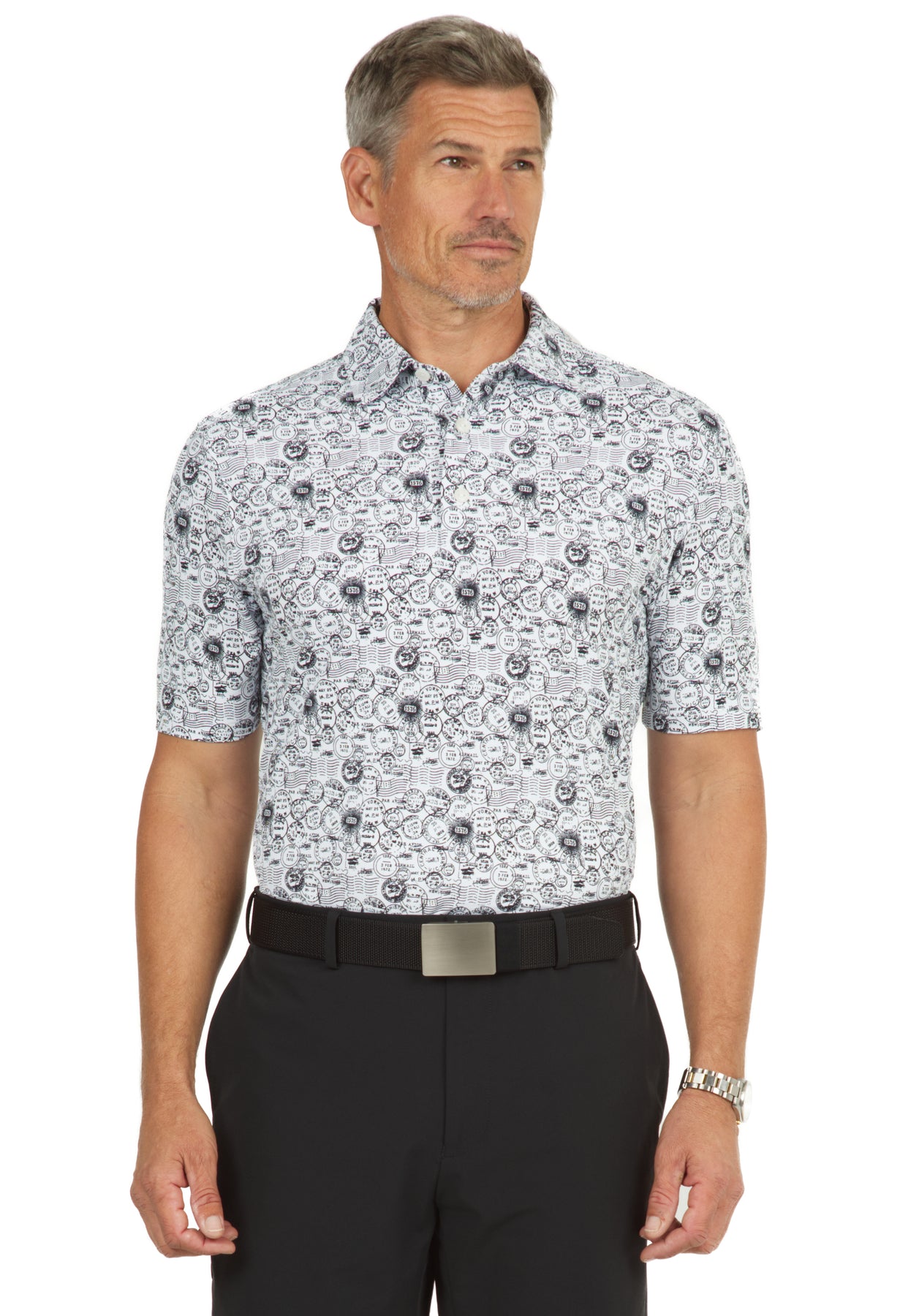 Antique Stamp Print Short Sleeve Polo - 94147 (Modern Fit)
