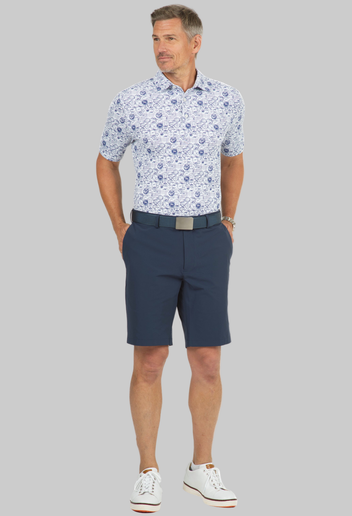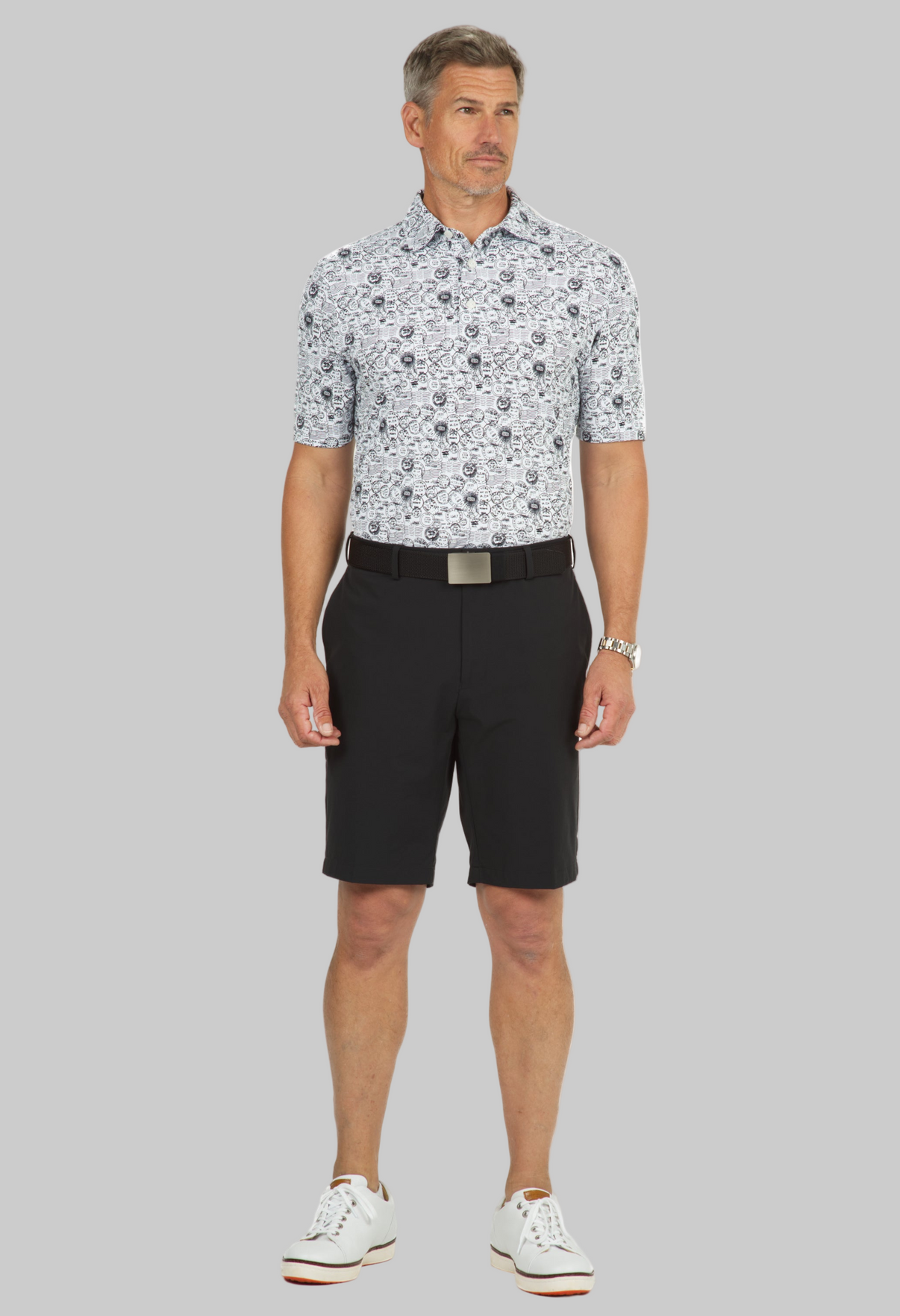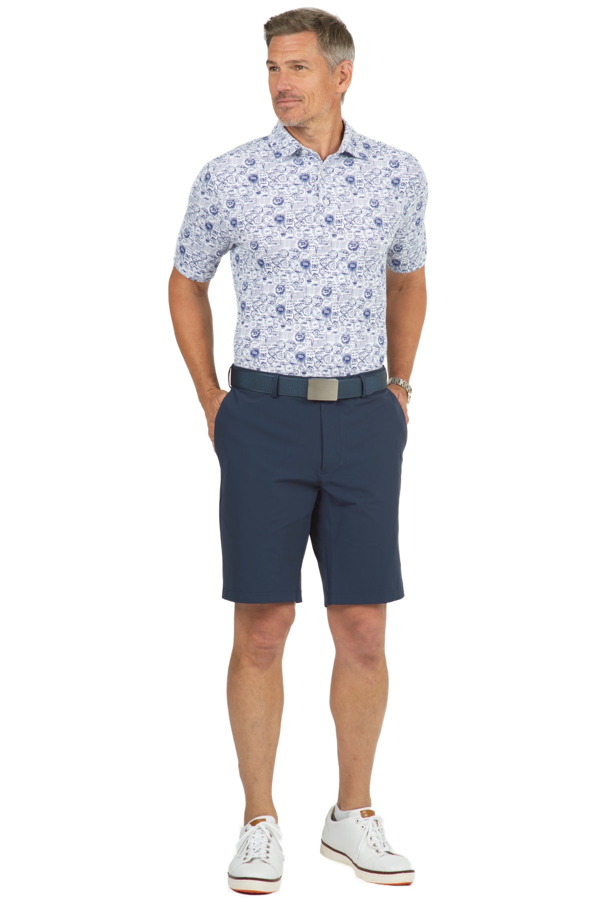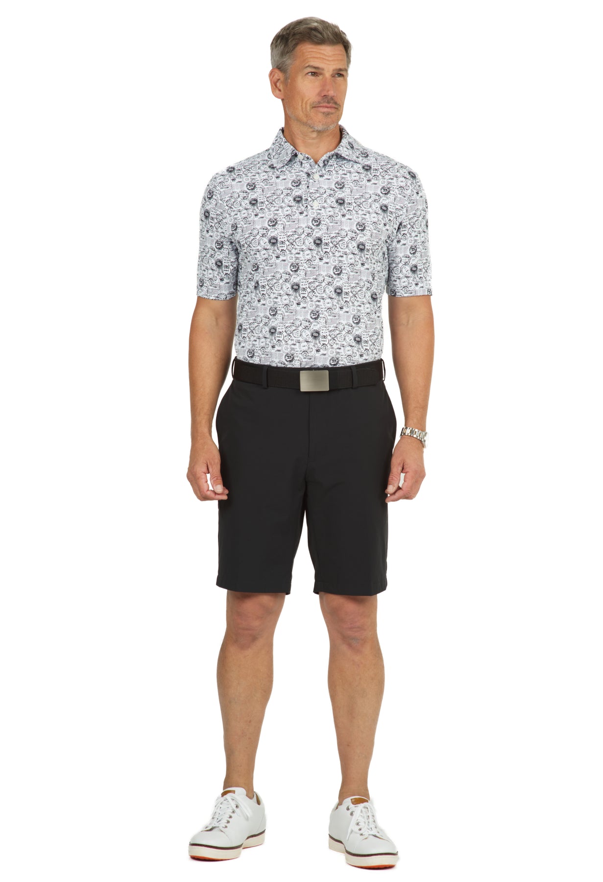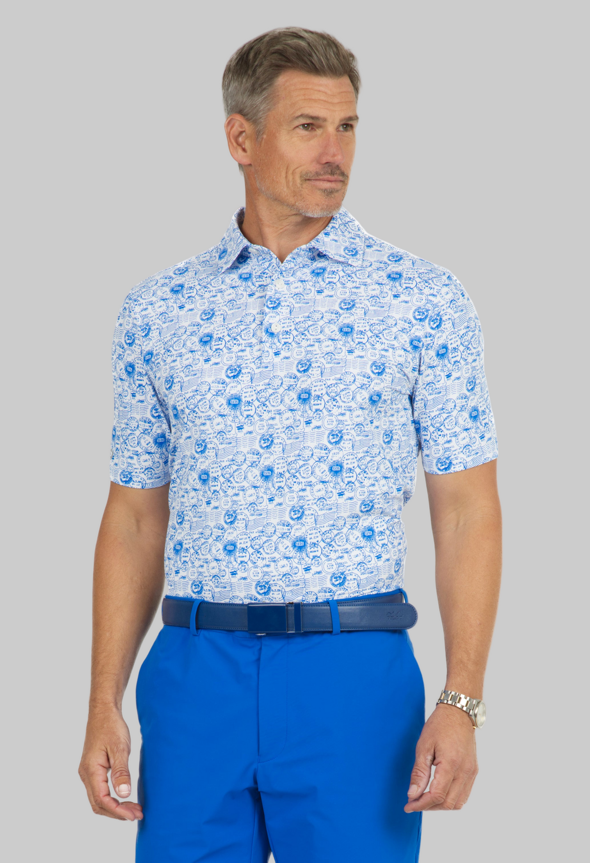 Antique Stamp Print Short Sleeve Polo - 94147 (Modern Fit)
