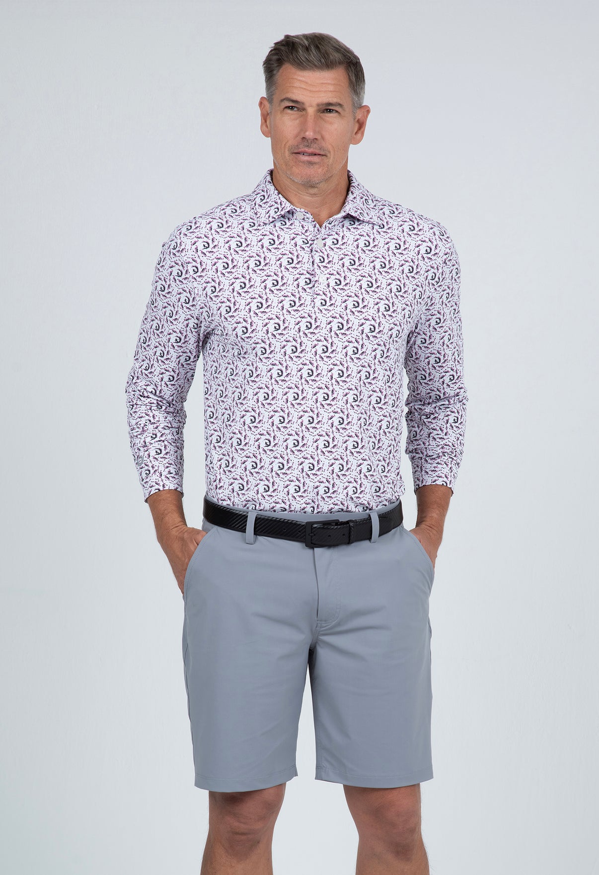 Big Wave Print Long Sleeve Polo (Modern Fit)