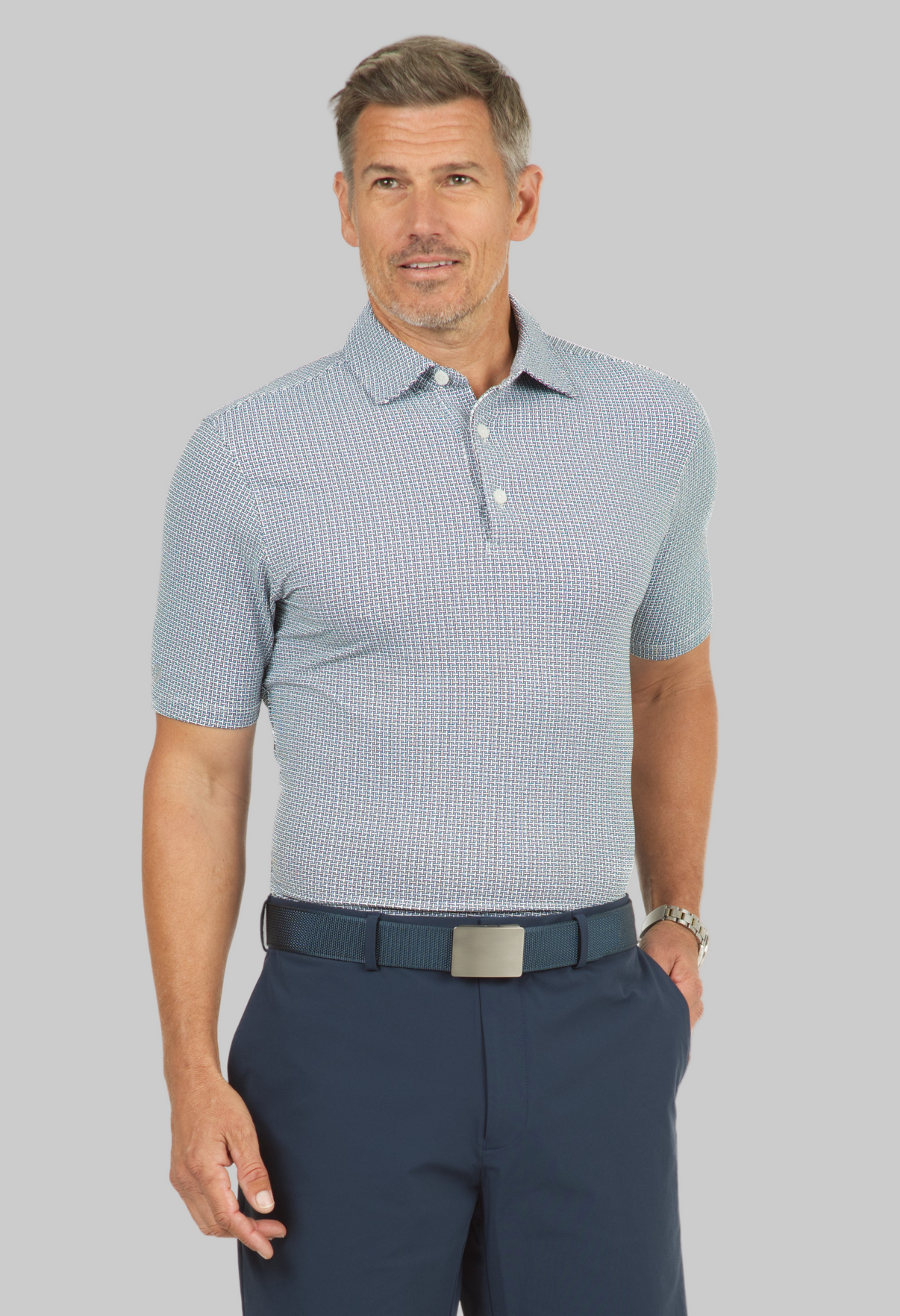 Circle Grid Print Short Sleeve Polo – 94150 (Modern Fit)