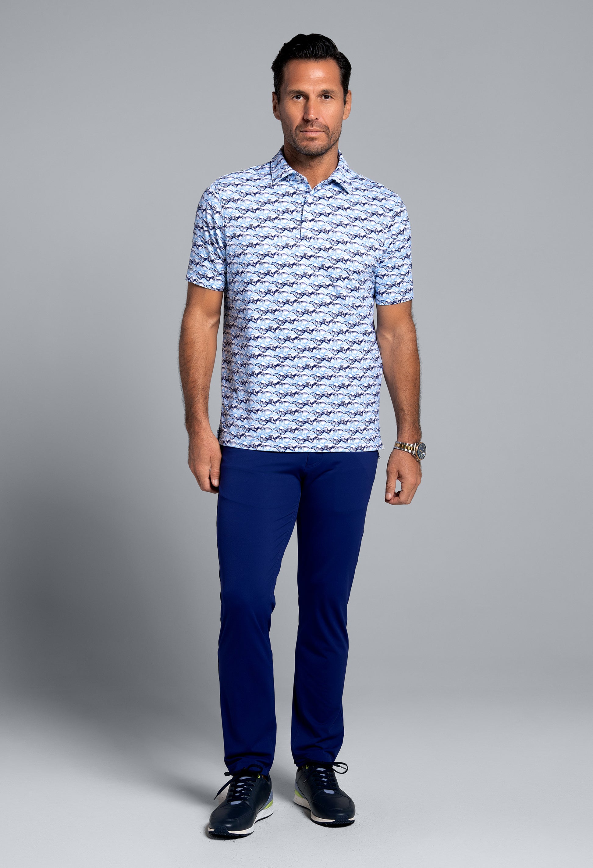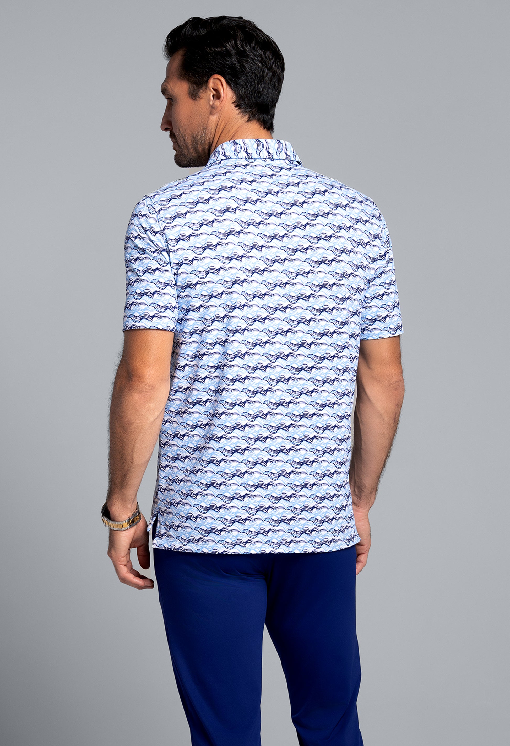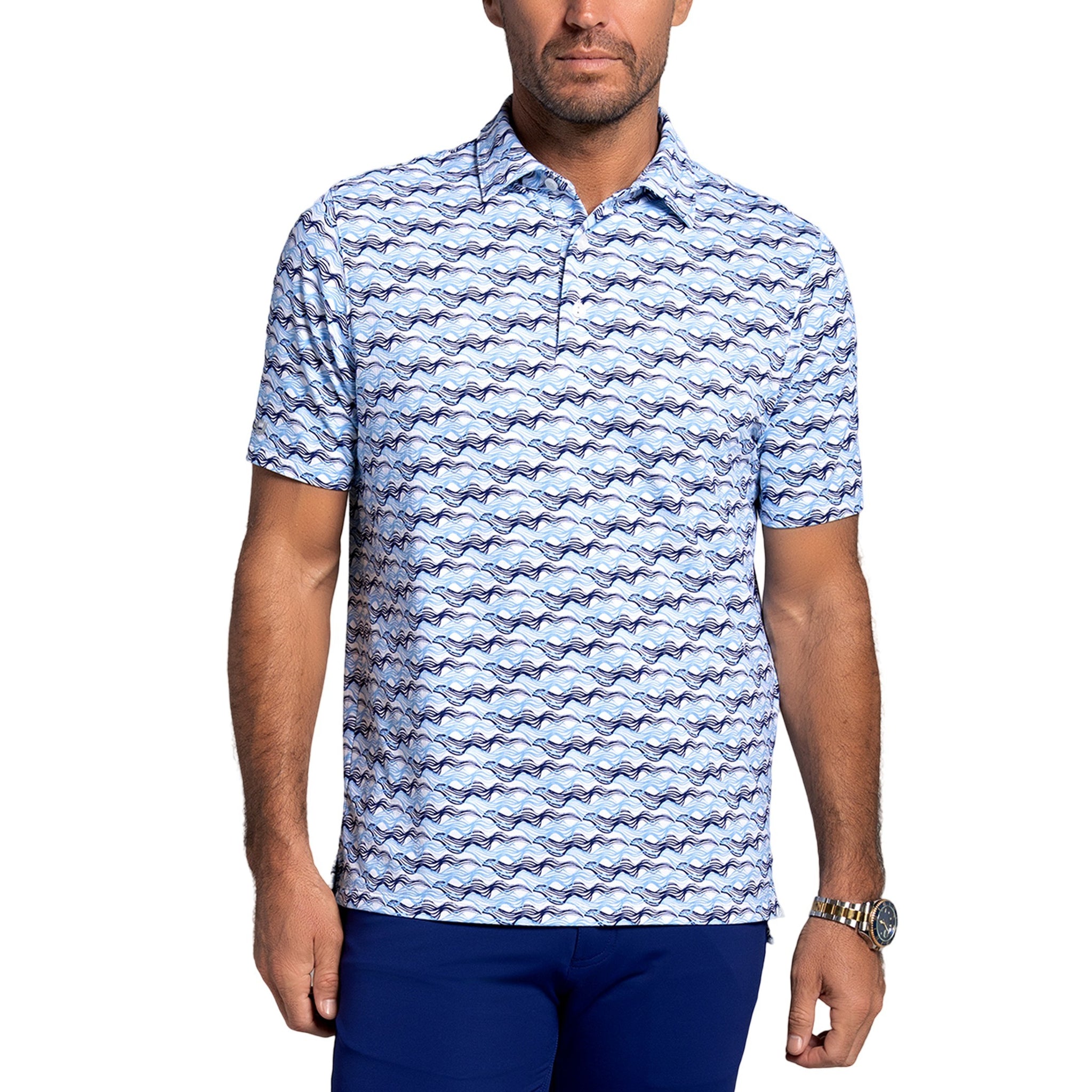 Breeze through your day in the Current Print Polo. With soft blue wave-like lines that evoke ocean movement, this polo feels just as chill as it looks. Made with breathable, lightweight Iceƒil® performance fabric, it cools your skin by up to five degrees, wicks moisture, and includes anti-stink tech for all-day freshness. With UPF 50+ sun protection and a relaxed vibe, it’s perfect for the beach, the boat, or your next long weekend.