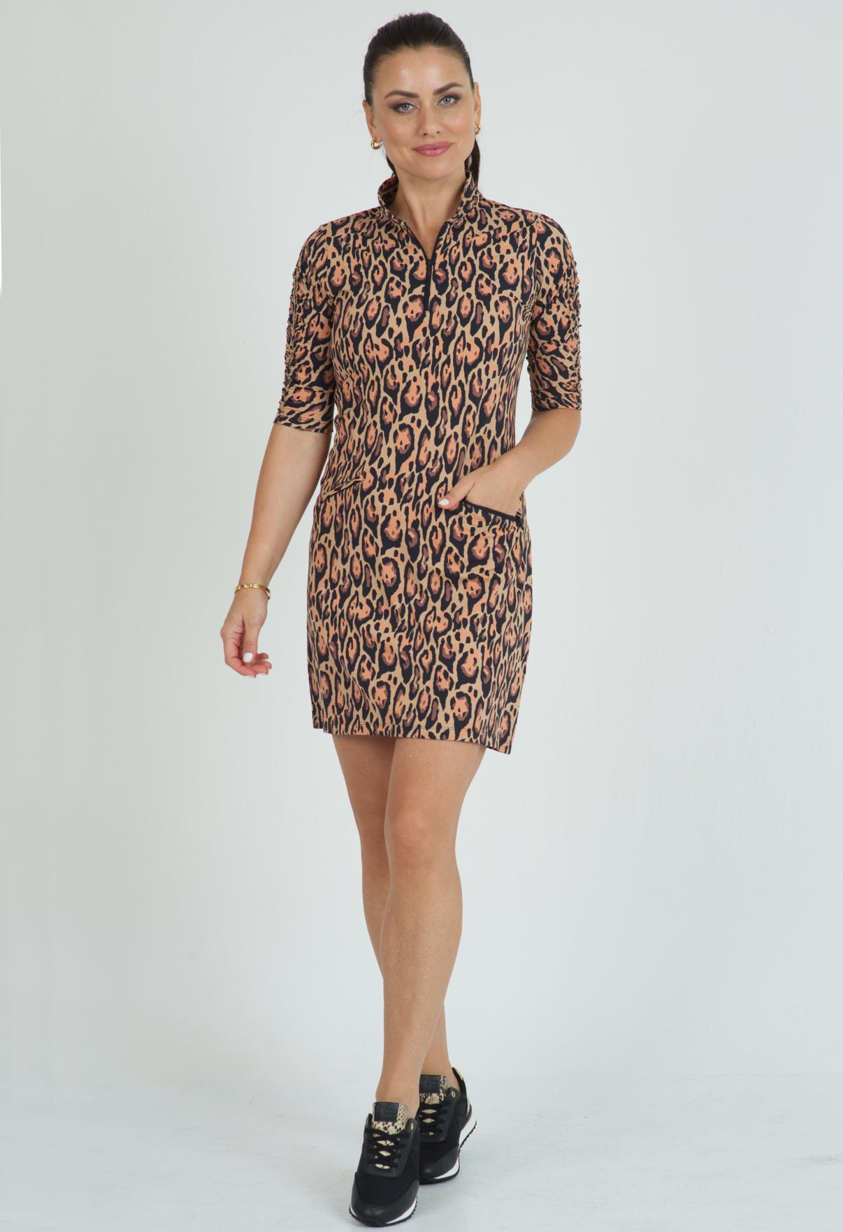 Gemma Print Ruched Elbow Length Sleeve Dress