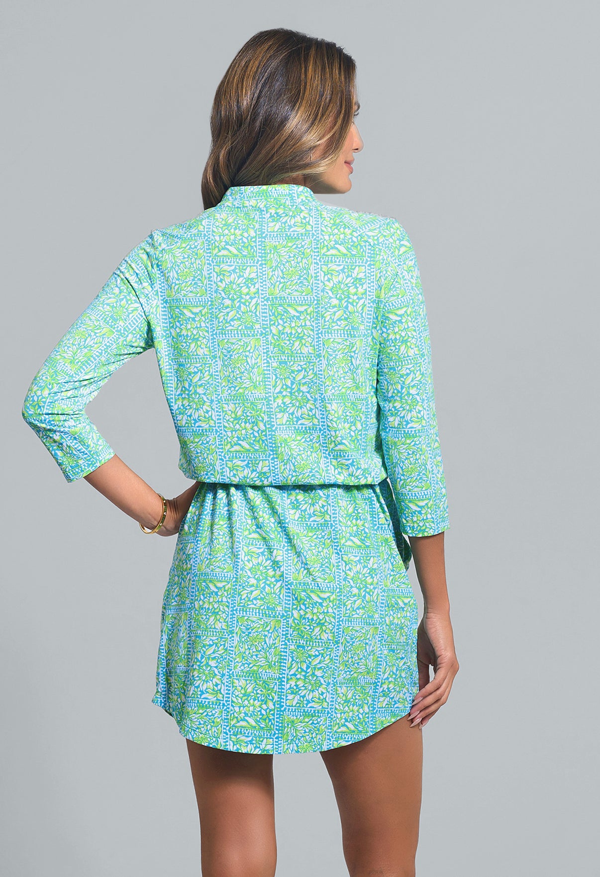 Fresh, flattering, and full of charm, the Josie Drawstring Dress brings classic botanical style to a versatile silhouette. With a zip placket, drawstring waist, and ¾ sleeves, this dress is both elegant and easygoing. Light, breathable, and soft, it’s powered by Iceƒil® cooling technology, UPF 50+ protection, and moisture-wicking comfort.