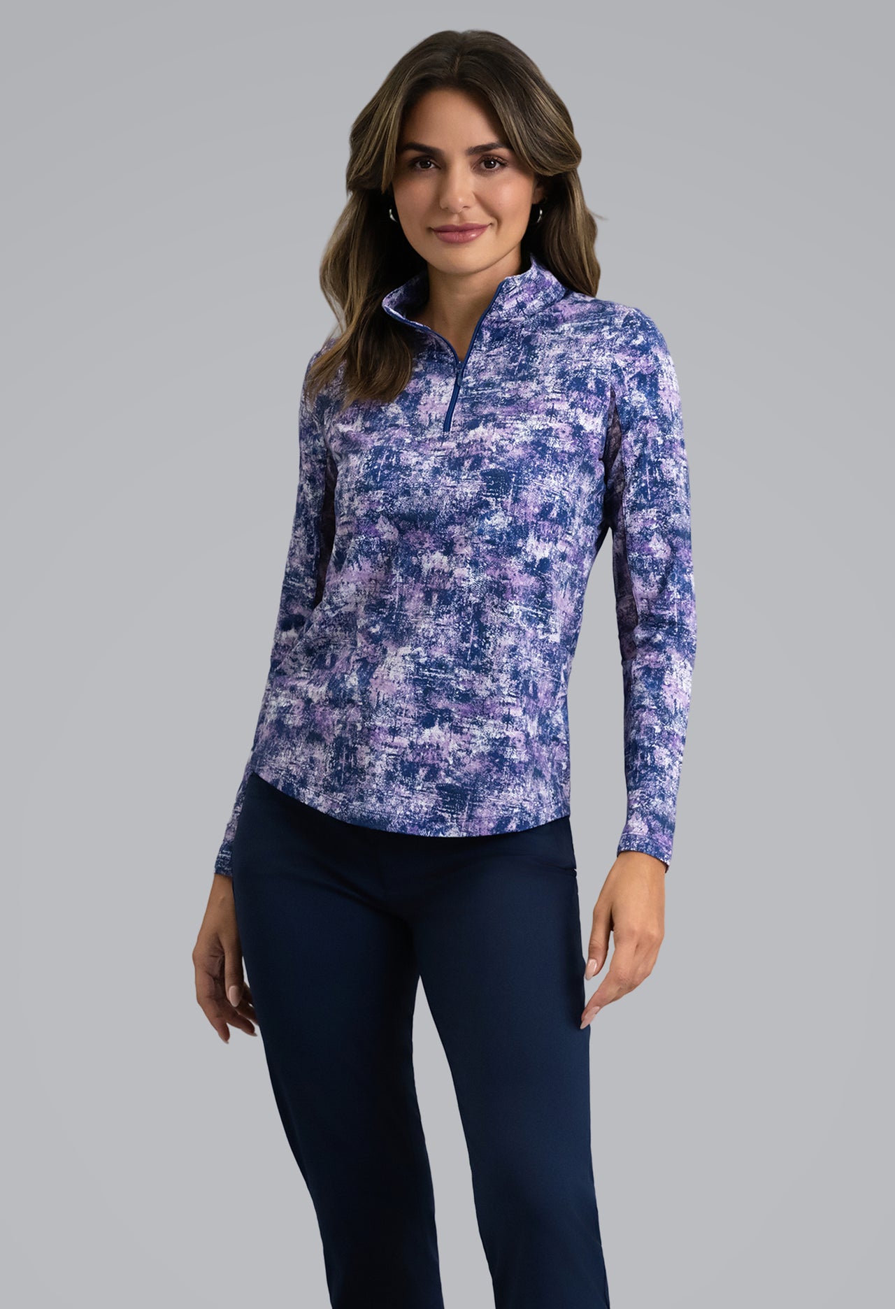 Color and contrast meet cool sophistication in the Kate Print Long Sleeve Mock Neck Top. Its dimensional print creates visual depth with a smooth, modern feel. Crafted from our signature IceFil® fabric, it’s soft, light, and breathable—cooling the skin by up to five degrees while wicking away moisture and resisting odor. UPF 50+ sun protection keeps you comfortable from course to café and beyond.
