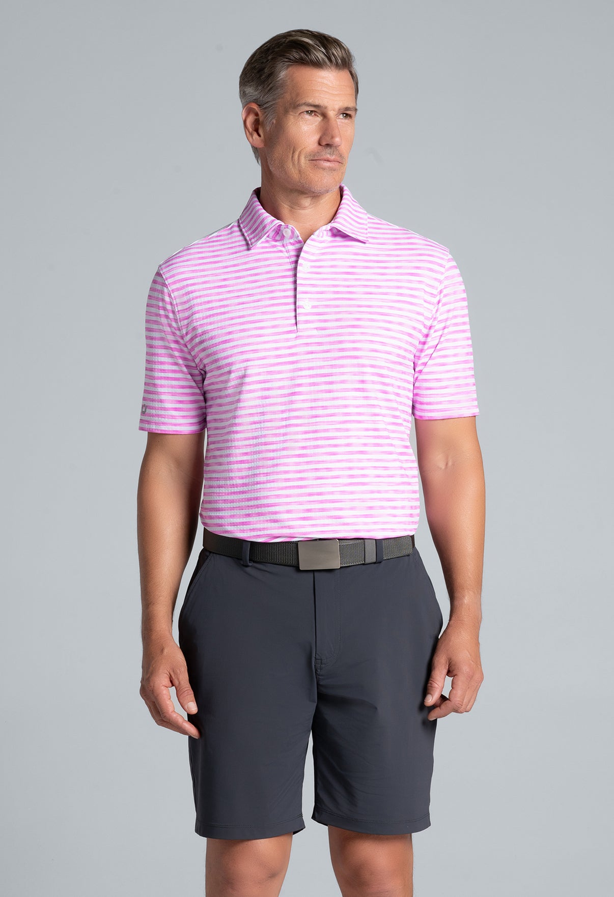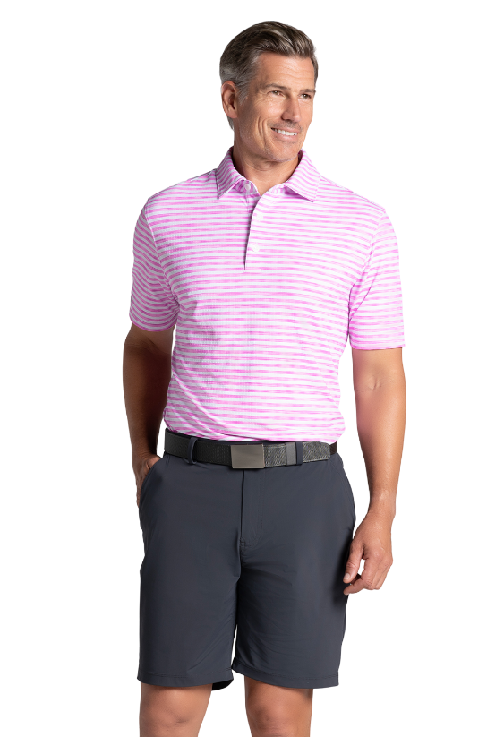 Classic, coastal-inspired style with performance built in. The Landon Stripe II Polo features crisp two-tone stripes for a fresh, nautical look. Made with Iceƒil® cooling technology, UPF 50+ sun protection, and moisture-wicking fabric, it keeps you cool and comfortable from the course to the coast.