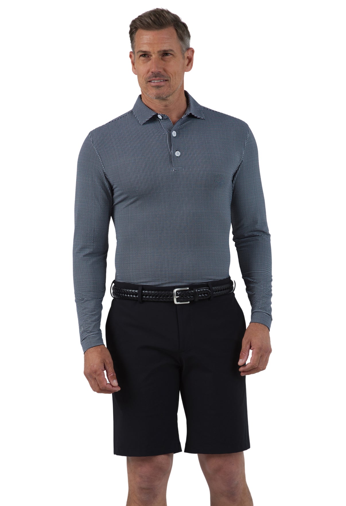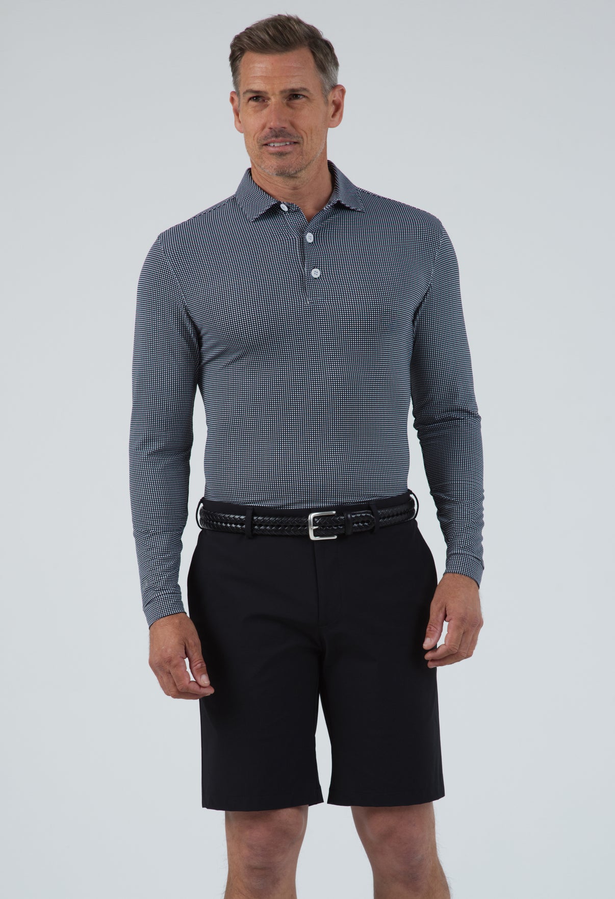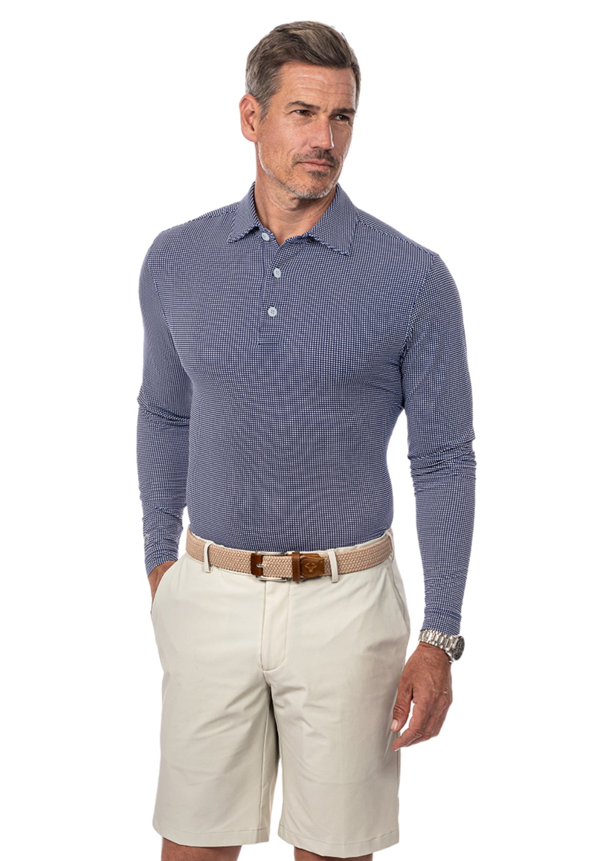 Mini Check Print Long Sleeve Polo (Modern Fit)