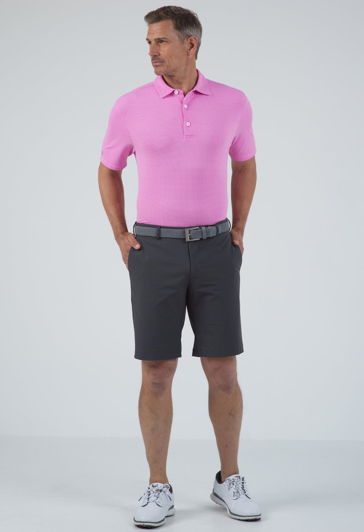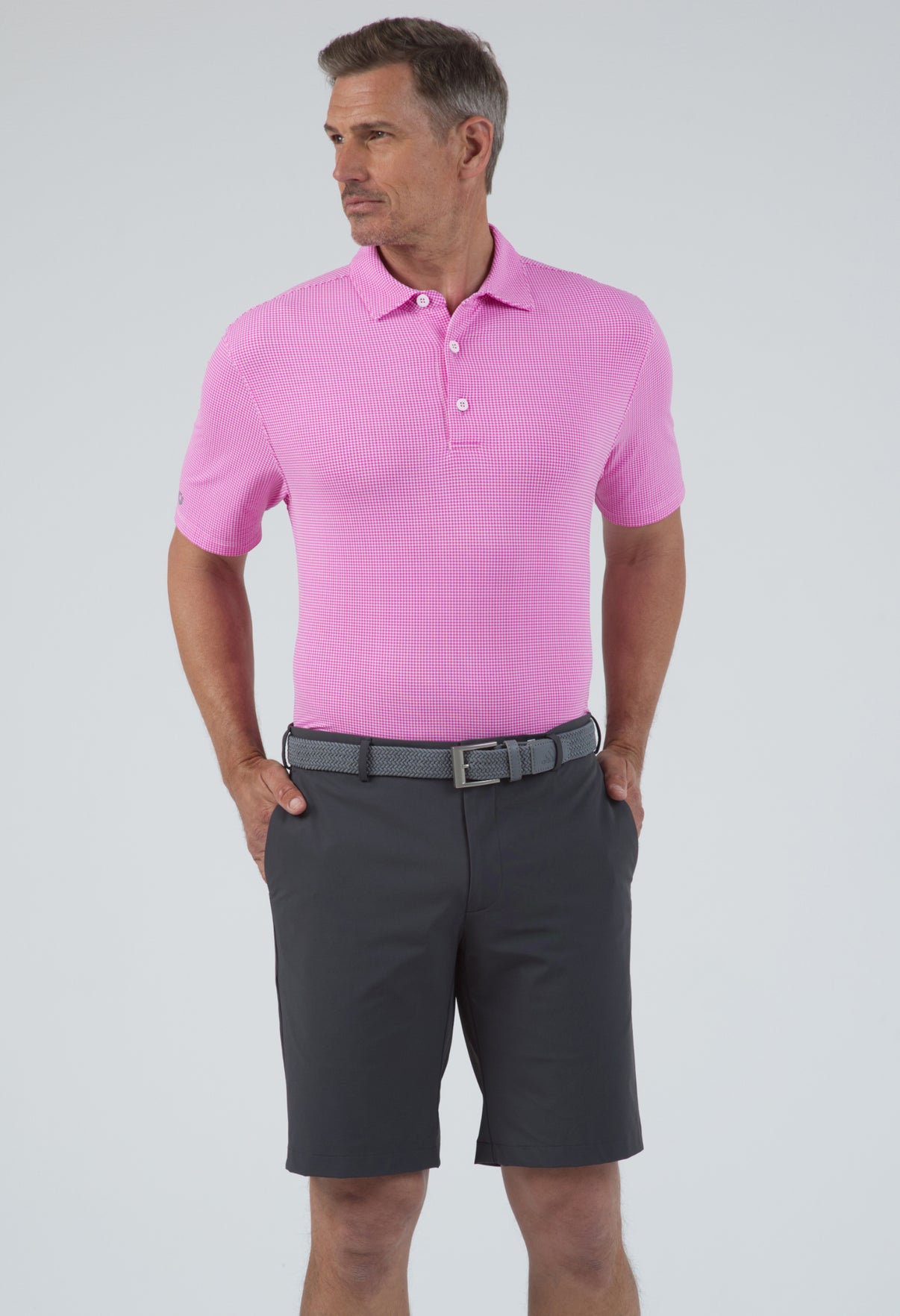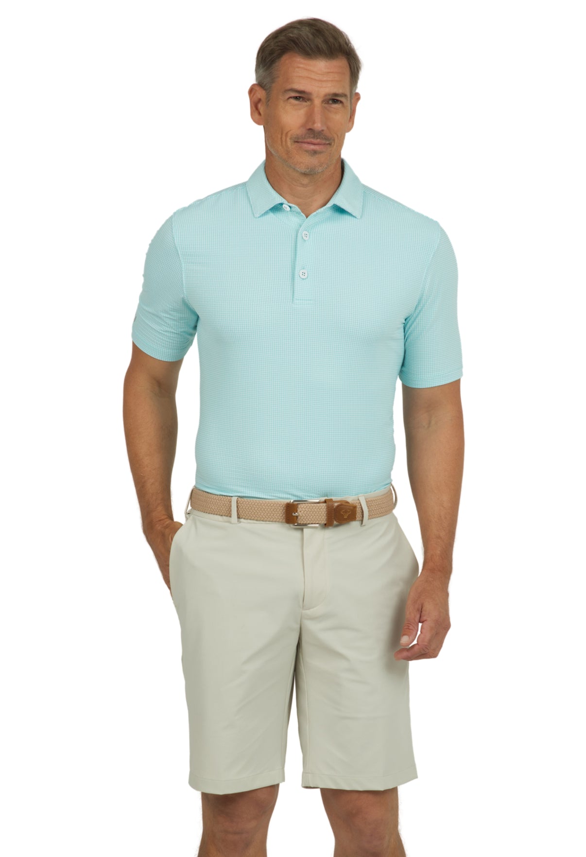 It's a polo that checks all the boxes. The classic mini-check print is made in a soft, light, and breathable fabric and topped off with UPF 50+ sun protection, Iceƒil® cooling technology, and moisture-wicking for all-day wear. Pack it for travel, wear it to work, or sport it on the course.