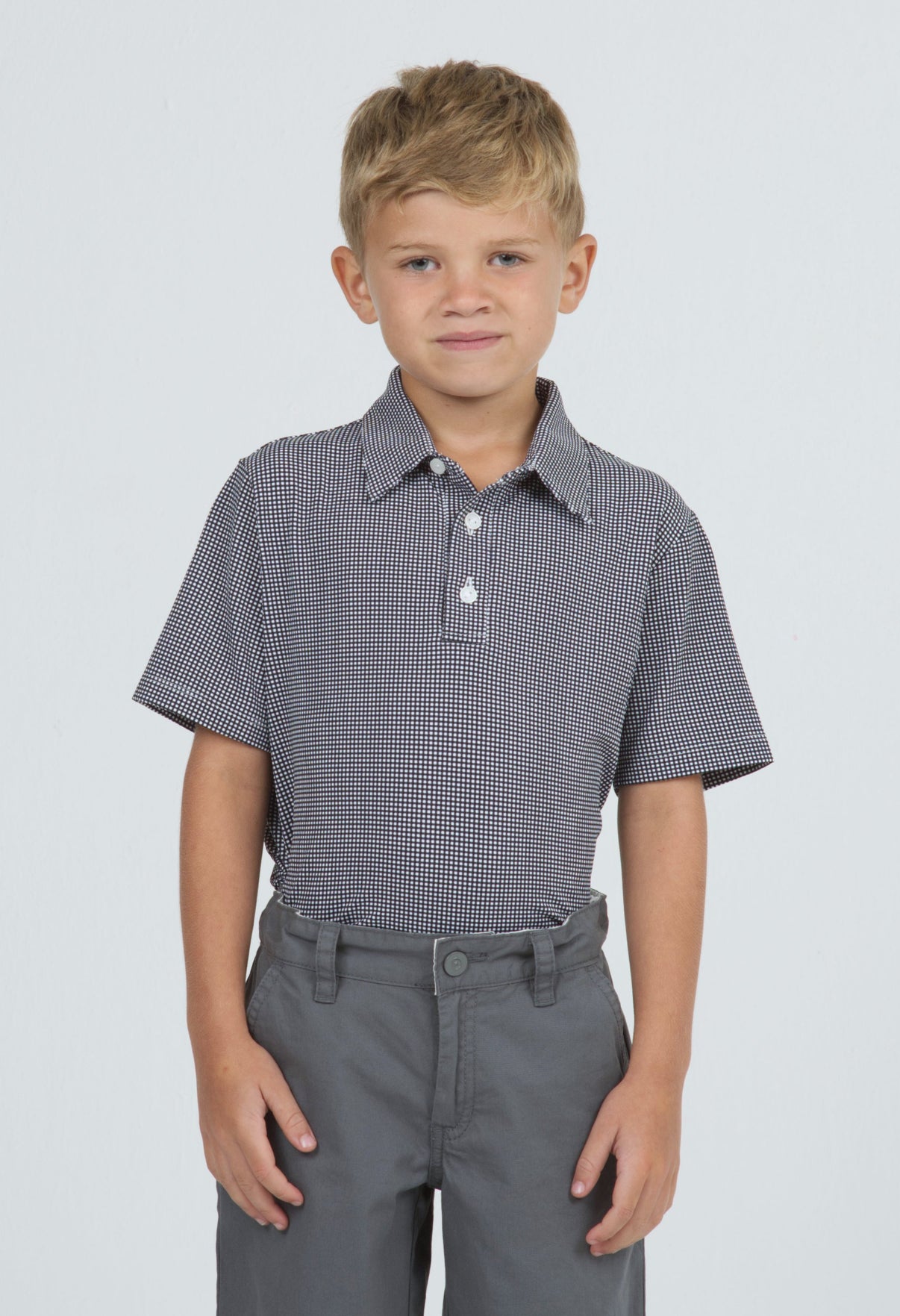 Youth Mini Check Print Short Sleeve Polo