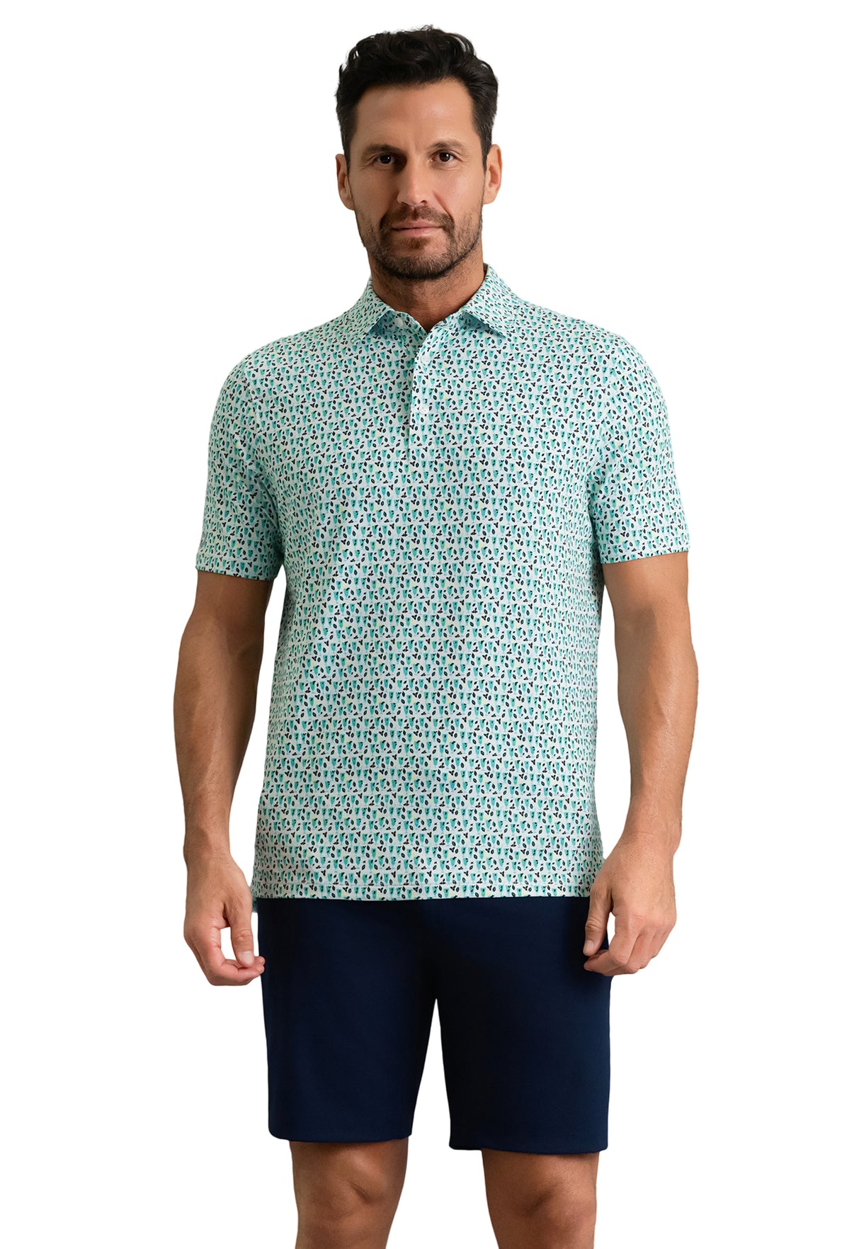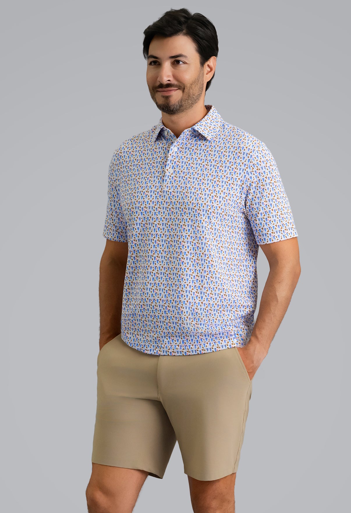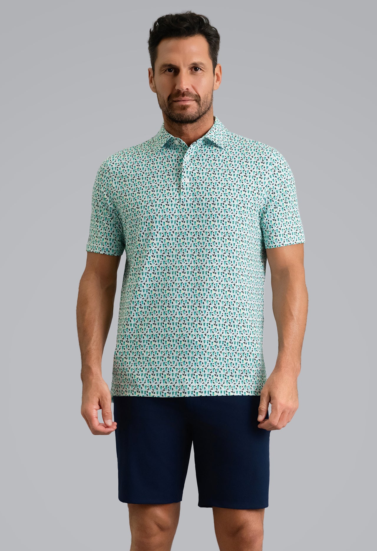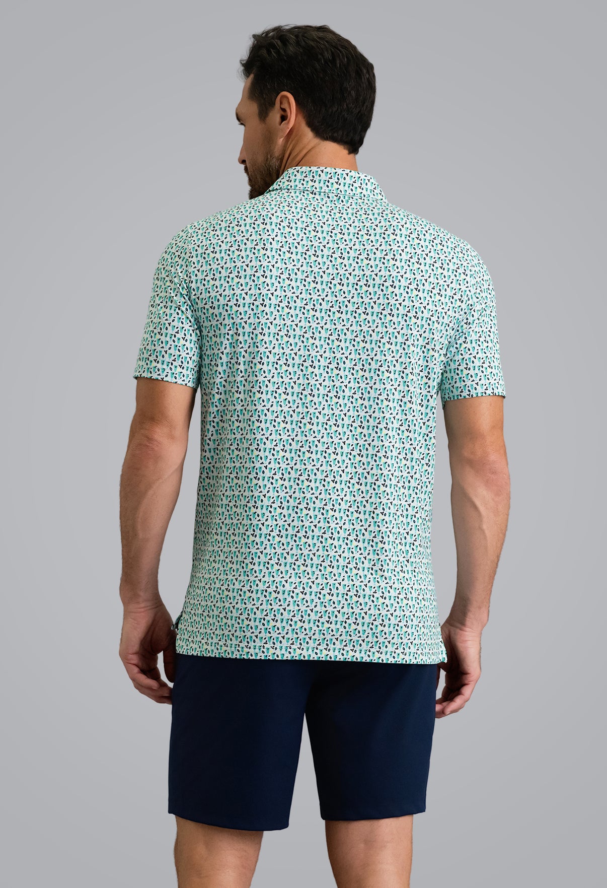 Cool, classic, and ready for anything—just like the cocktail it’s named for. The Mint Julep Print Short Sleeve Polo mixes sporty style with easygoing charm, featuring refreshing glasses, mint leaves, and a dash of wit. Crafted from our signature IceFil® fabric, it’s soft, light, and breathable—cooling the skin by up to five degrees while wicking away moisture and resisting odor. UPF 50+ sun protection keeps you comfortable from tee time to toast time.