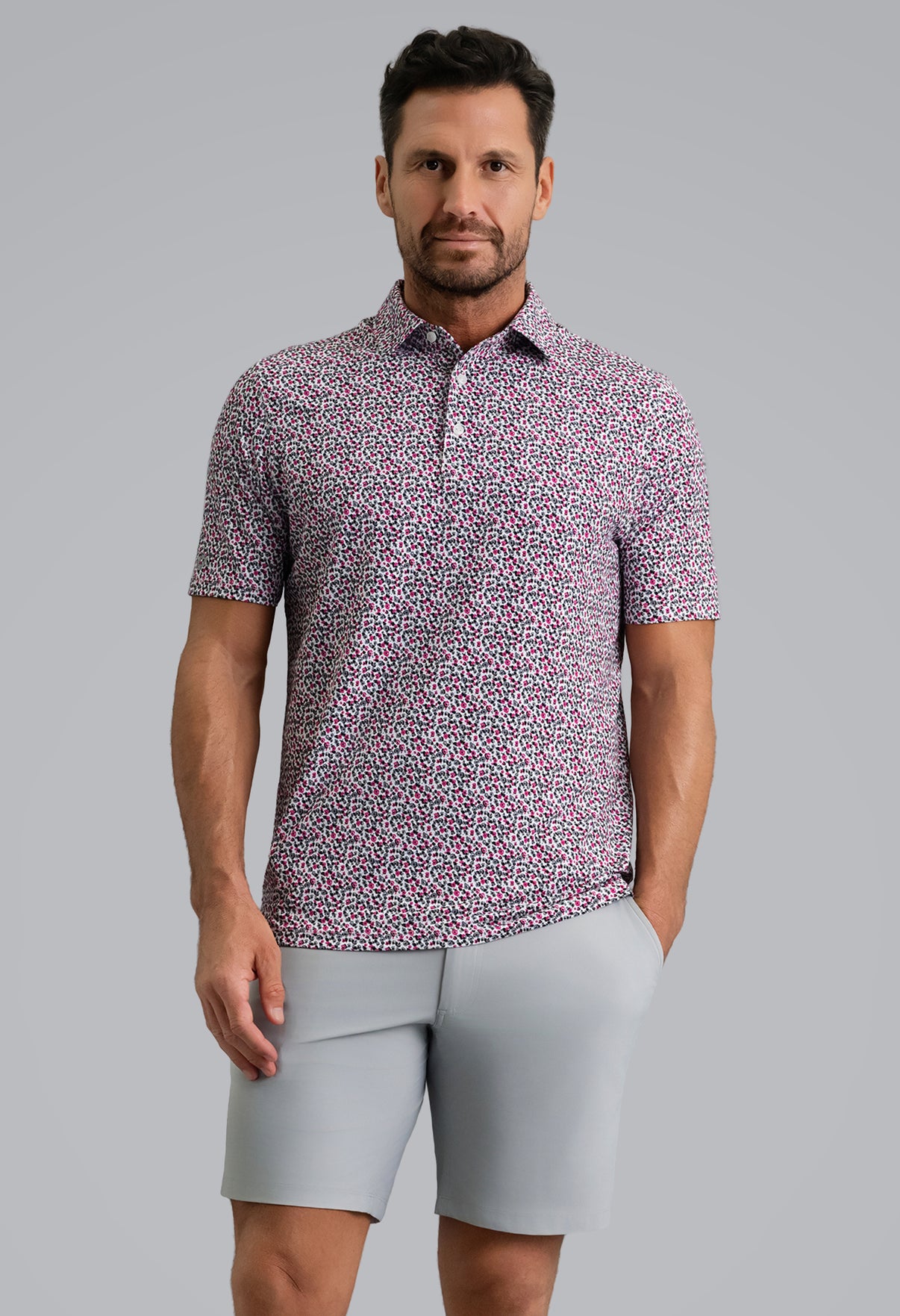 Add a little personality to your game with the Mirabel Print Short Sleeve Polo. Featuring a modern floral pattern that’s equal parts bold and versatile, it delivers standout style and all-day comfort. Made with our signature IceFil® fabric, it’s soft, light, and breathable—cooling the skin by up to five degrees while wicking away moisture and resisting odor. UPF 50+ sun protection keeps you covered from the first tee to the last toast.