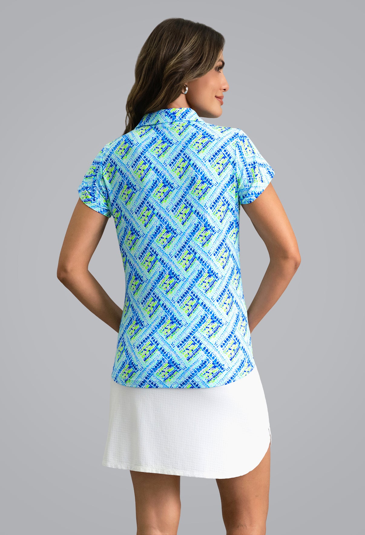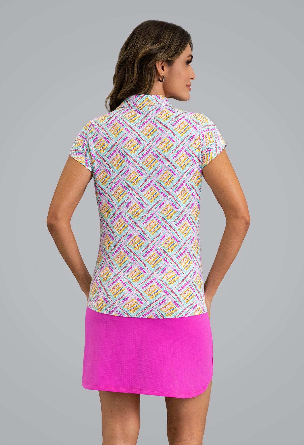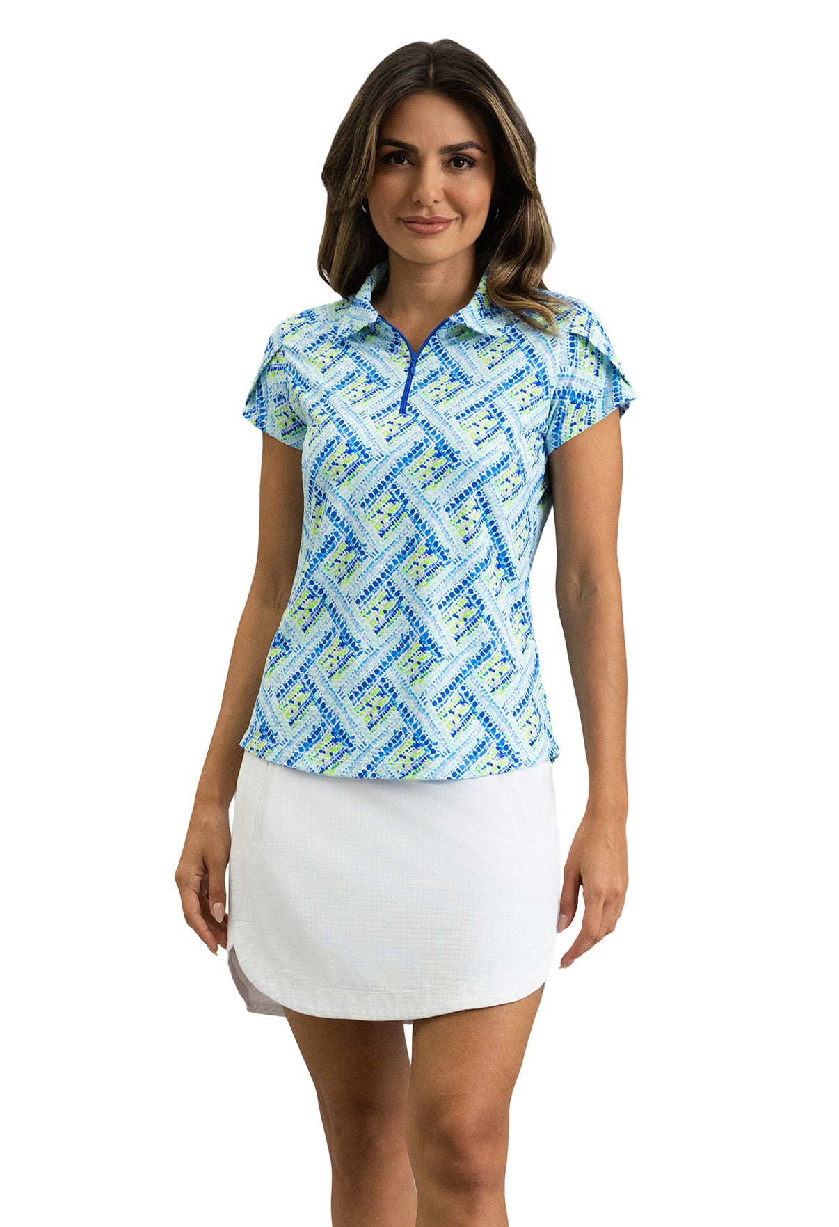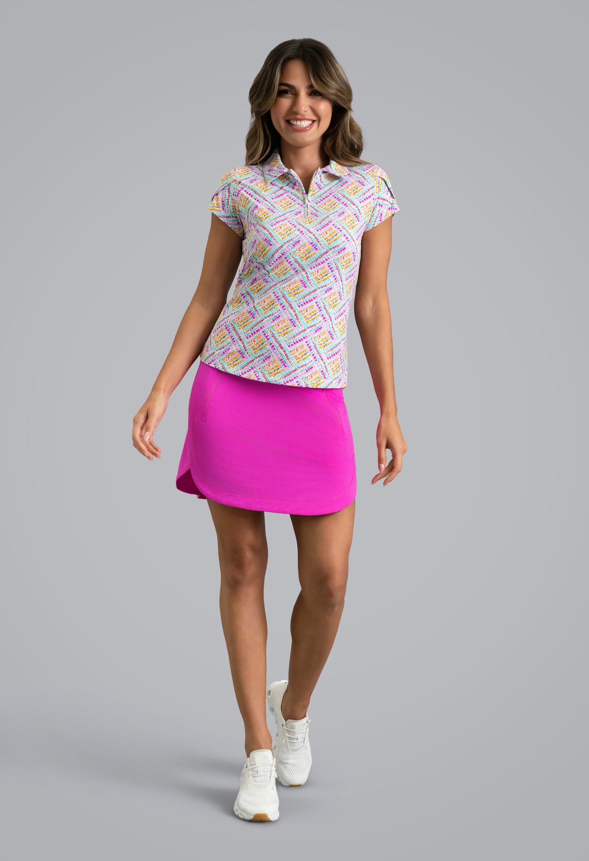 Bursts of color and confetti-inspired dots make the Nina Print Tulip Sleeve Polo a statement in motion. The feminine tulip sleeves offer a soft, flattering shape with room to move, while the zip placket keeps the look sporty and modern. Crafted from our IceFil® fabric, it’s soft, light, and breathable—cooling the skin by up to five degrees while wicking away moisture and resisting odor. UPF 50+ sun protection makes it perfect for long, sunny days on or off the course.