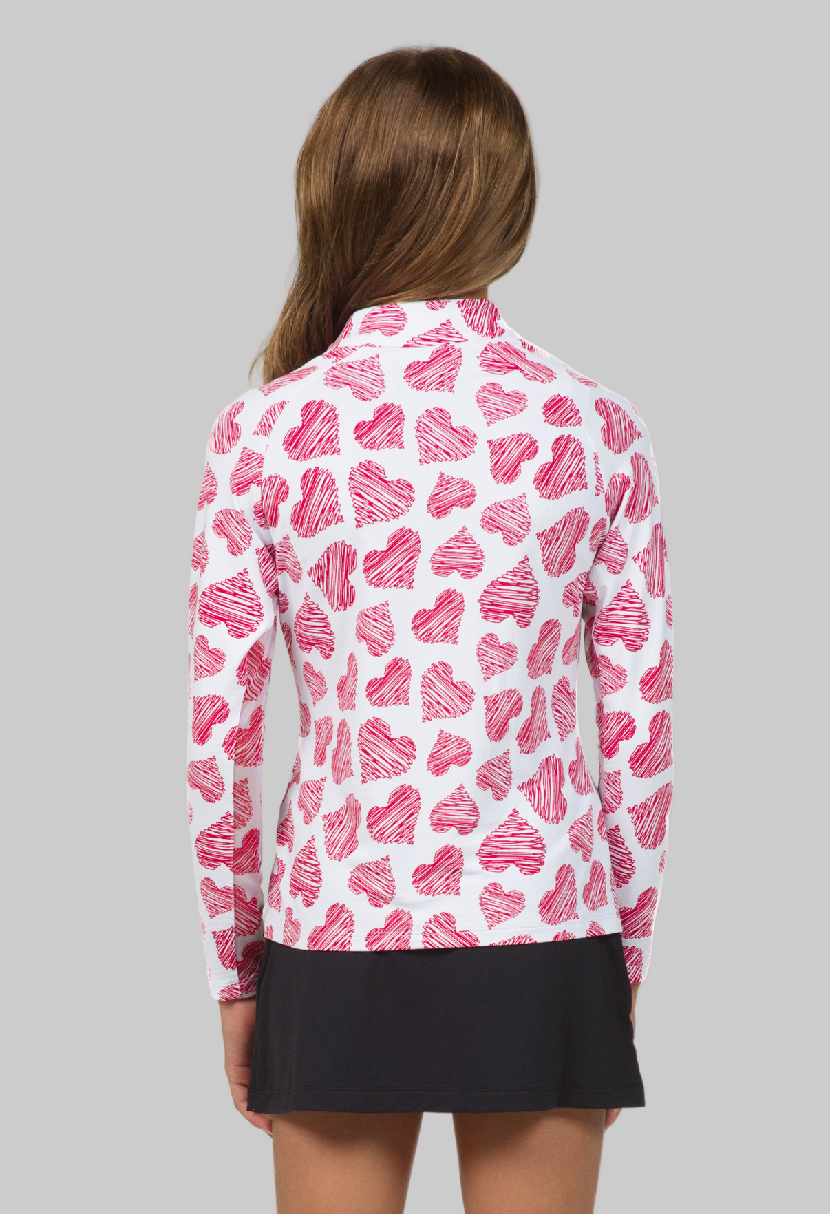 Youth Scribble Hearts Print Long Sleeve Mock Neck Top