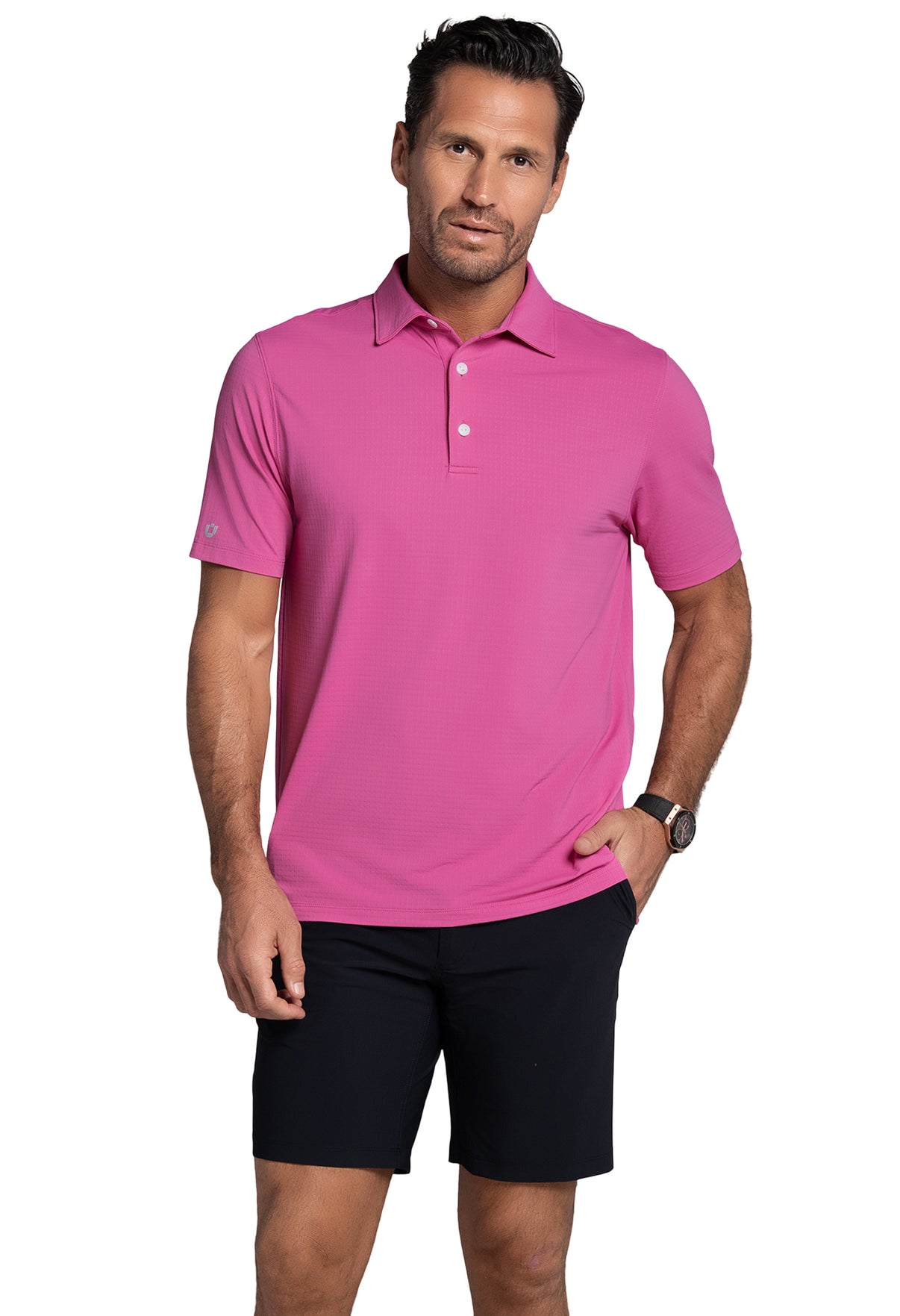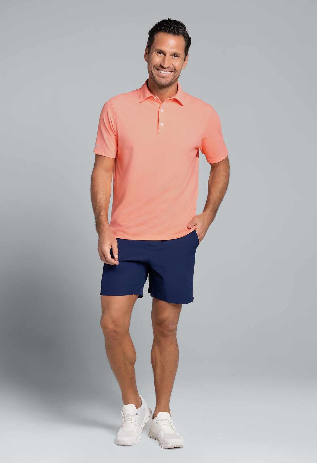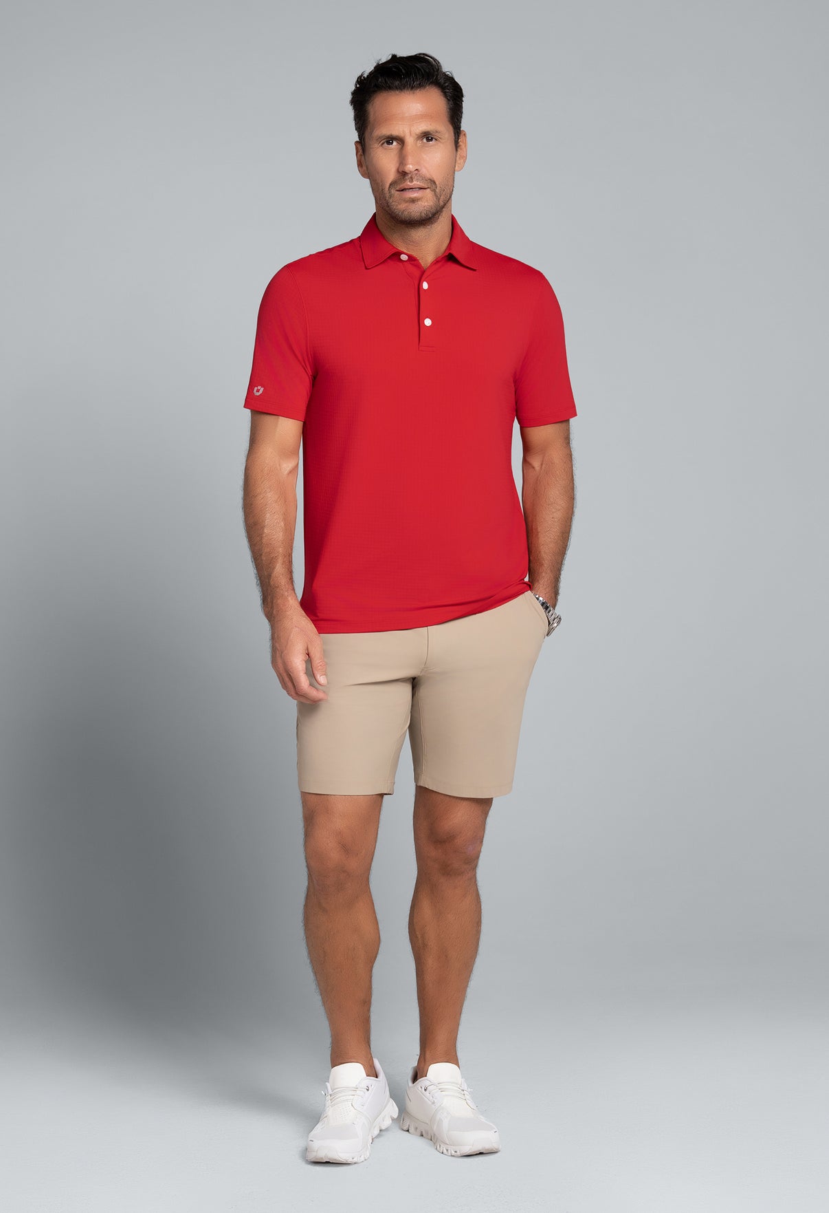Cool, comfortable, and effortlessly versatile. Our Men’s Short Sleeve Polo features Iceƒil® cooling technology, UPF 50+ sun protection, and moisture-wicking fabric to keep you dry and comfortable all day. Whether you’re on the course, at the office, or out for dinner, this lightweight polo delivers polished style and high-performance comfort in every setting.