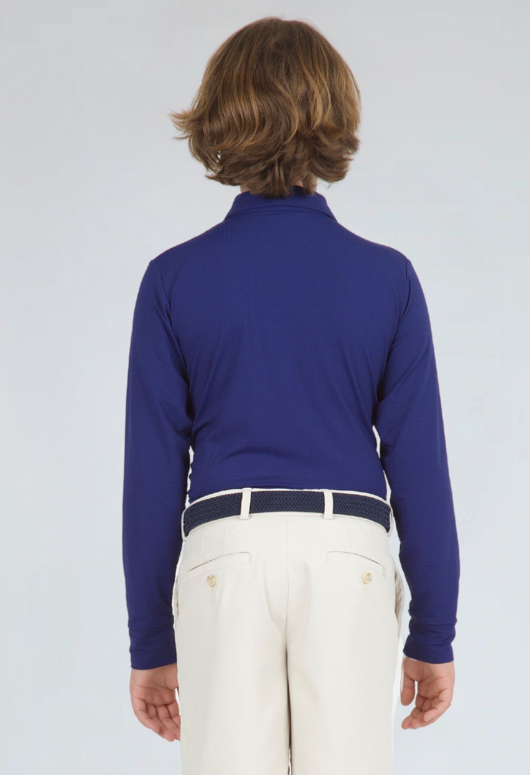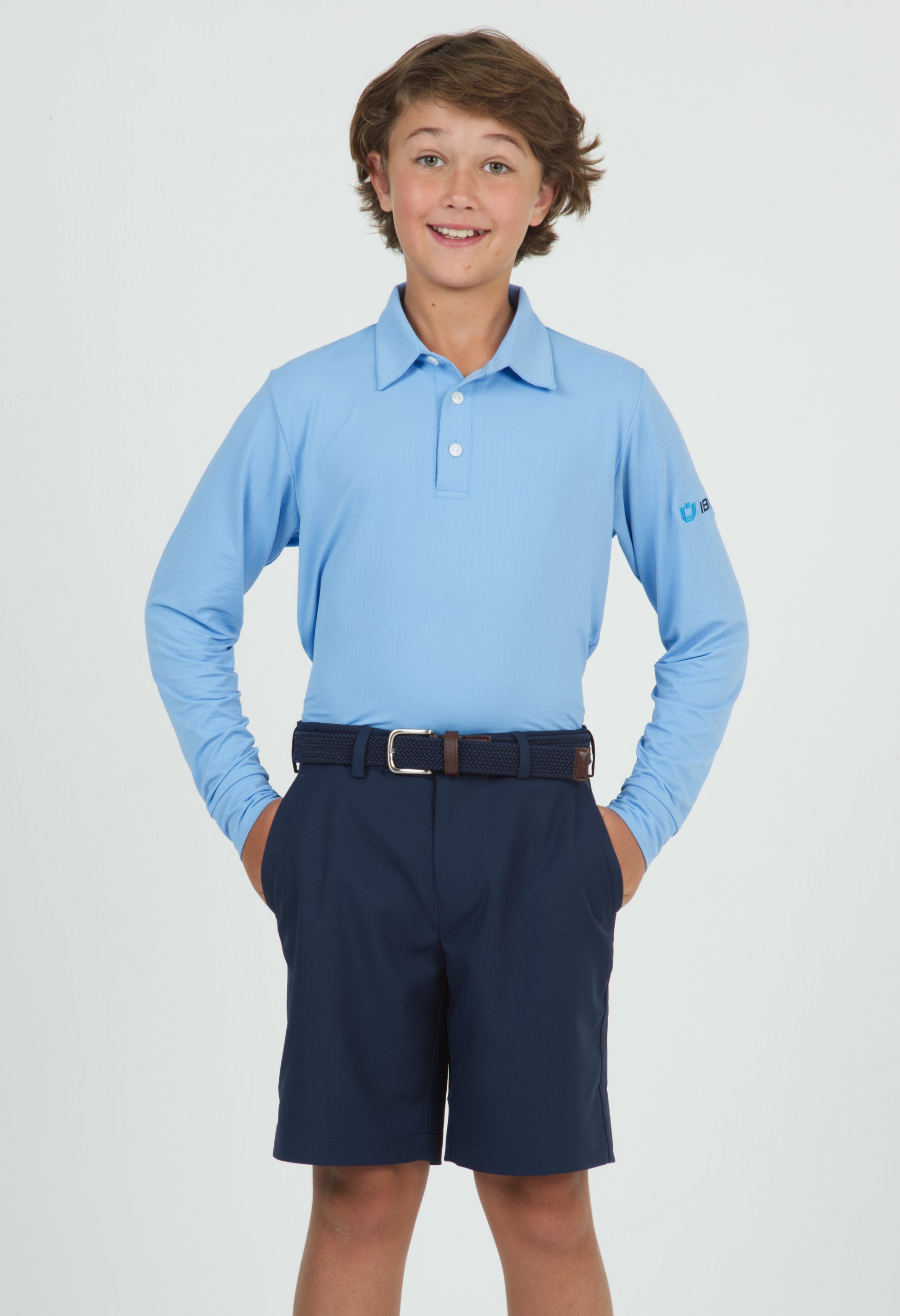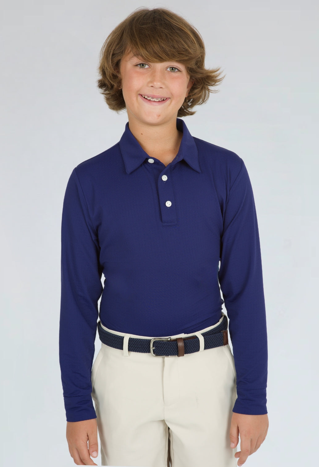 This long-sleeved boys’ polo goes from school to sports with ease. It features a buttery-soft hand, button placket, stretch cuffs, and side hem vents. Ibkul’s patented Icefil technology lowers your skin temperature up to 5 degrees while protecting you from the sun's harmful rays with UPF 50+ sun protection, wicking, and antimicrobial features. Stay cool and comfortable on the hottest humid days. Available in both solids and prints