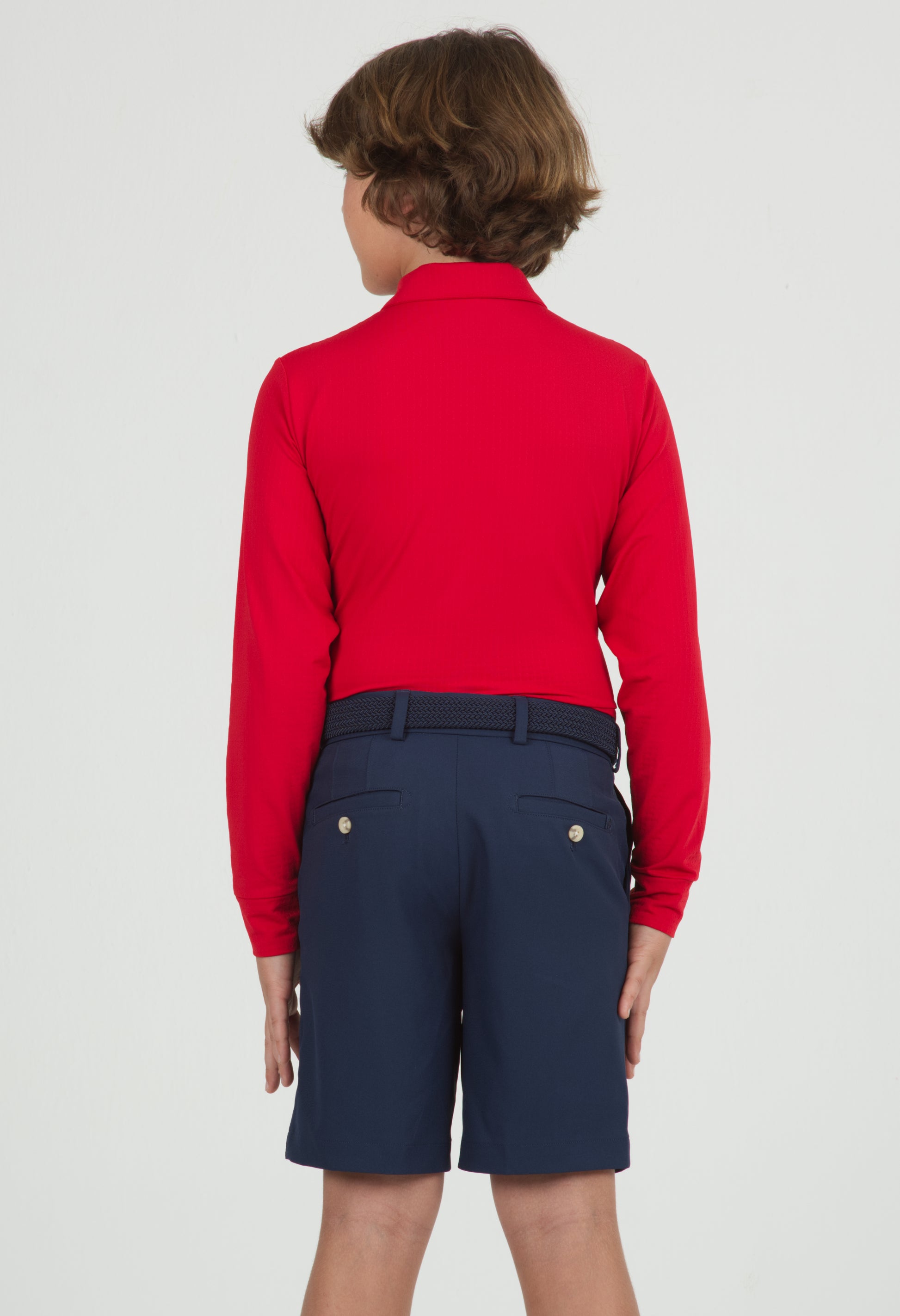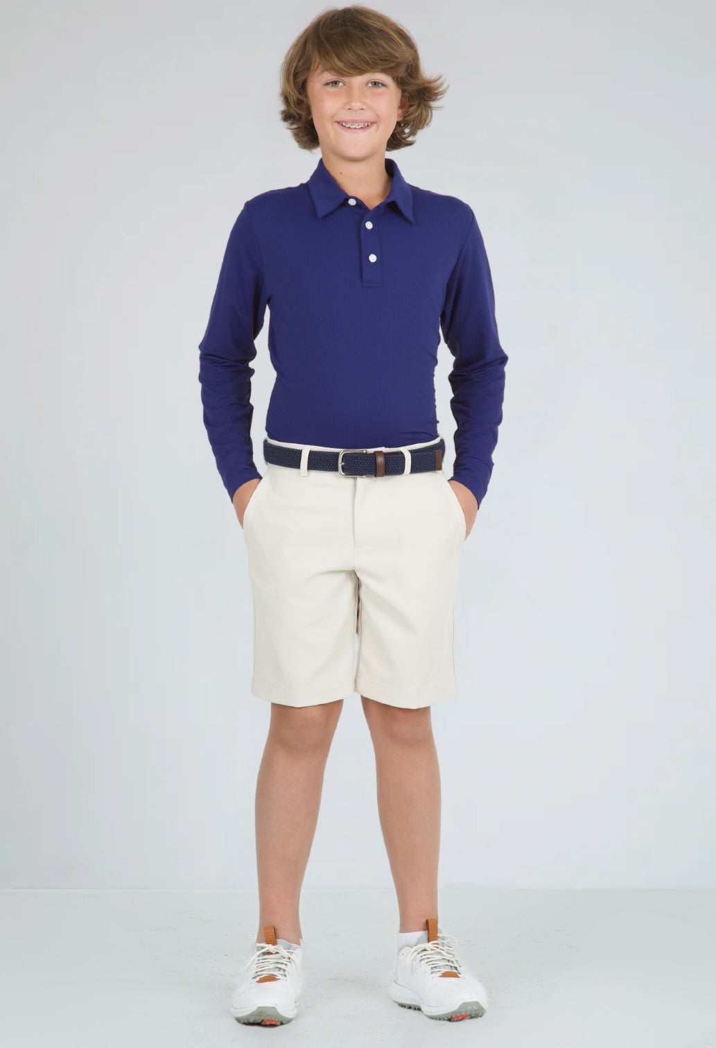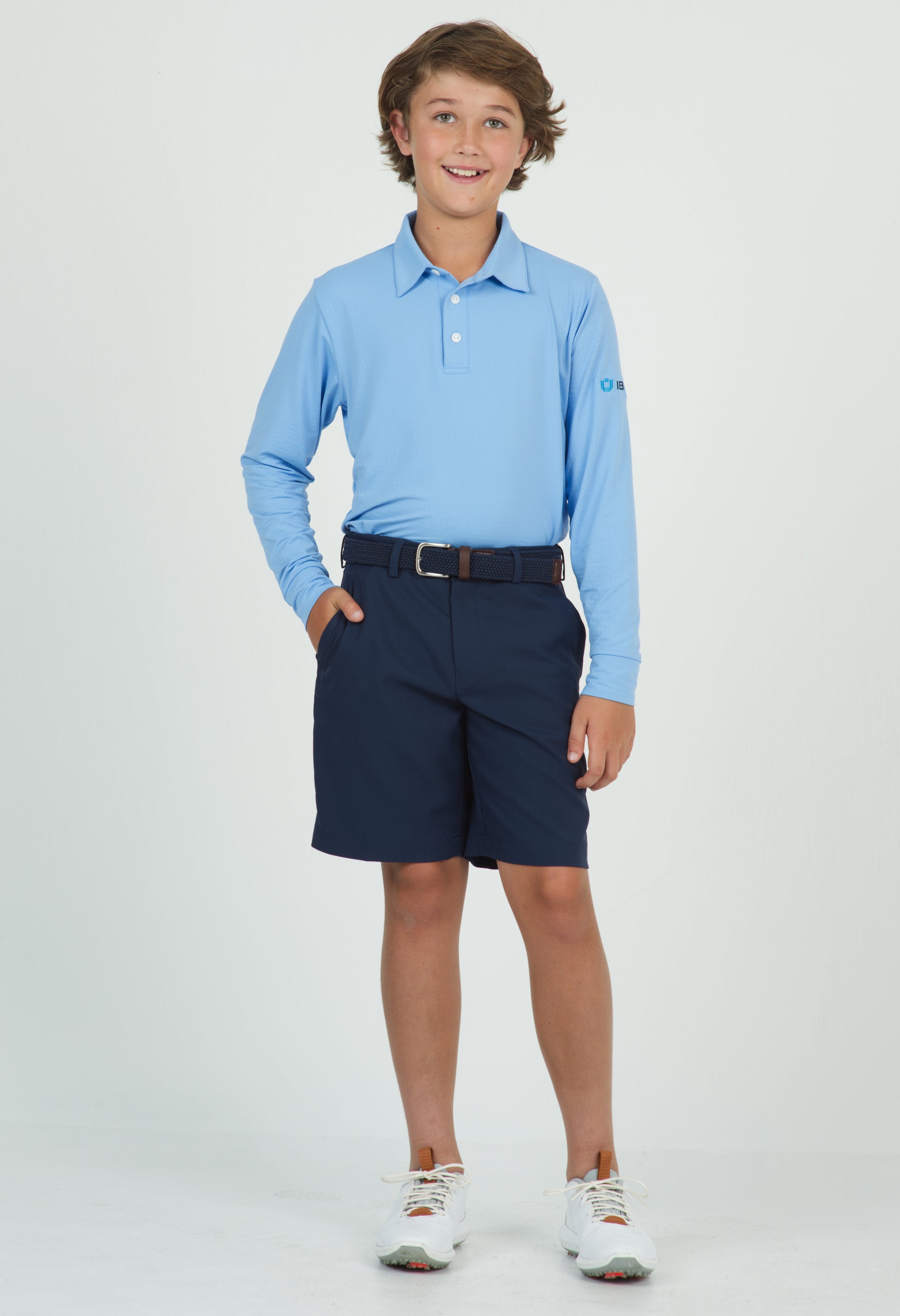 This long-sleeved boys’ polo goes from school to sports with ease. It features a buttery-soft hand, button placket, stretch cuffs, and side hem vents. Ibkul’s patented Icefil technology lowers your skin temperature up to 5 degrees while protecting you from the sun's harmful rays with UPF 50+ sun protection, wicking, and antimicrobial features. Stay cool and comfortable on the hottest humid days. Available in both solids and prints