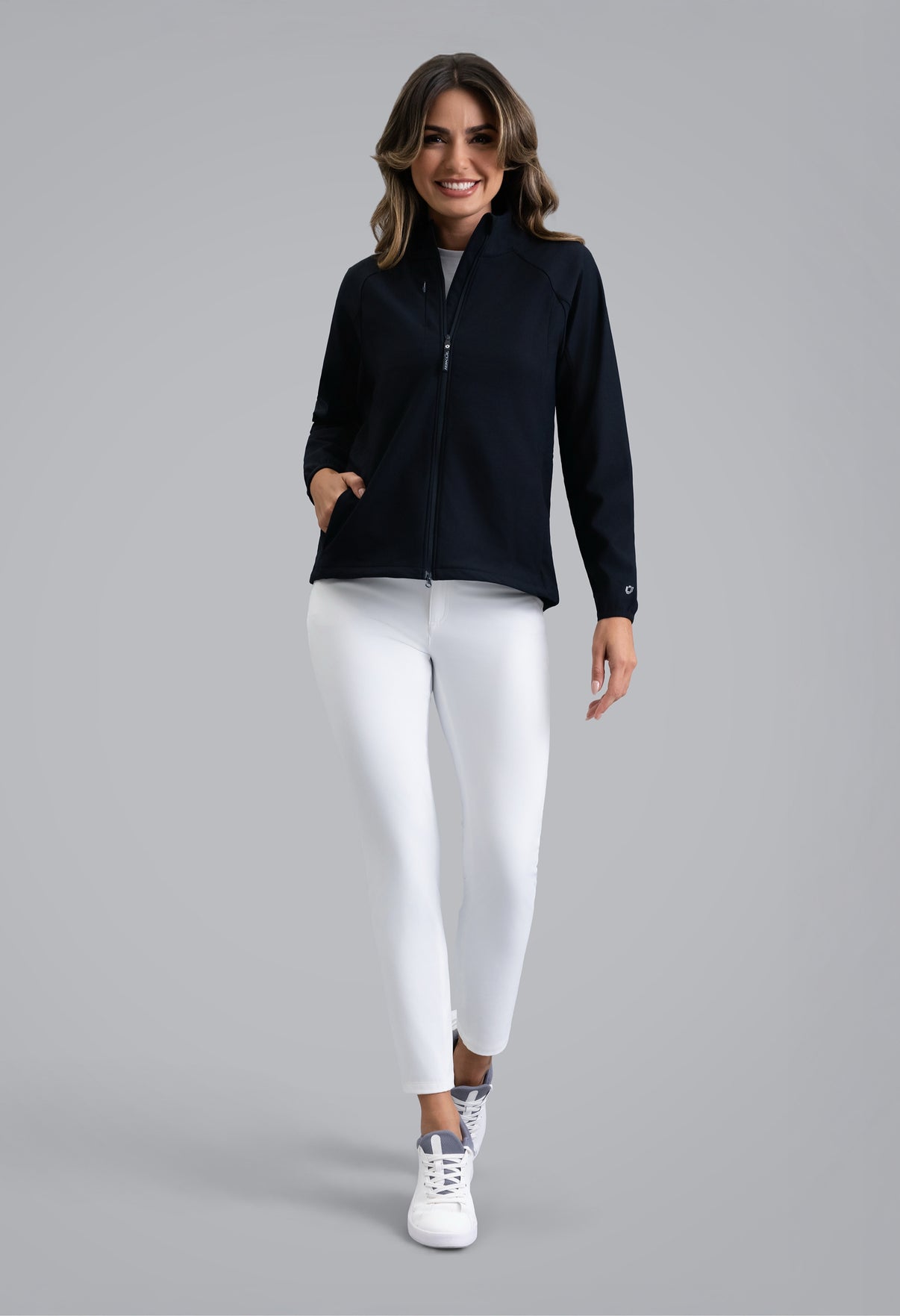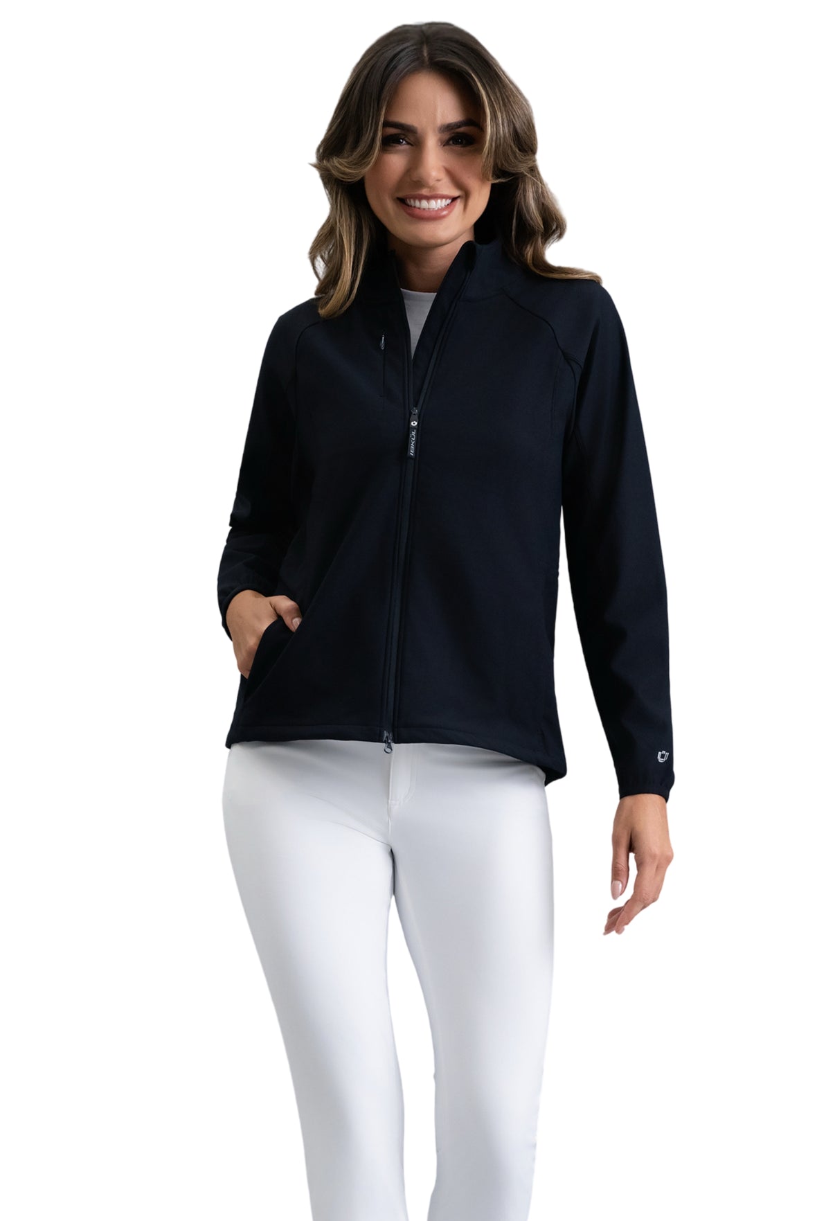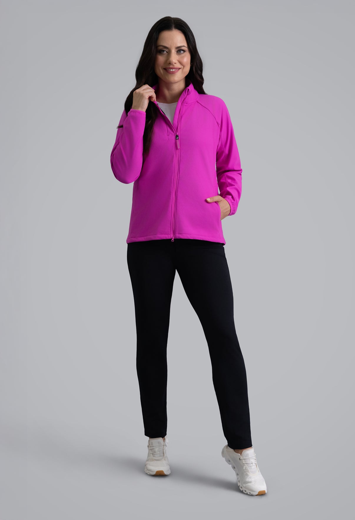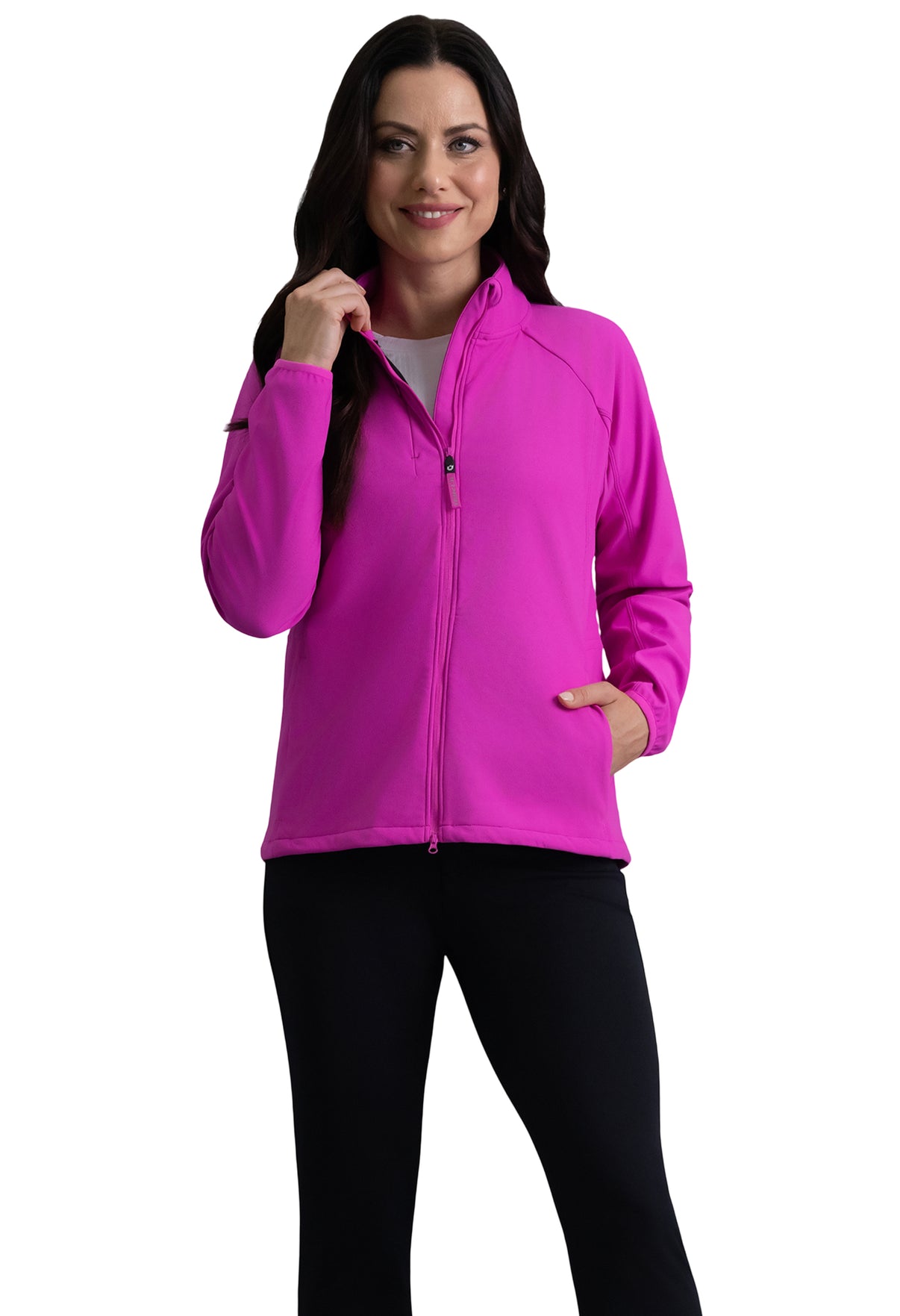 This jacket performs on all fronts - rain or shine. This eco-friendly, lightweight, breathable and water-resistant silhouette features sweat control functions along with the patented Magic Shield Technology featuring a solar power membrane keeping you comfortable when the weather takes a turn. This go to jacket is available in a versatile array of classic colors: Silver, Navy, Hot Pink and Black.