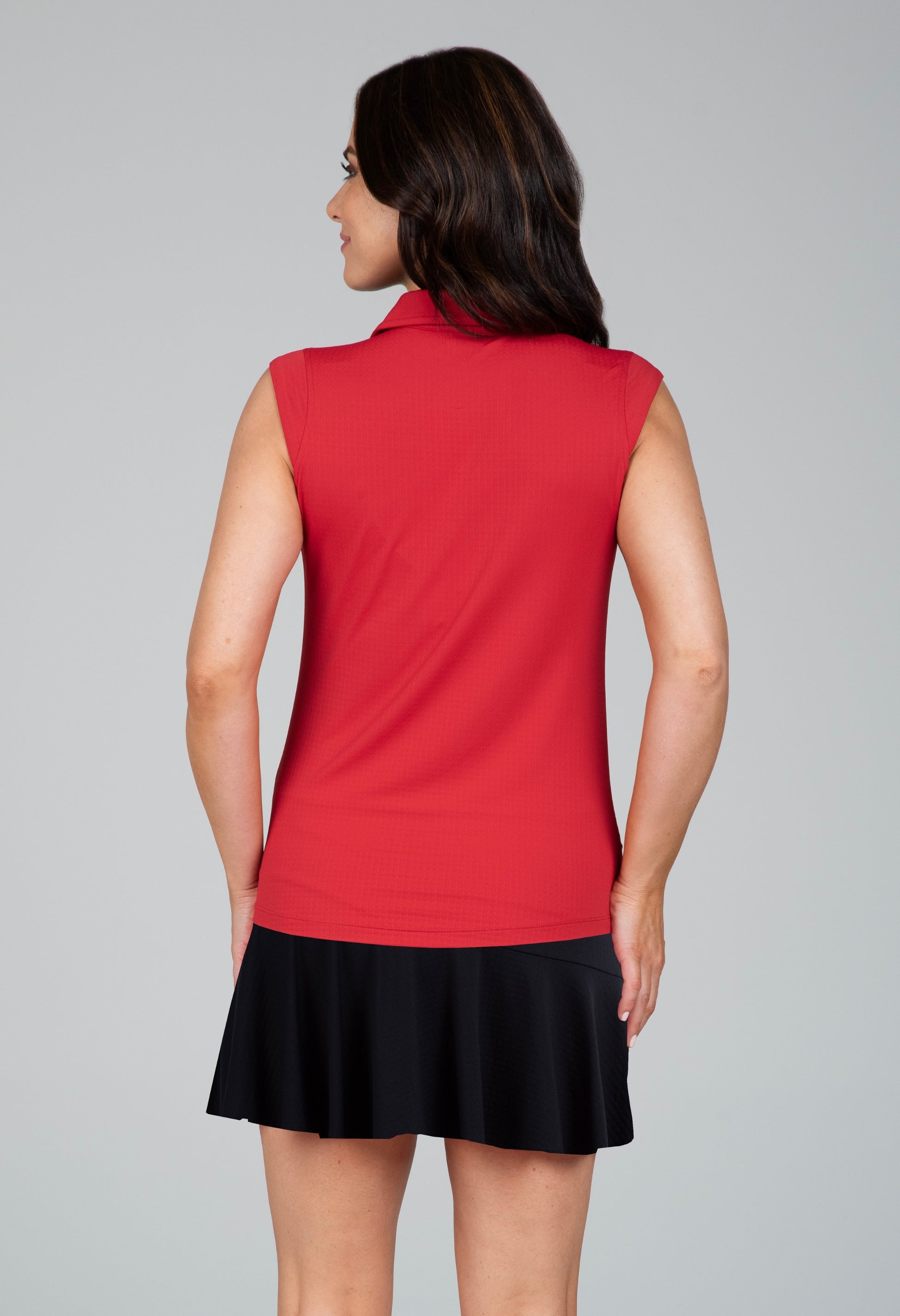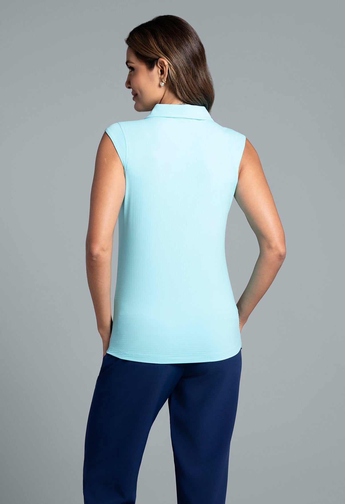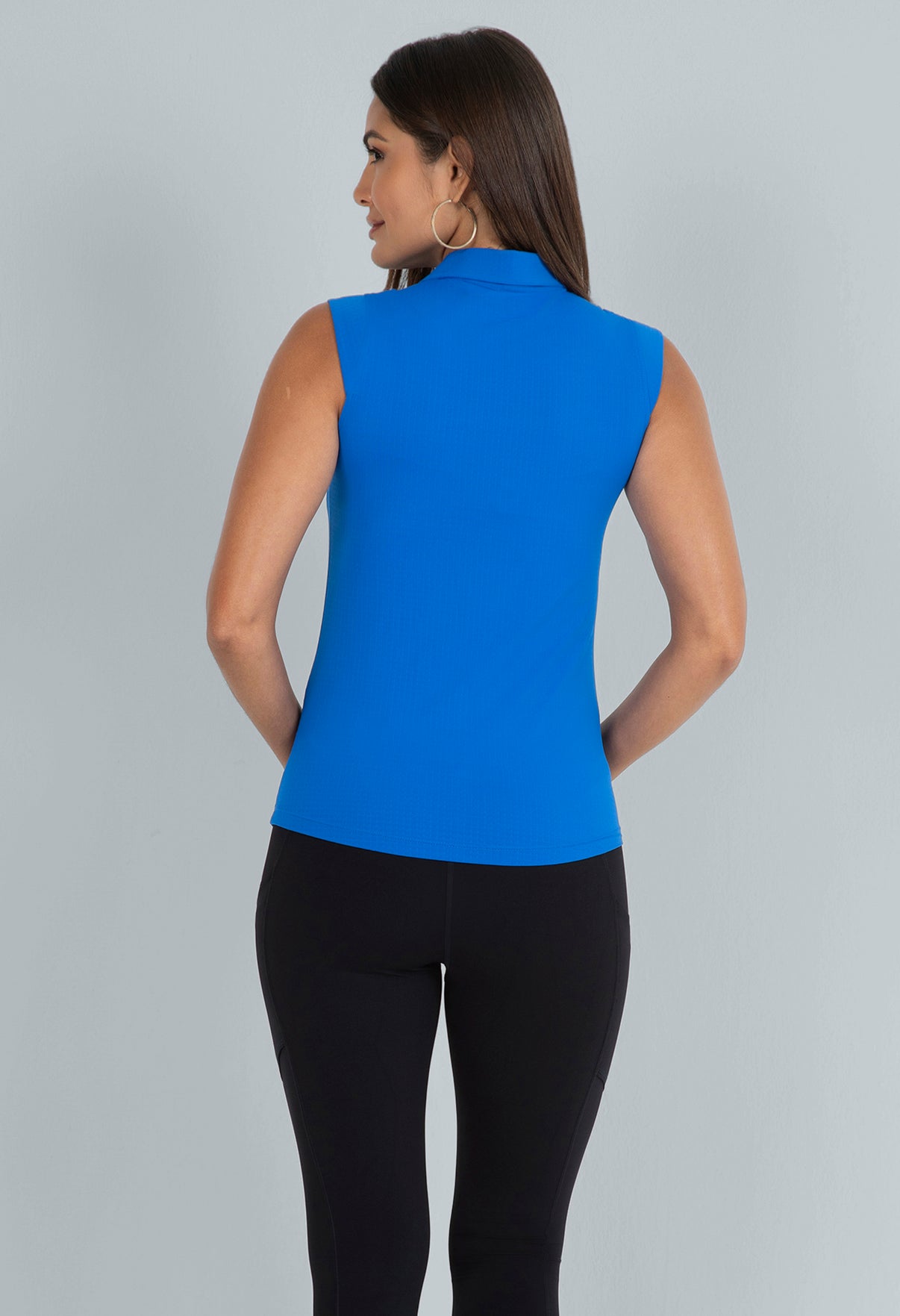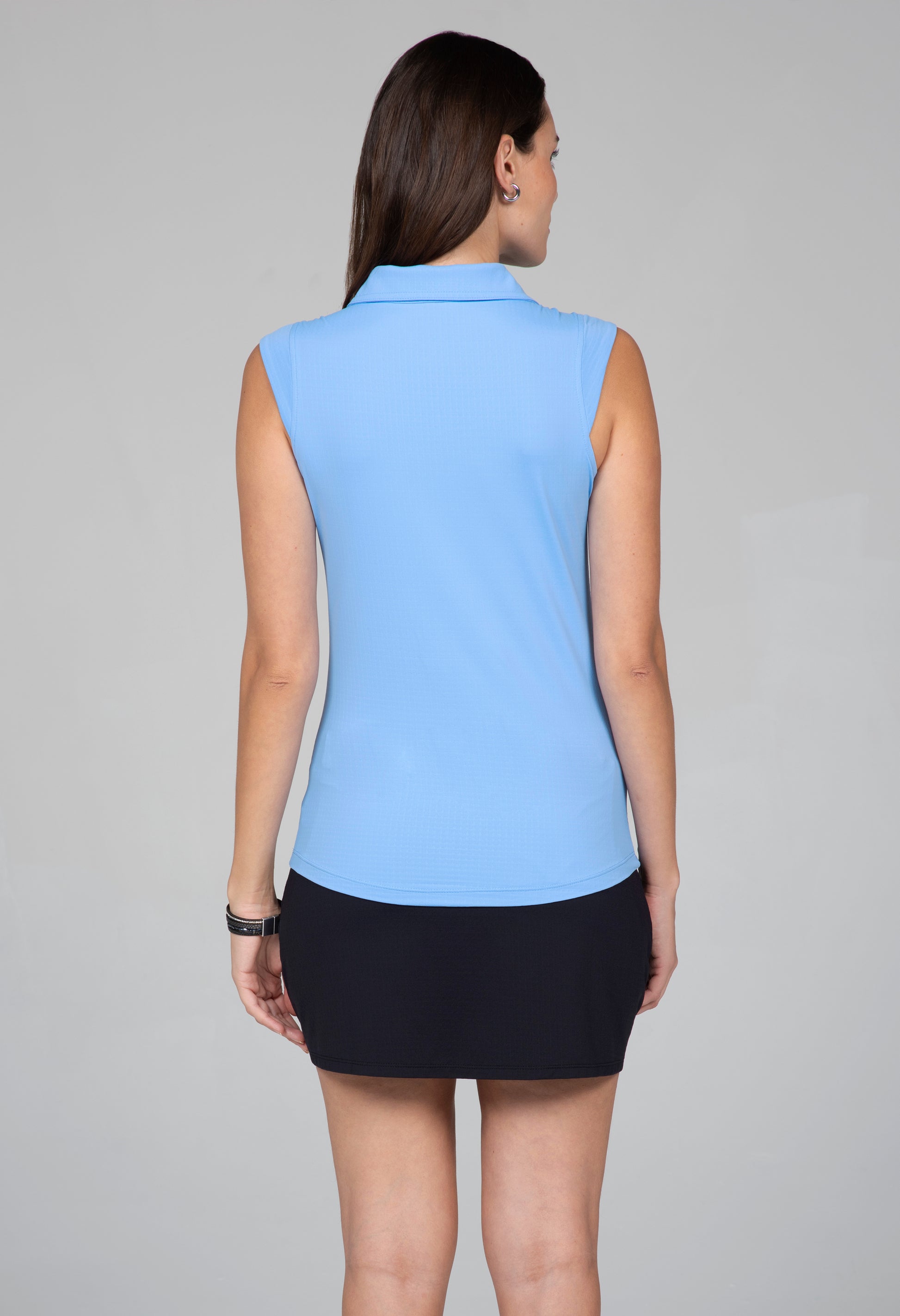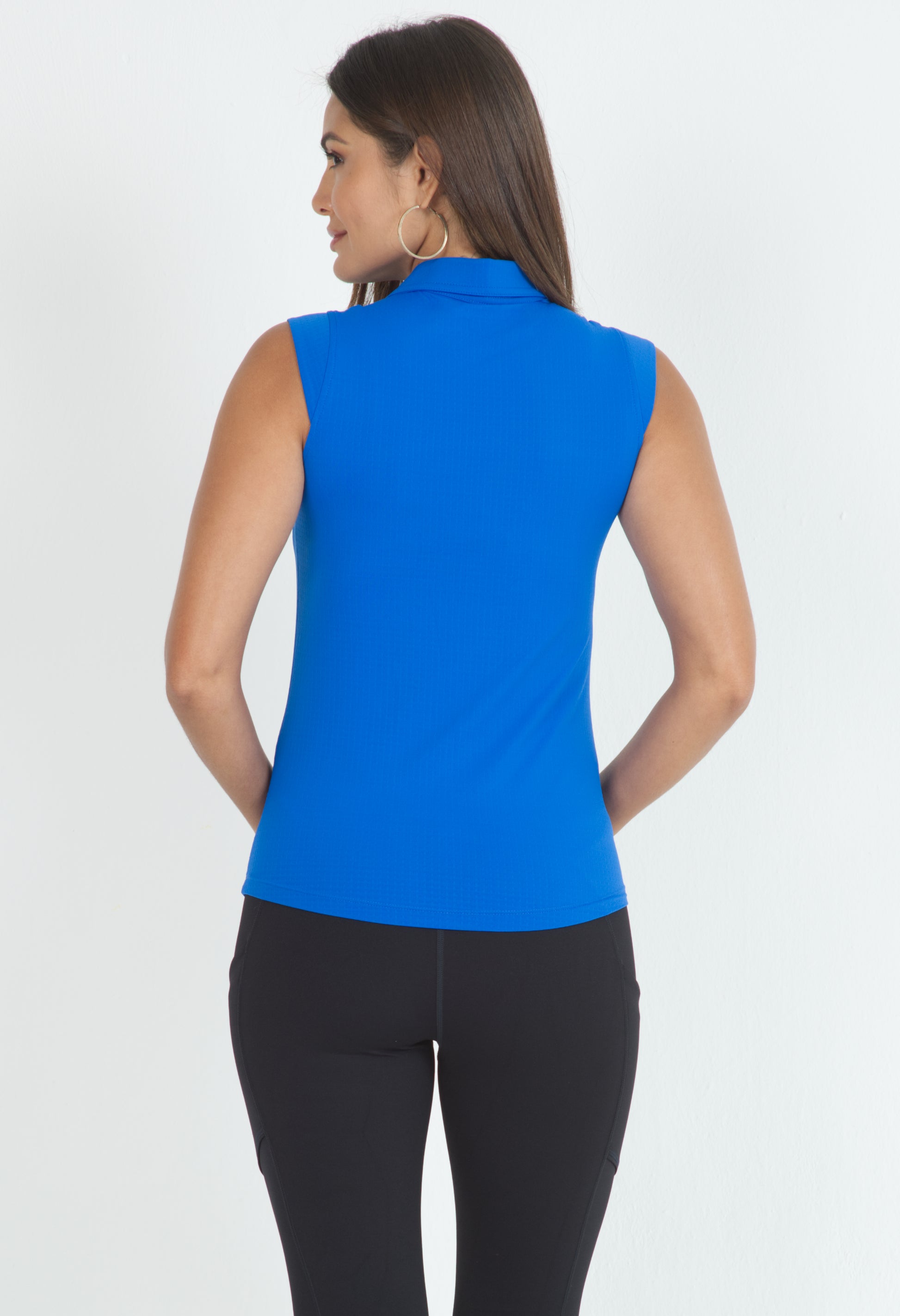 Our Sleeveless Polo features our patented Iceƒil® technology fabric. It works by converting sweat to refrigerant, cooling your skin 3 to 5 degrees, allowing you to be cool, comfortable, and dry on the hottest, most humid days. This garment also has built-in UPF 50 sun protection, moisture-wicking, and anti-odor properties. Wear the Sleeveless Polo to all athleisure activities!
