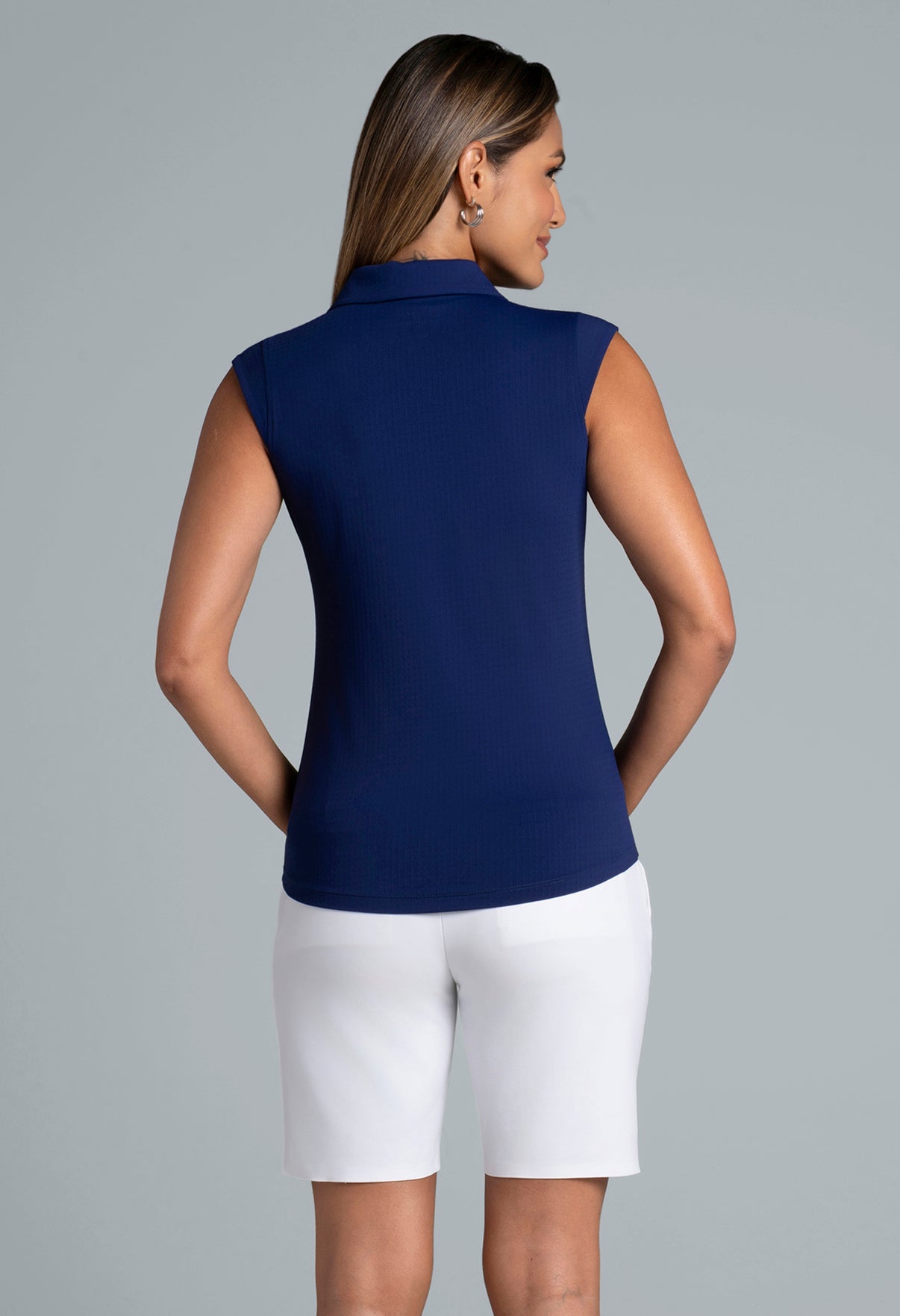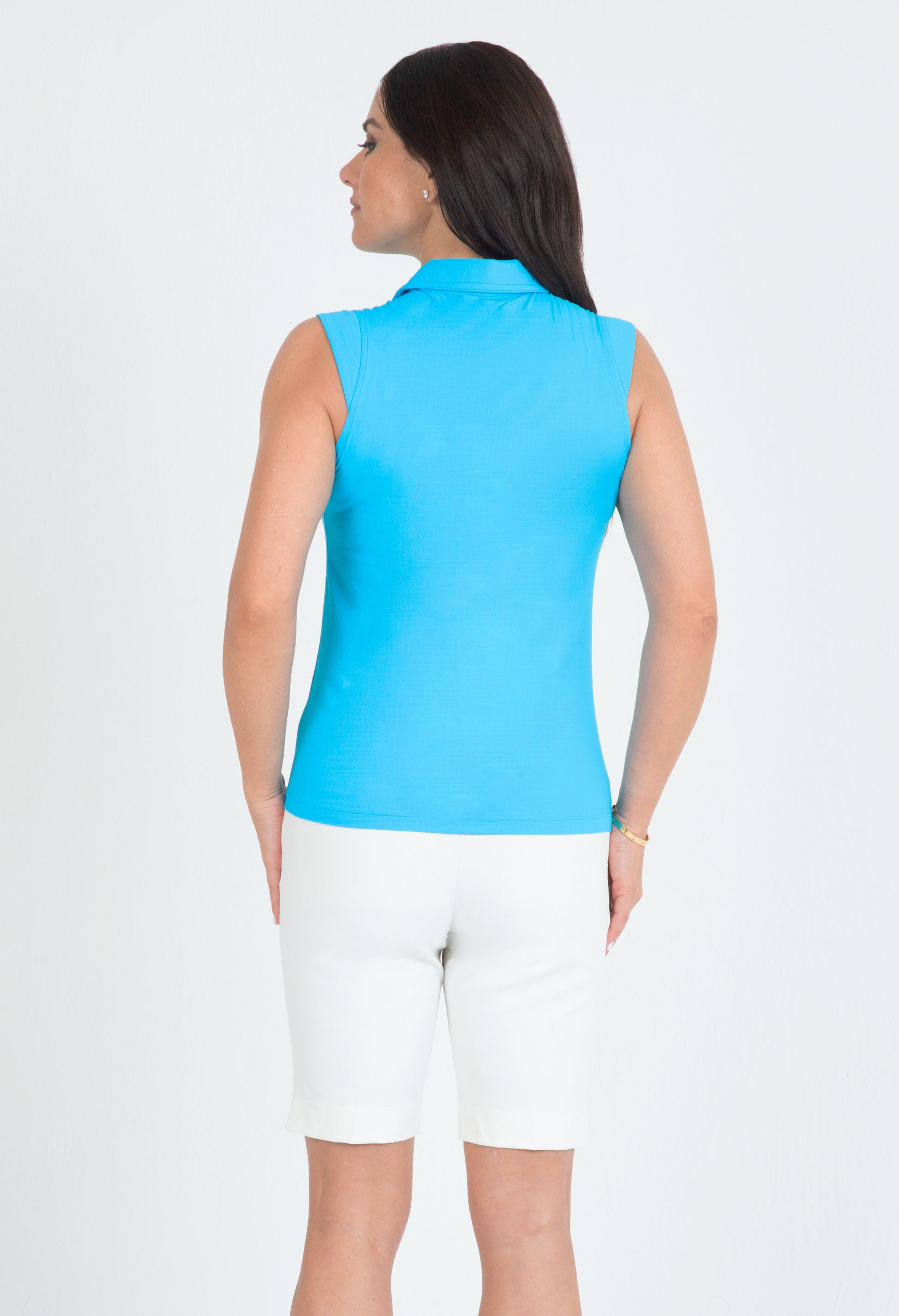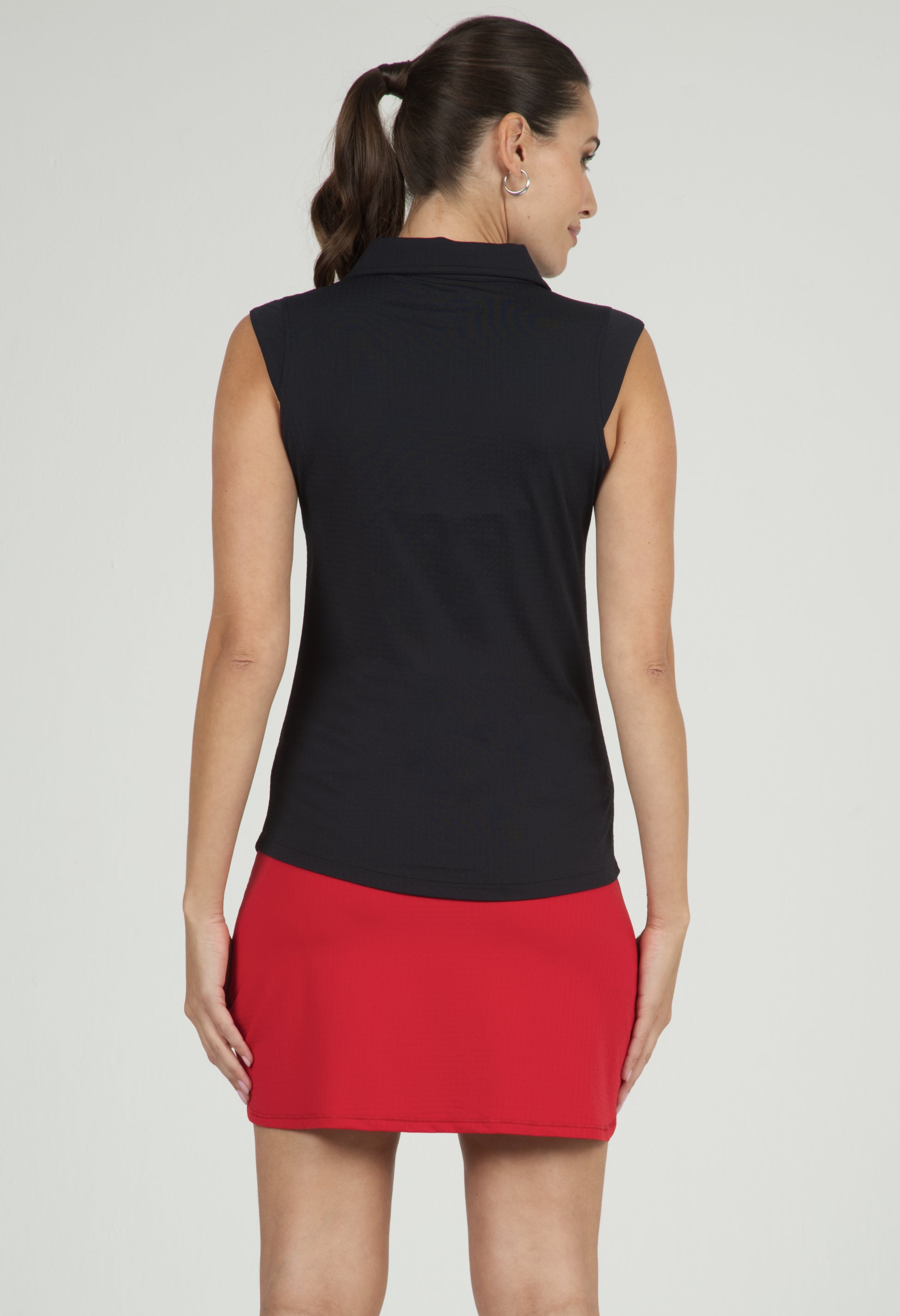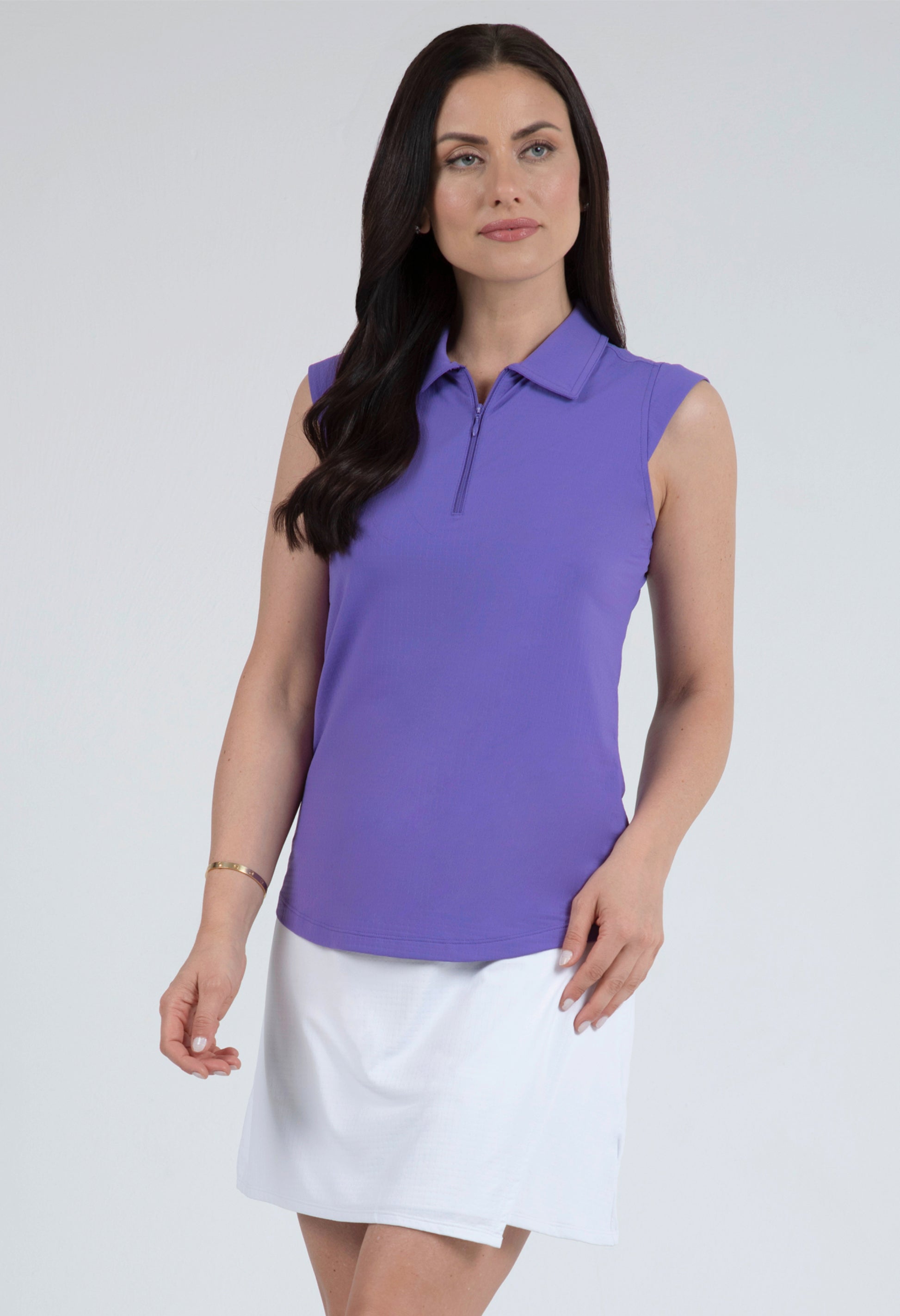 Our Sleeveless Polo features our patented Iceƒil® technology fabric. It works by converting sweat to refrigerant, cooling your skin 3 to 5 degrees, allowing you to be cool, comfortable, and dry on the hottest, most humid days. This garment also has built-in UPF 50 sun protection, moisture-wicking, and anti-odor properties. Wear the Sleeveless Polo to all athleisure activities!