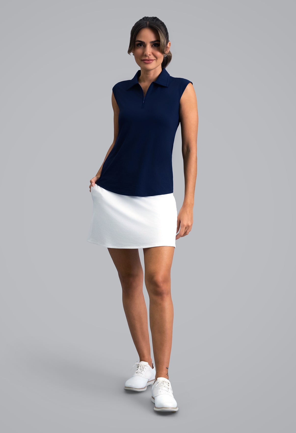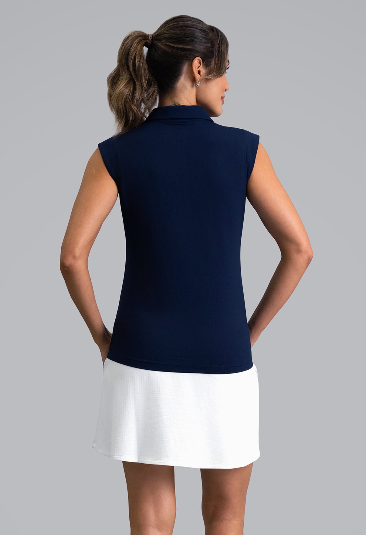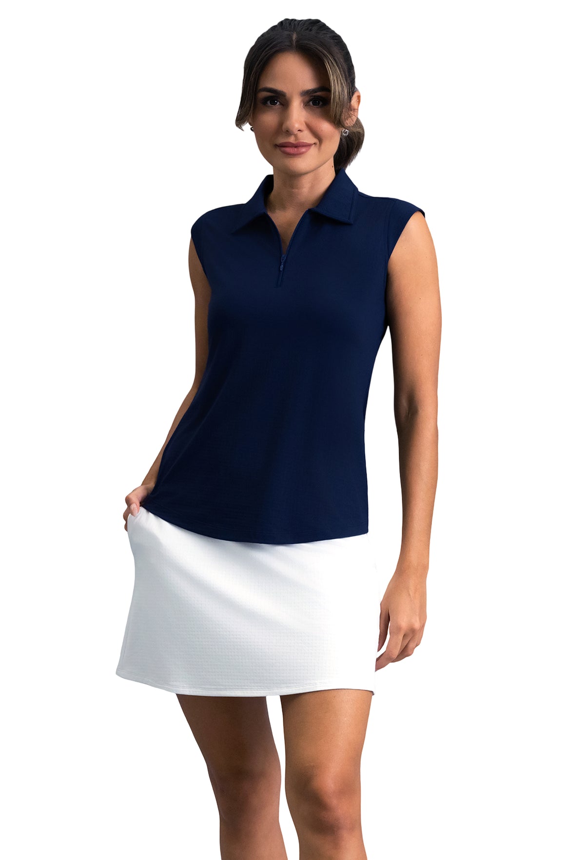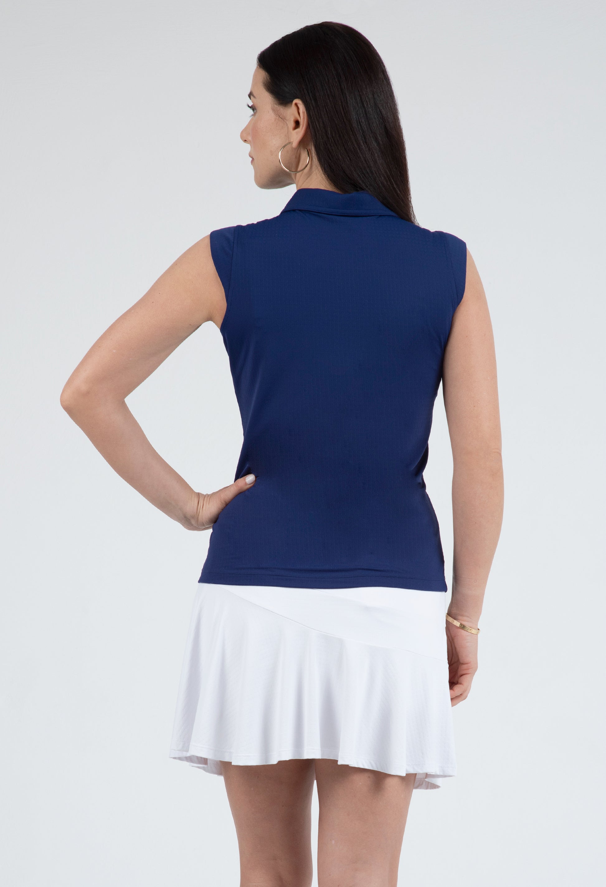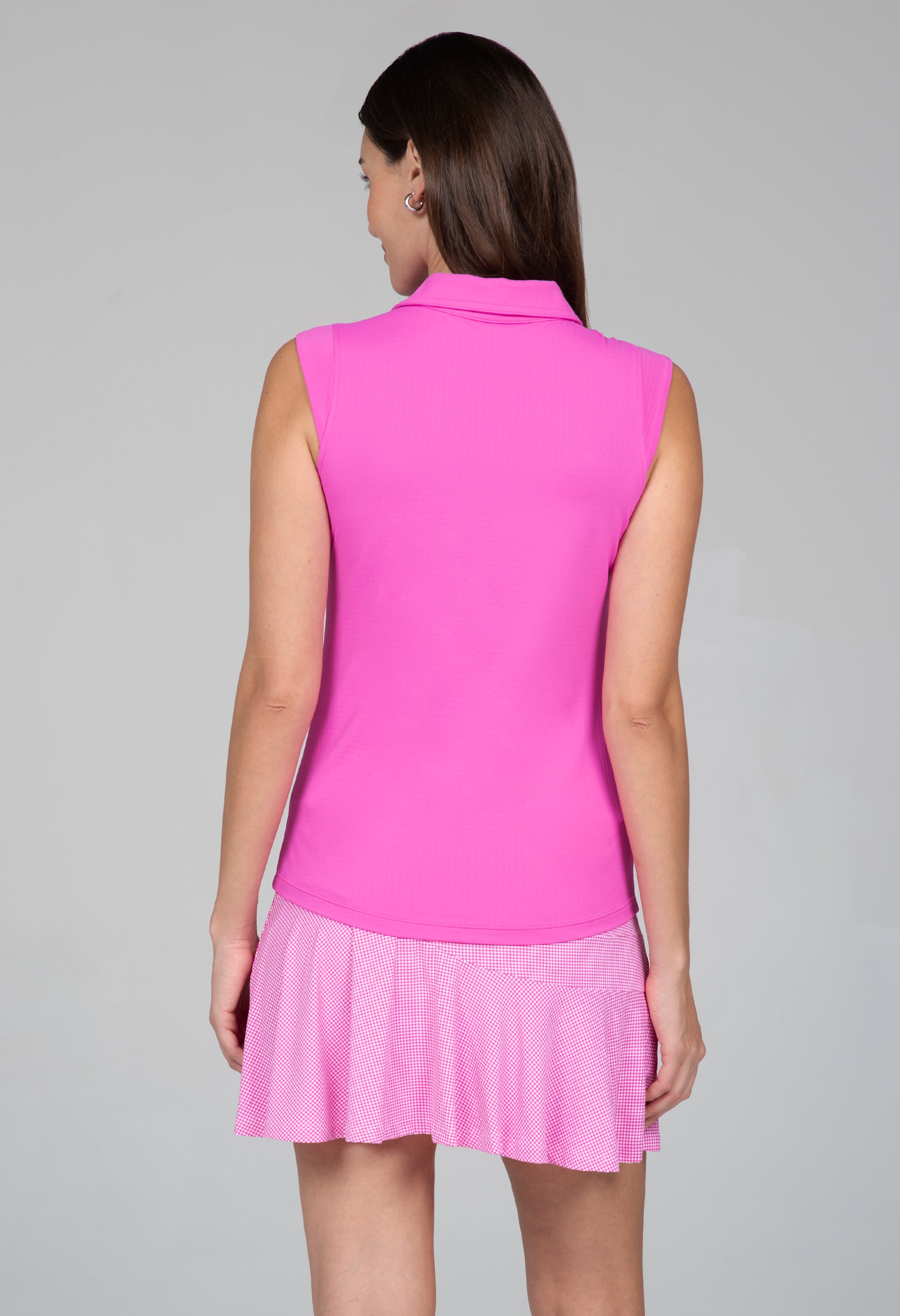 Our Sleeveless Polo features our patented Iceƒil® technology fabric. It works by converting sweat to refrigerant, cooling your skin 3 to 5 degrees, allowing you to be cool, comfortable, and dry on the hottest, most humid days. This garment also has built-in UPF 50 sun protection, moisture-wicking, and anti-odor properties. Wear the Sleeveless Polo to all athleisure activities!