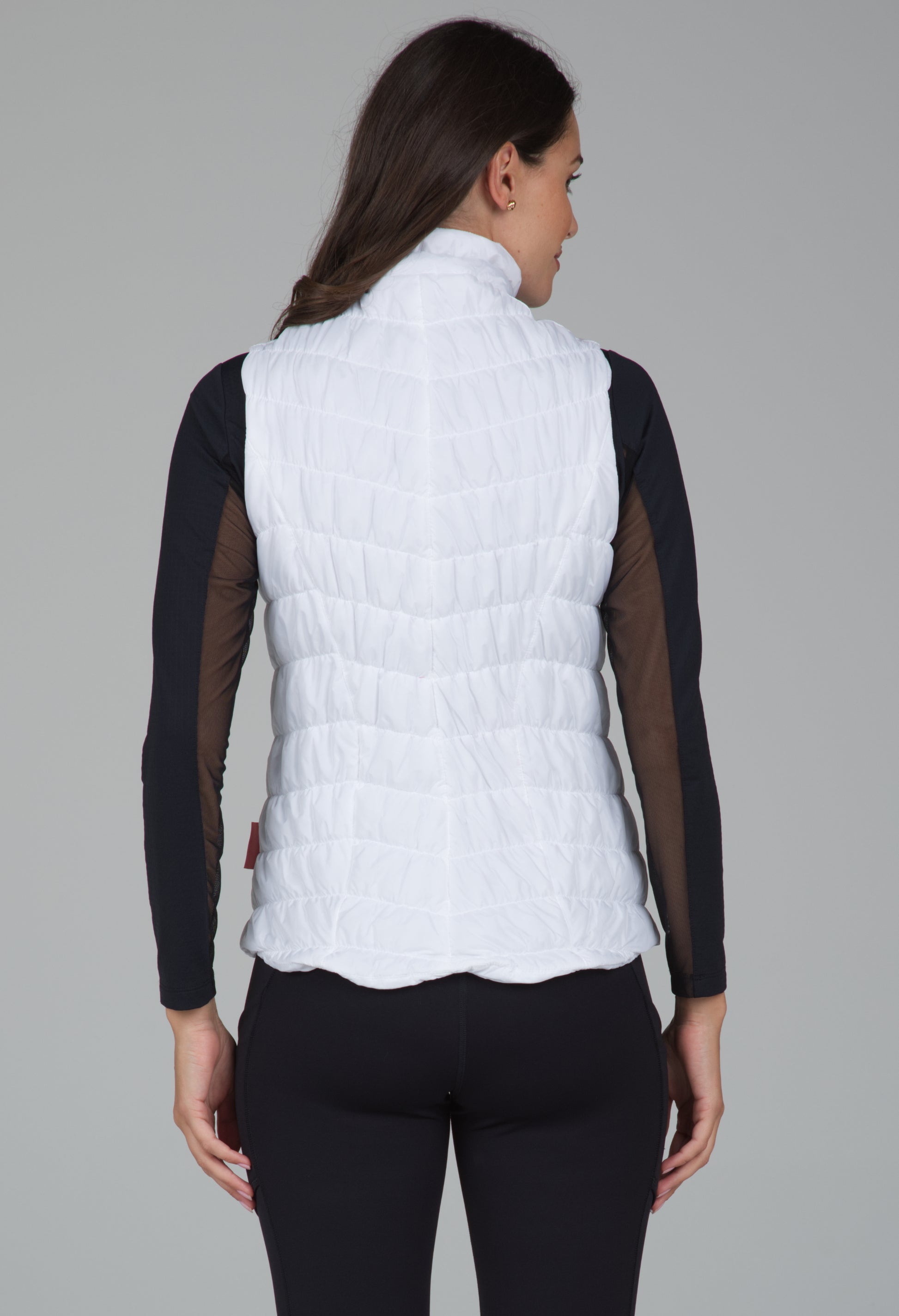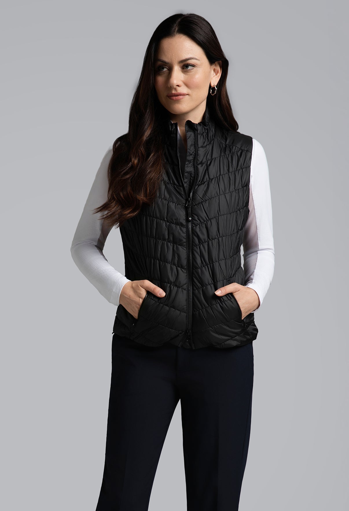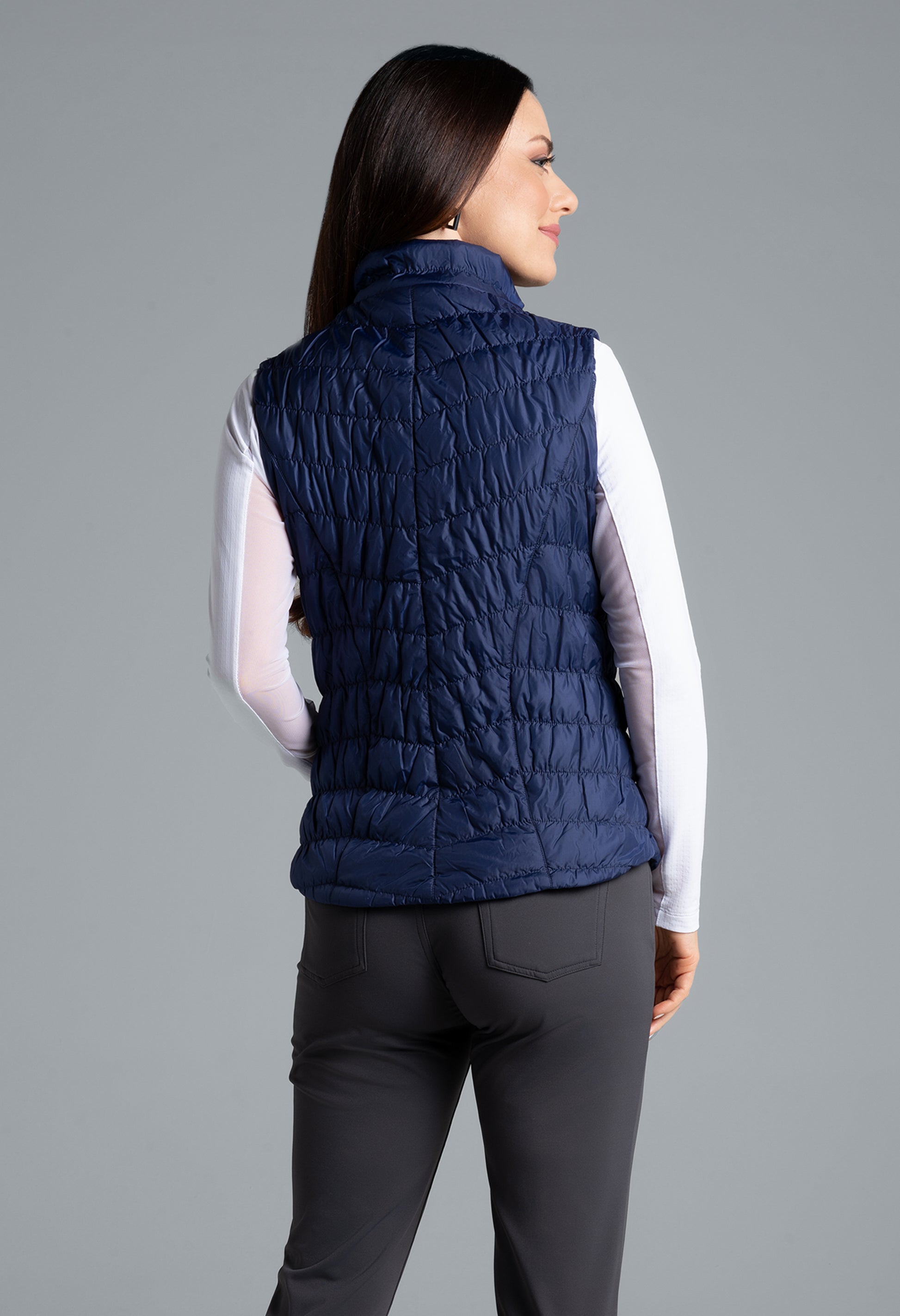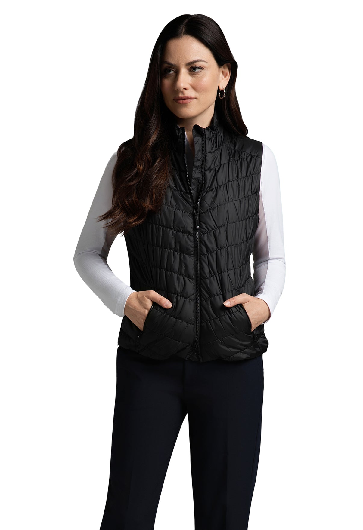 You’ll feel warm inside and out wearing this cozy, breathable and sustainable vest filled with environmentally friendly, renewable bio-based fibers. Shirred elastic quilting, princess seaming detail and an adjustable hem makes this garment flattering to all body types and fashionable. Zip pockets keep your hands warm on cool days and all your essentials secured. Look, feel and play your best while keeping the chill and winds at bay.