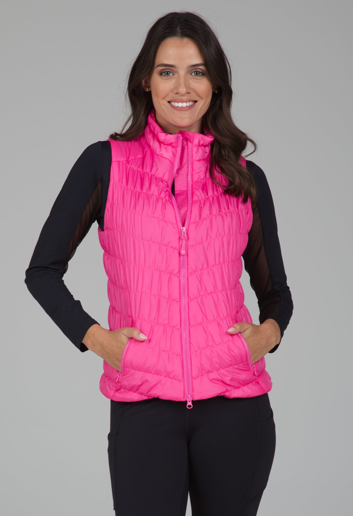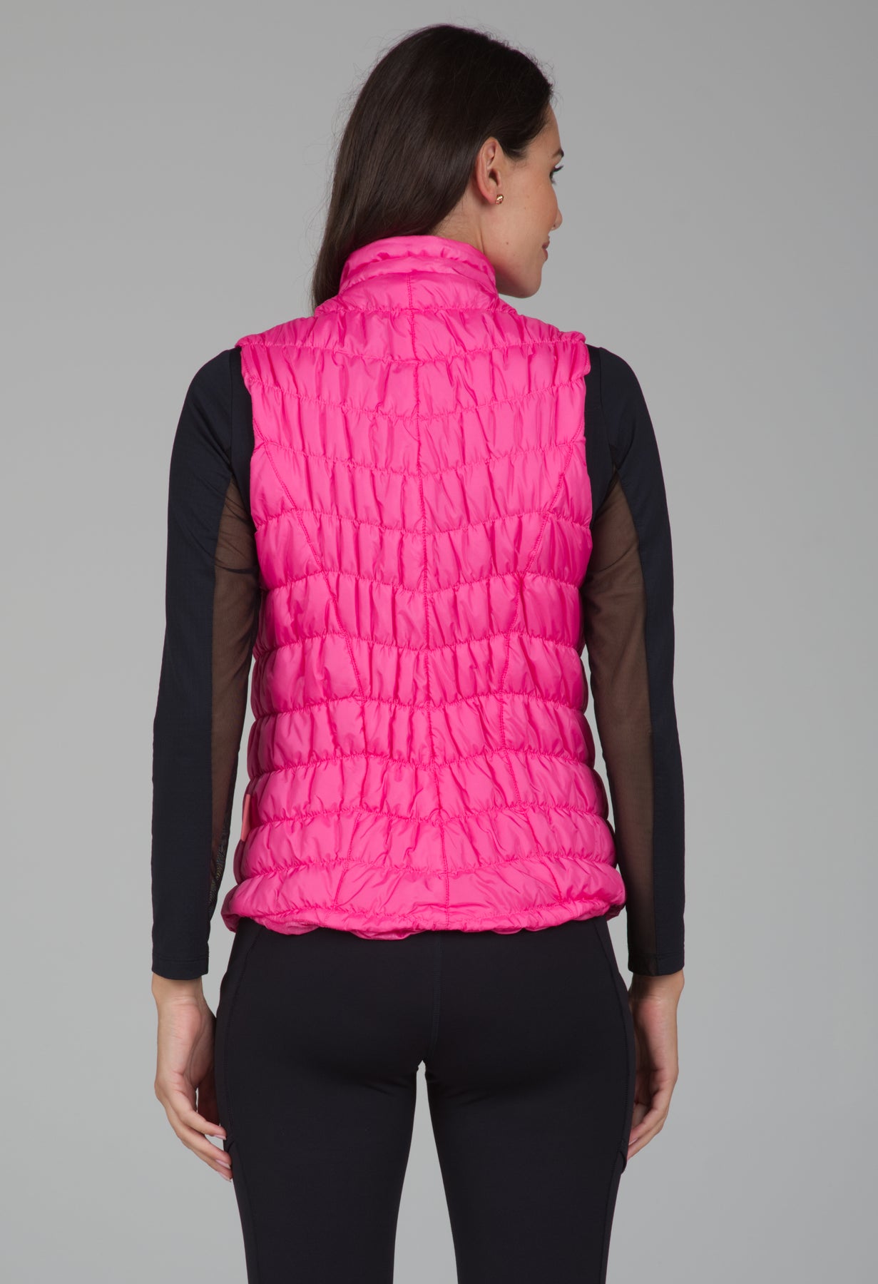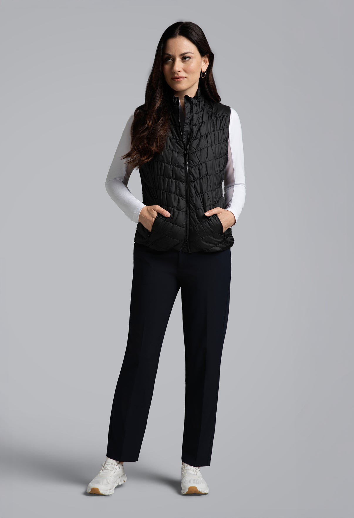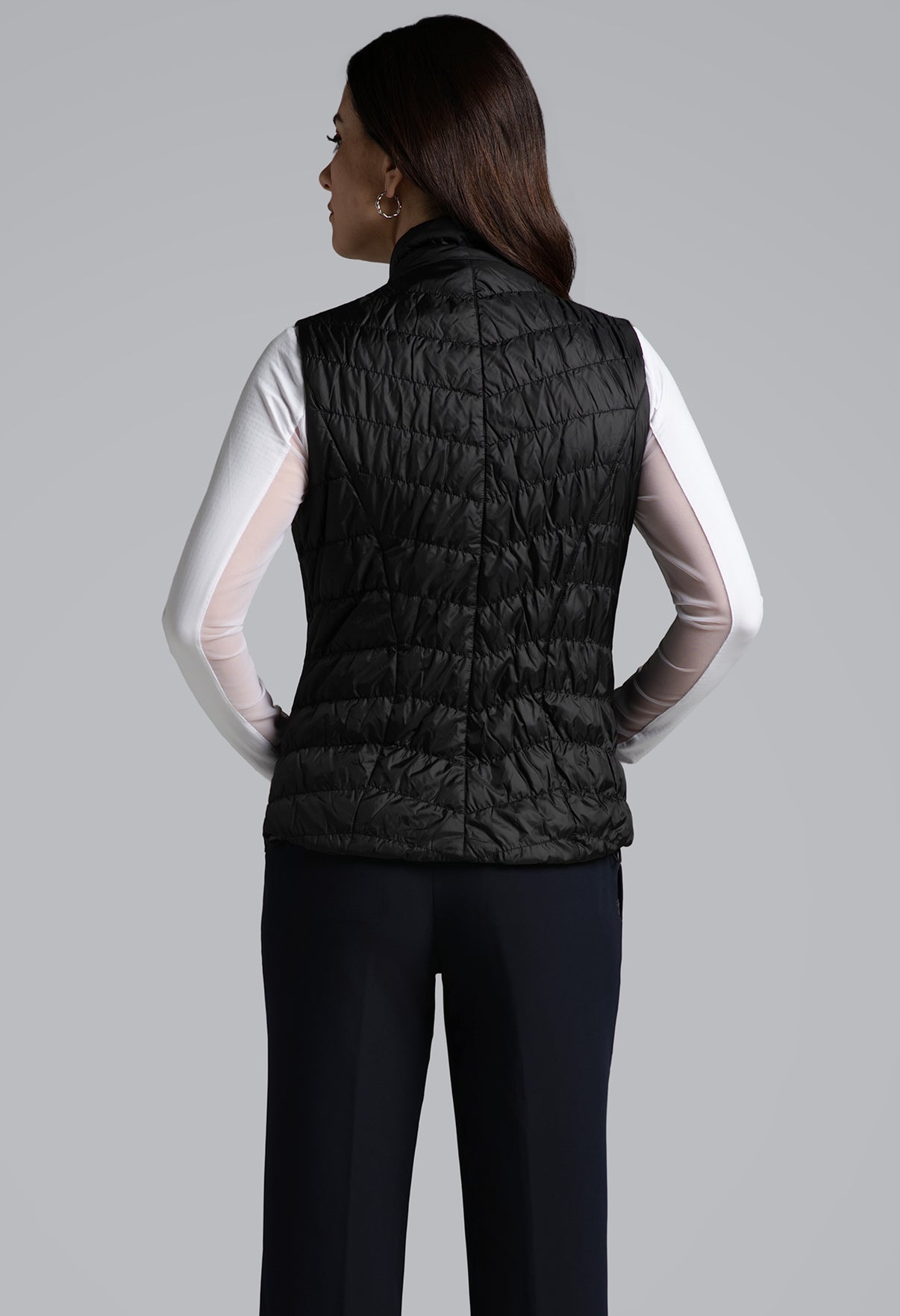 You’ll feel warm inside and out wearing this cozy, breathable and sustainable vest filled with environmentally friendly, renewable bio-based fibers. Shirred elastic quilting, princess seaming detail and an adjustable hem makes this garment flattering to all body types and fashionable. Zip pockets keep your hands warm on cool days and all your essentials secured. Look, feel and play your best while keeping the chill and winds at bay.