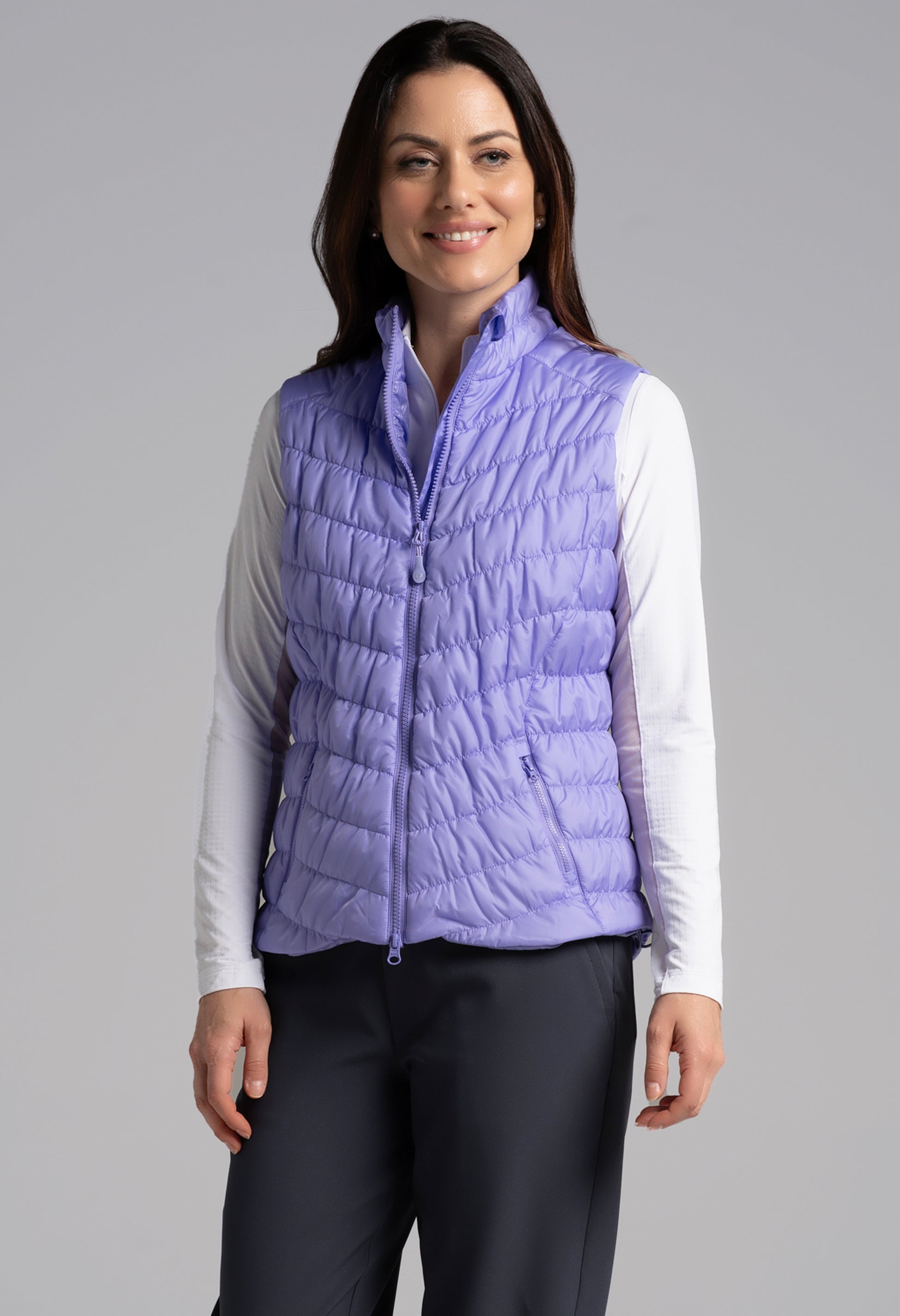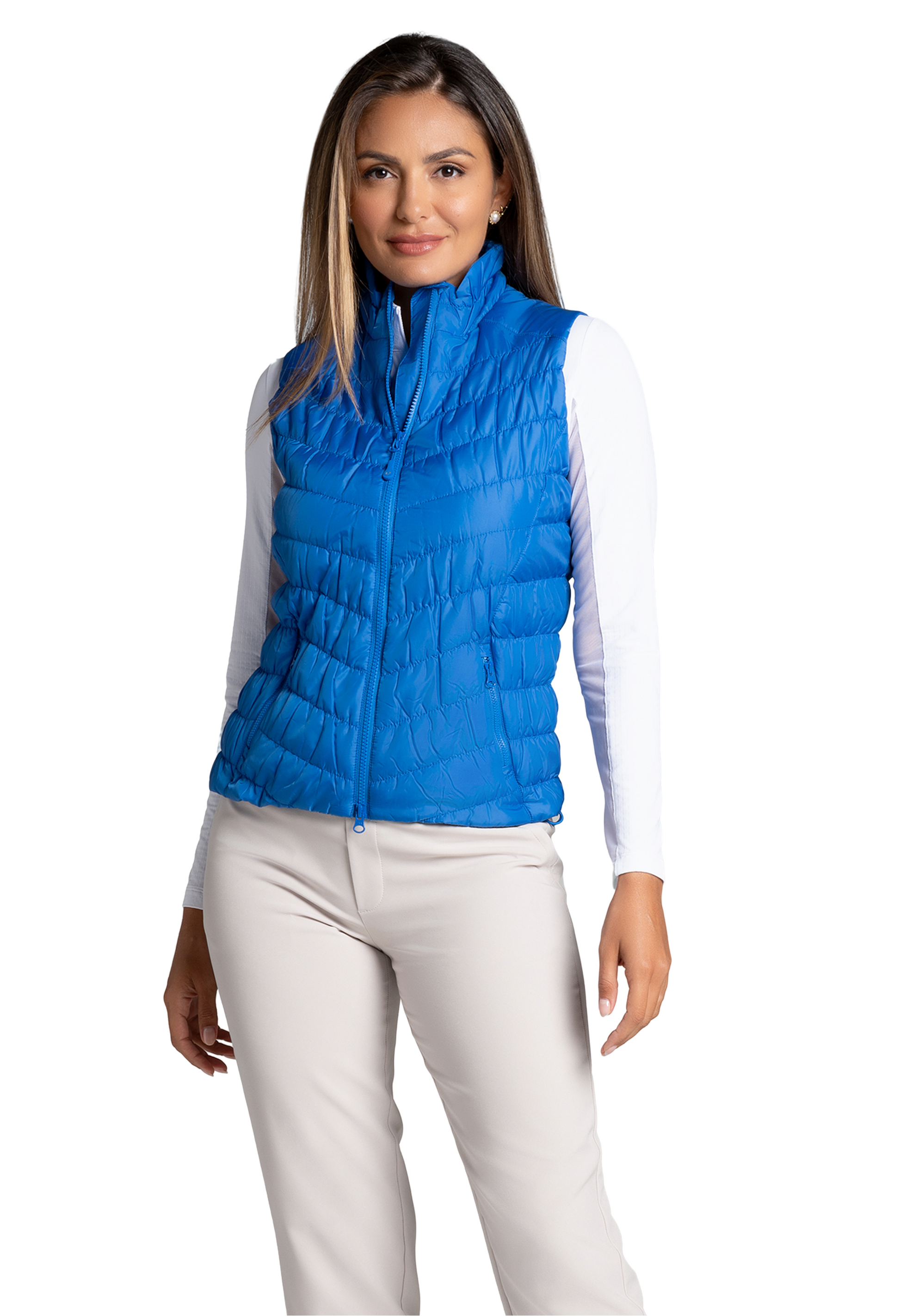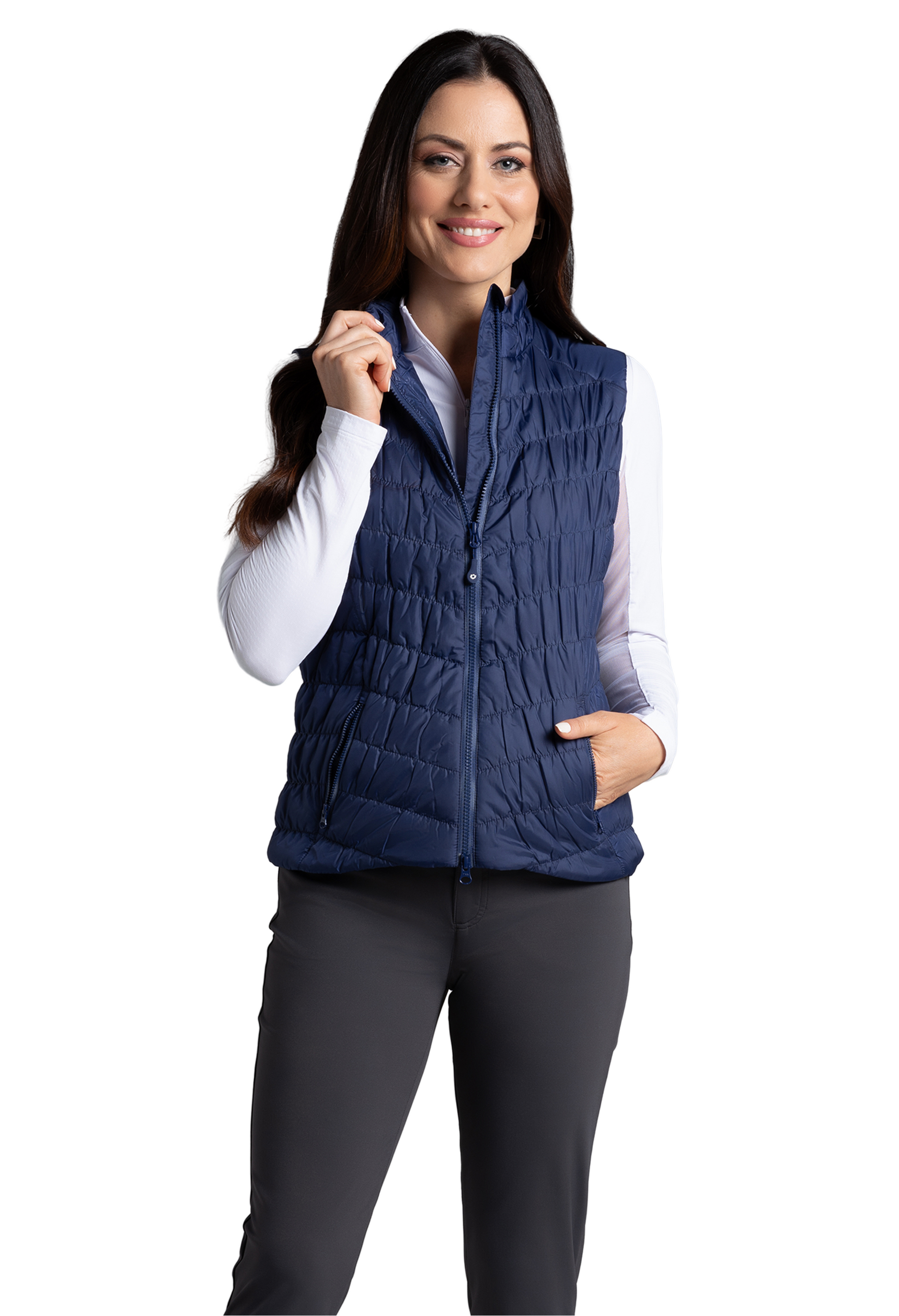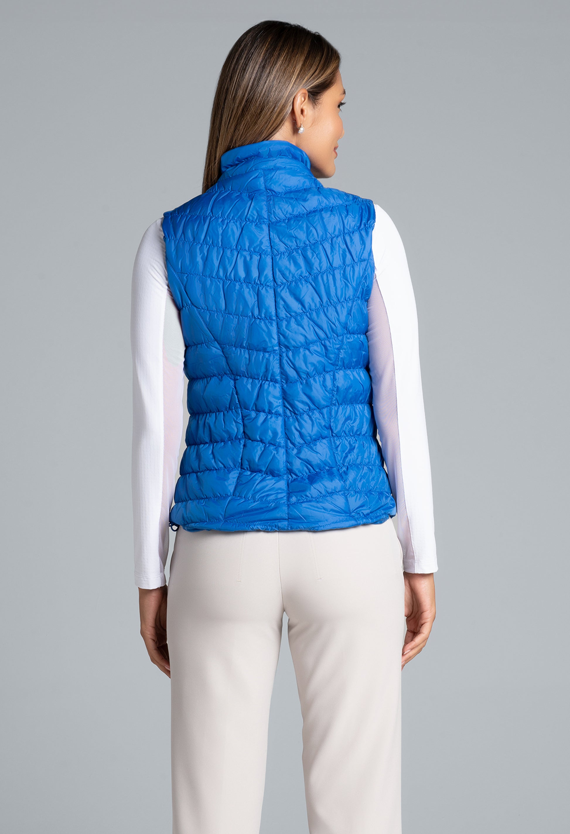 You’ll feel warm inside and out wearing this cozy, breathable and sustainable vest filled with environmentally friendly, renewable bio-based fibers. Shirred elastic quilting, princess seaming detail and an adjustable hem makes this garment flattering to all body types and fashionable. Zip pockets keep your hands warm on cool days and all your essentials secured. Look, feel and play your best while keeping the chill and winds at bay.