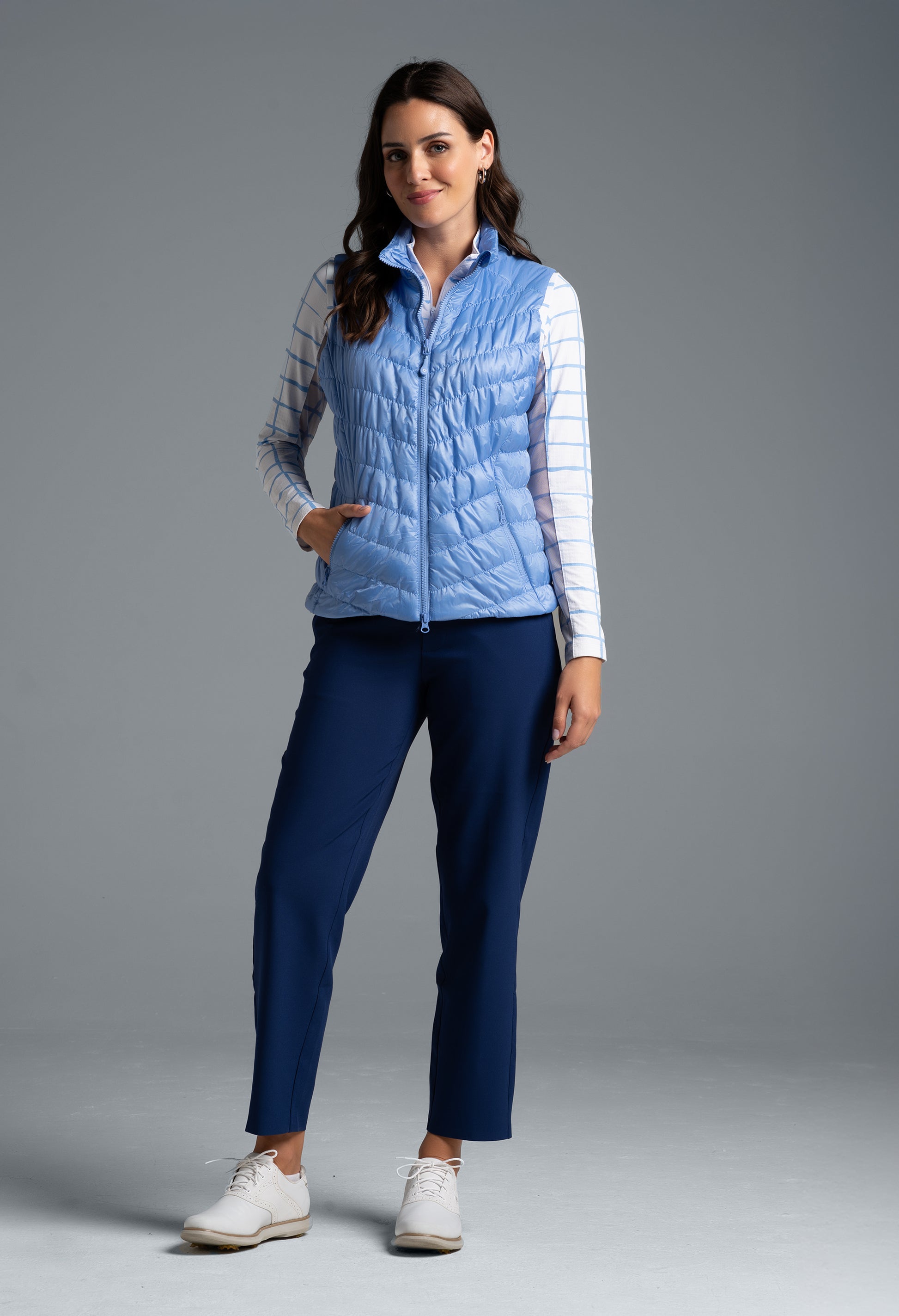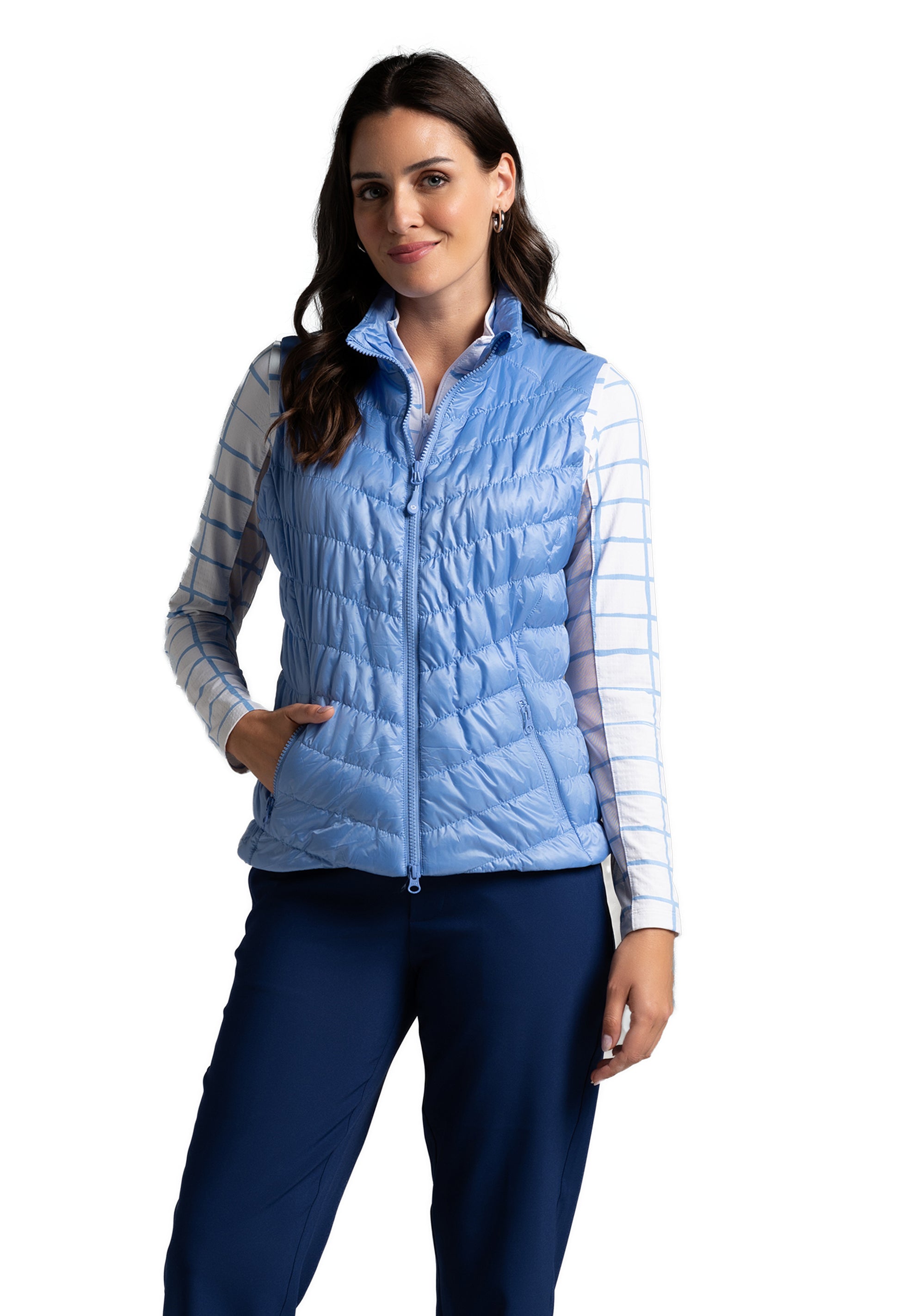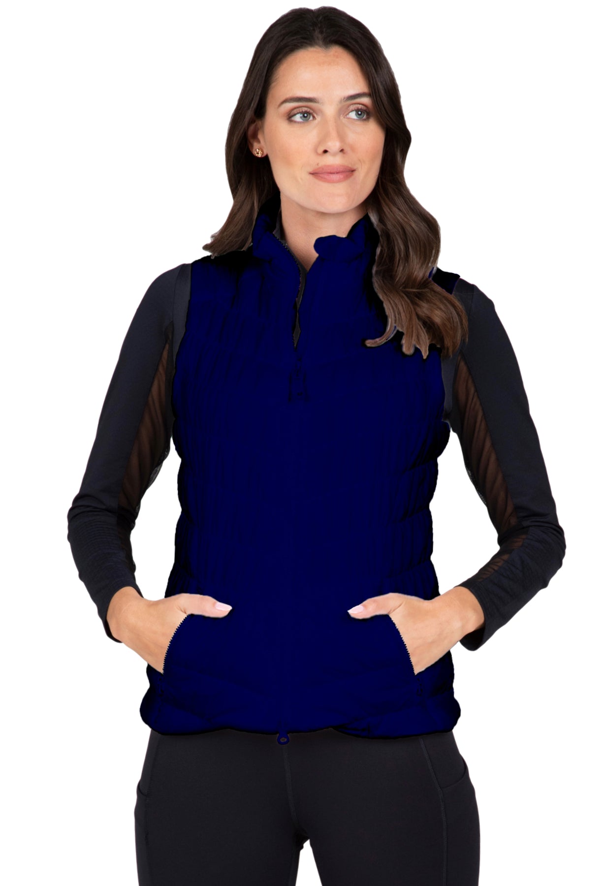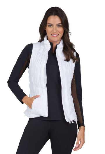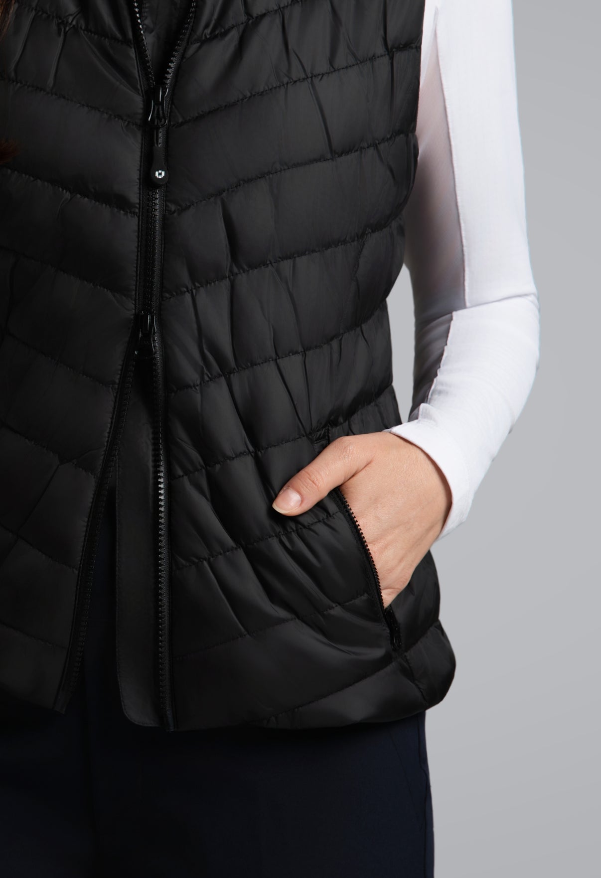 You’ll feel warm inside and out wearing this cozy, breathable and sustainable vest filled with environmentally friendly, renewable bio-based fibers. Shirred elastic quilting, princess seaming detail and an adjustable hem makes this garment flattering to all body types and fashionable. Zip pockets keep your hands warm on cool days and all your essentials secured. Look, feel and play your best while keeping the chill and winds at bay.