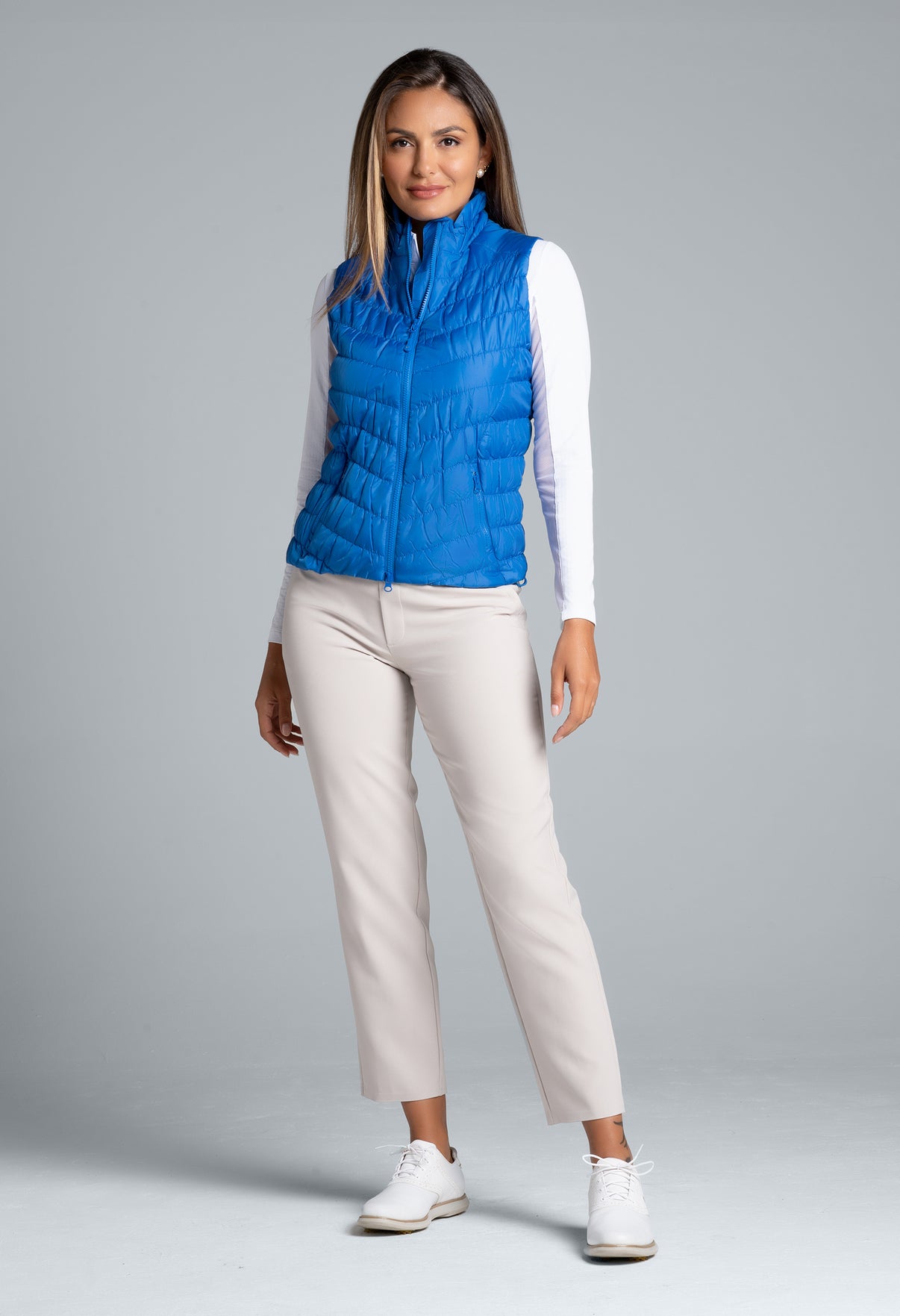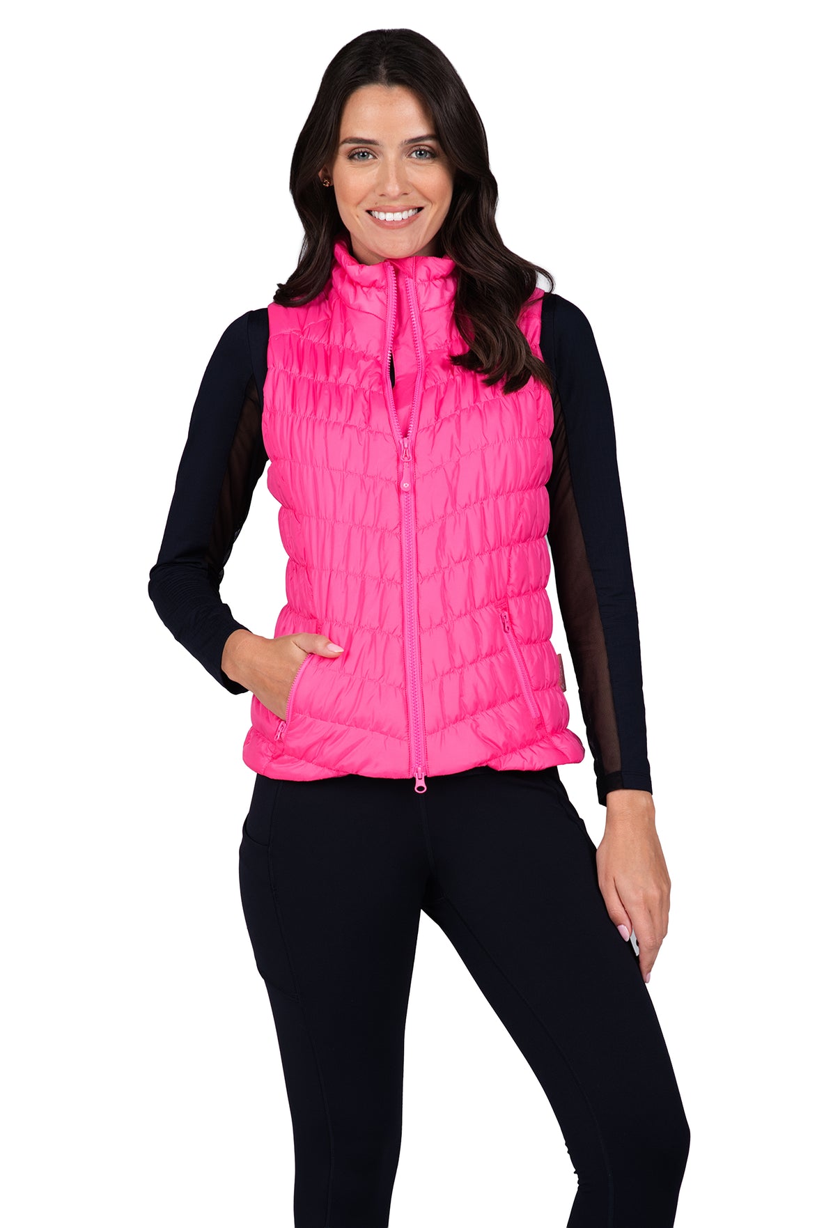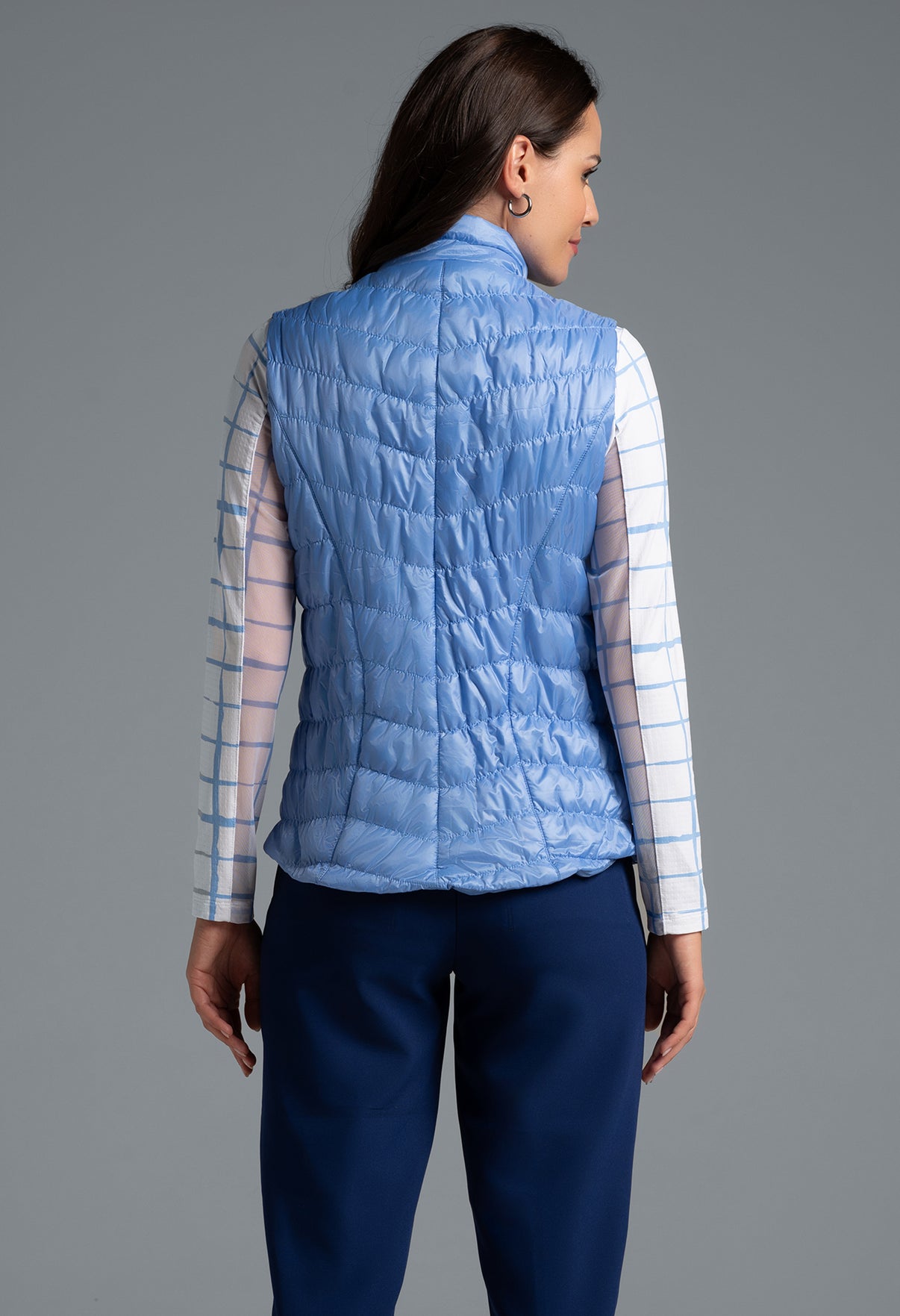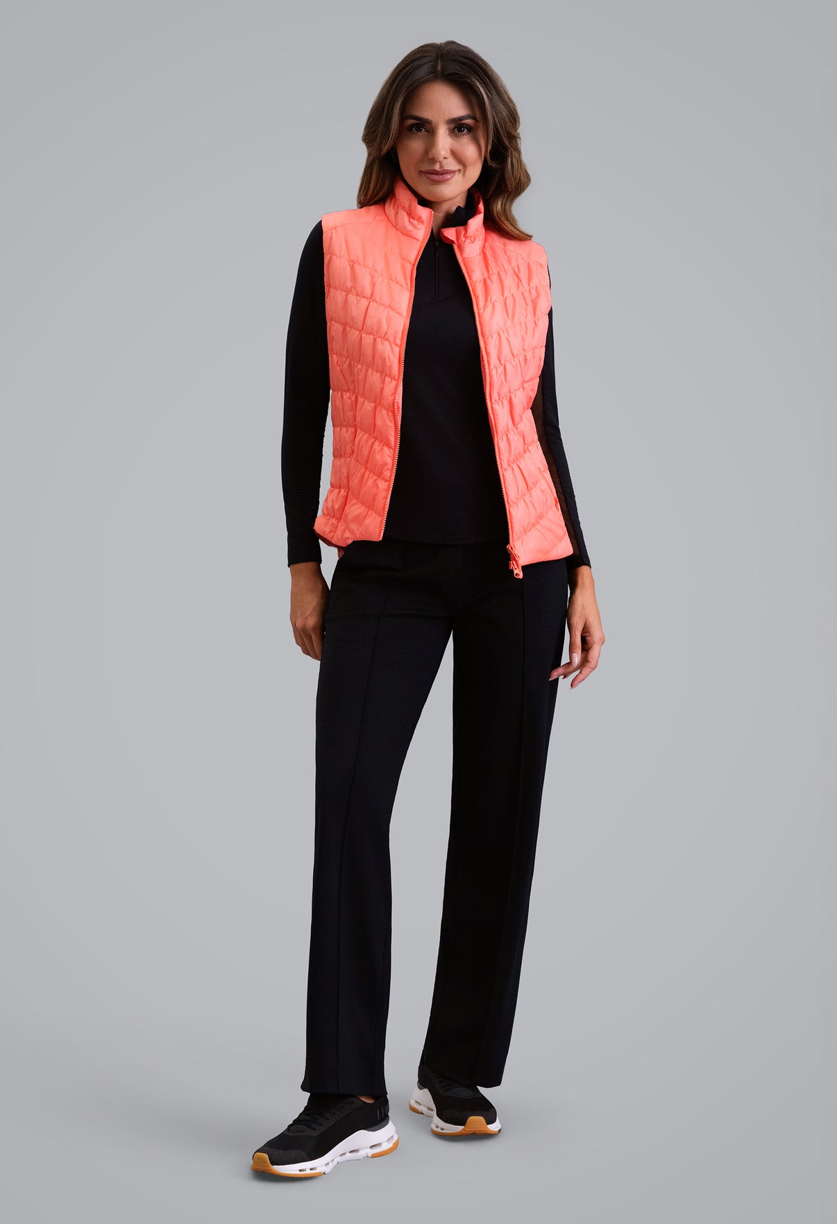 You’ll feel warm inside and out wearing this cozy, breathable and sustainable vest filled with environmentally friendly, renewable bio-based fibers. Shirred elastic quilting, princess seaming detail and an adjustable hem makes this garment flattering to all body types and fashionable. Zip pockets keep your hands warm on cool days and all your essentials secured. Look, feel and play your best while keeping the chill and winds at bay.