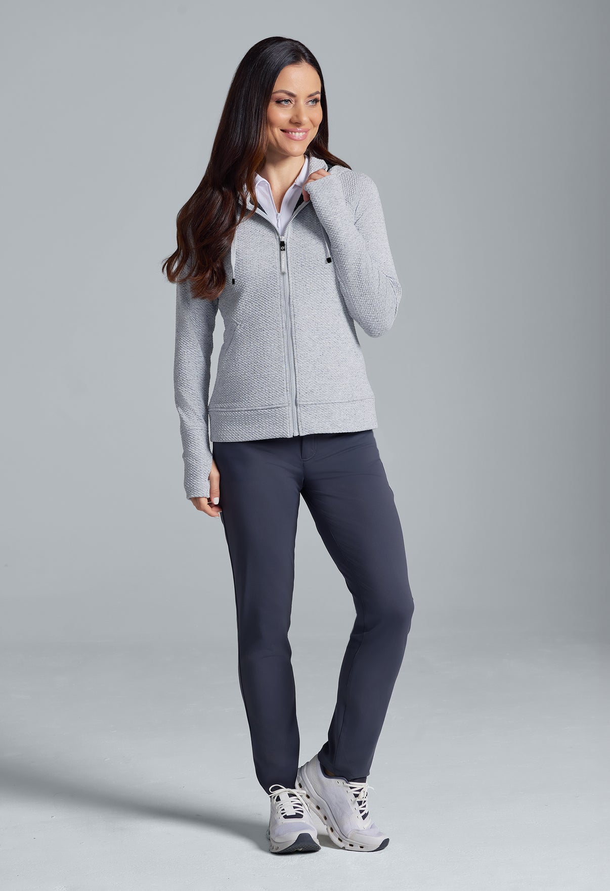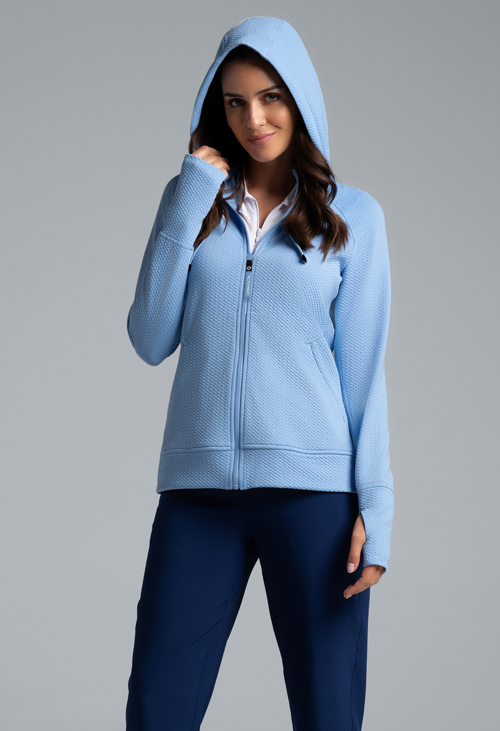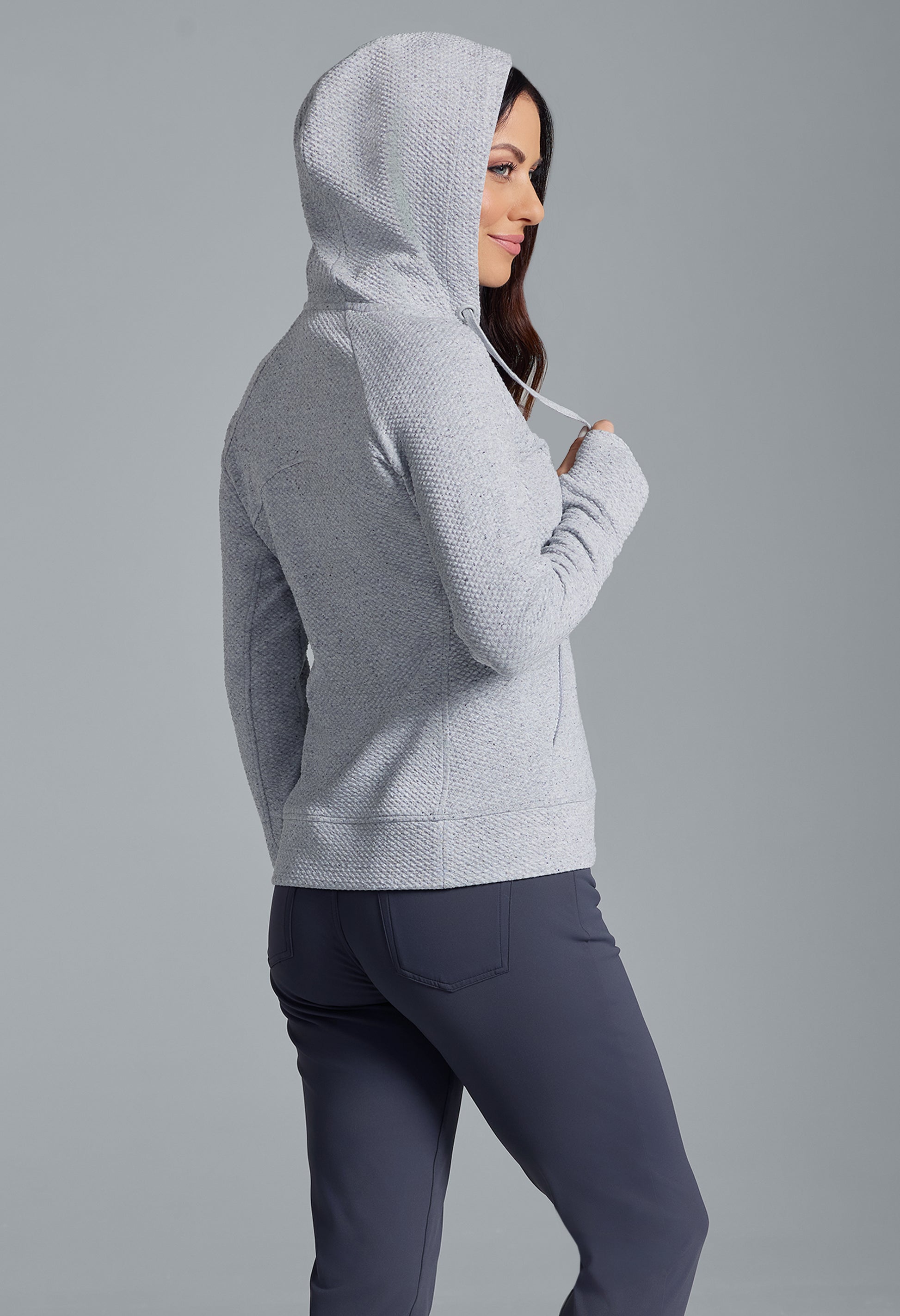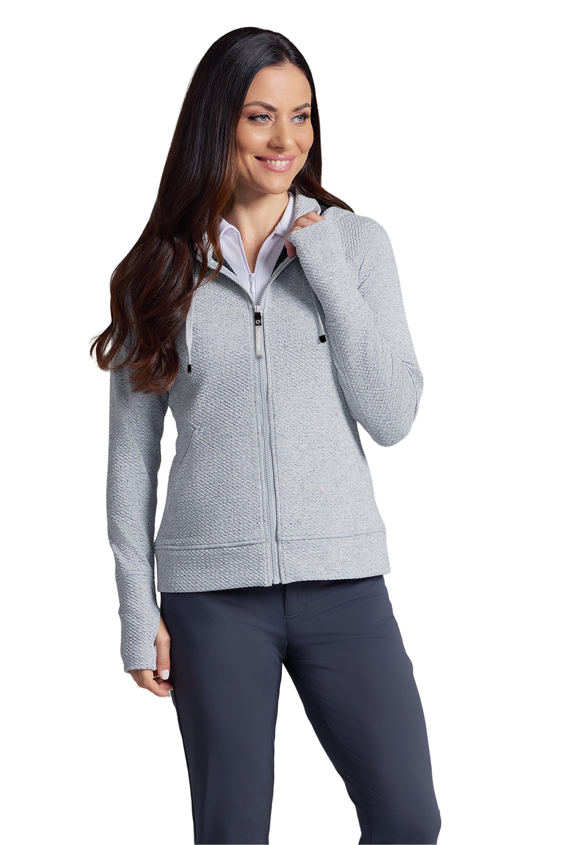 Meet your ultimate travel and lounge companion: the popcorn stitch full-zip hoodie featuring stain resistant fabric and endless versatility. Whether you’re indulging in well-deserved downtime or embarking on a cross-country road trip, take comfort in knowing this hoodie has your back—and that spills don’t stand a chance