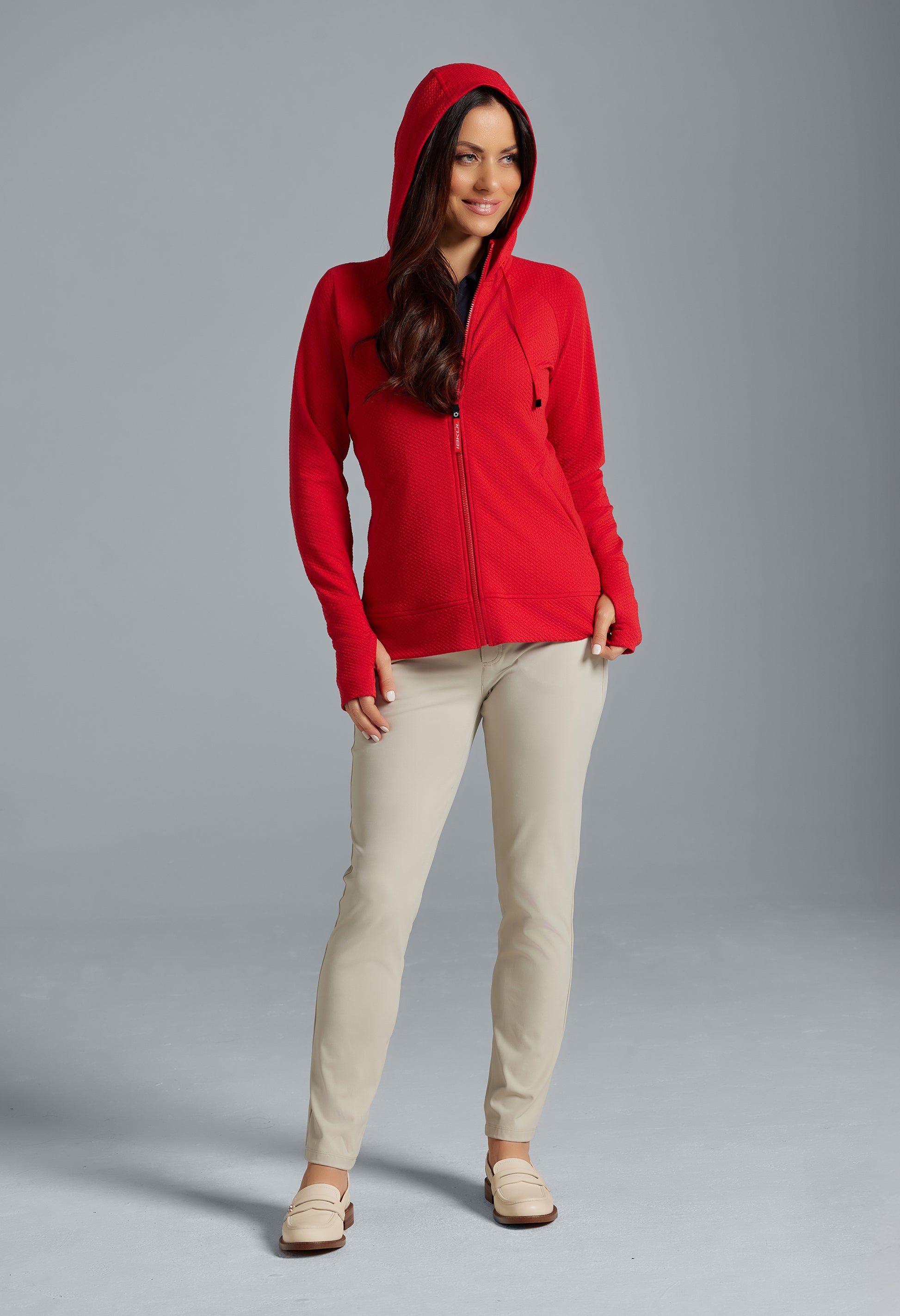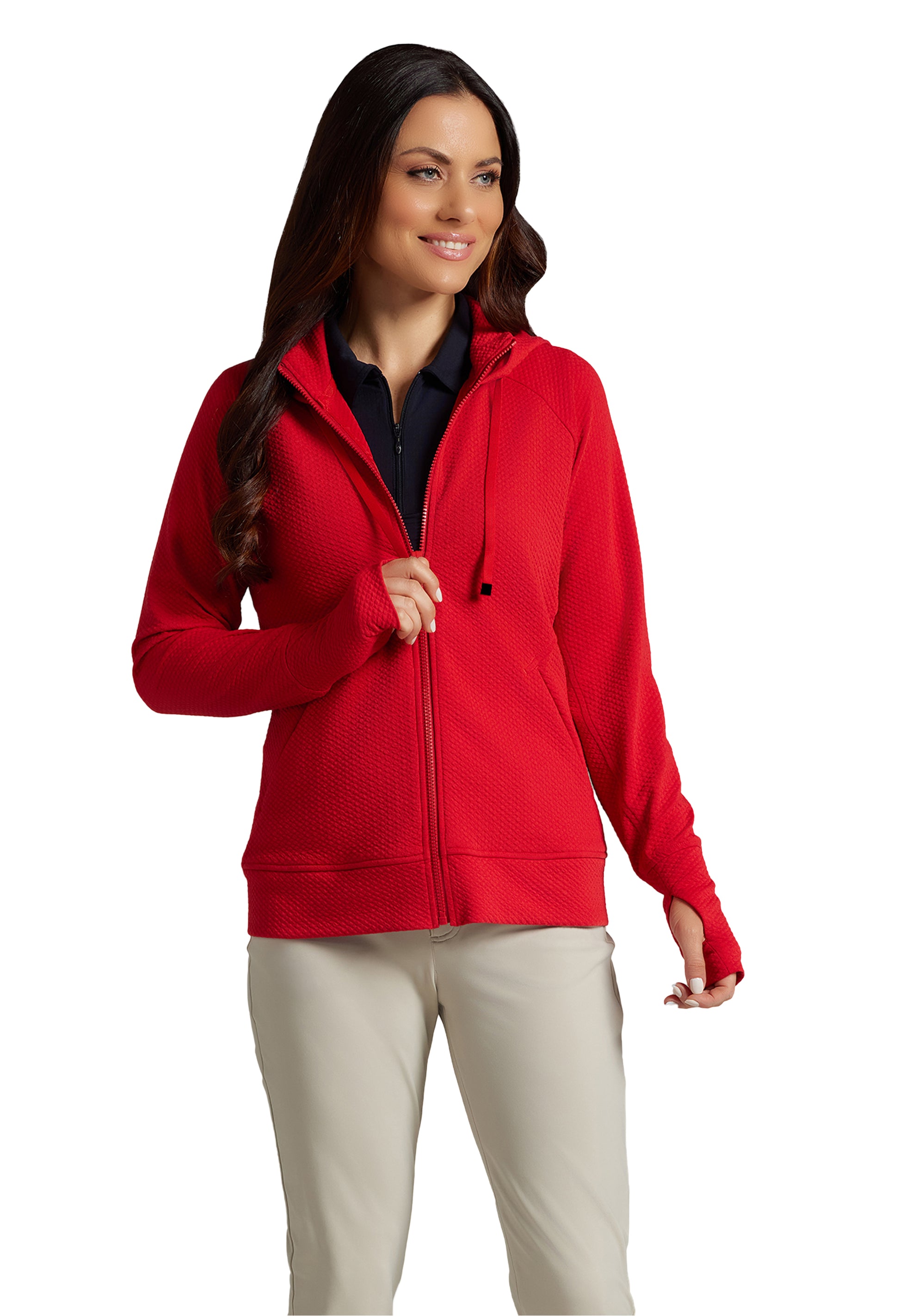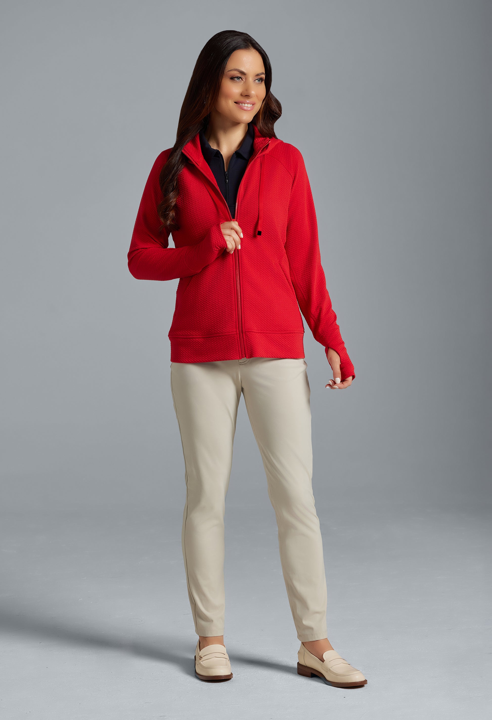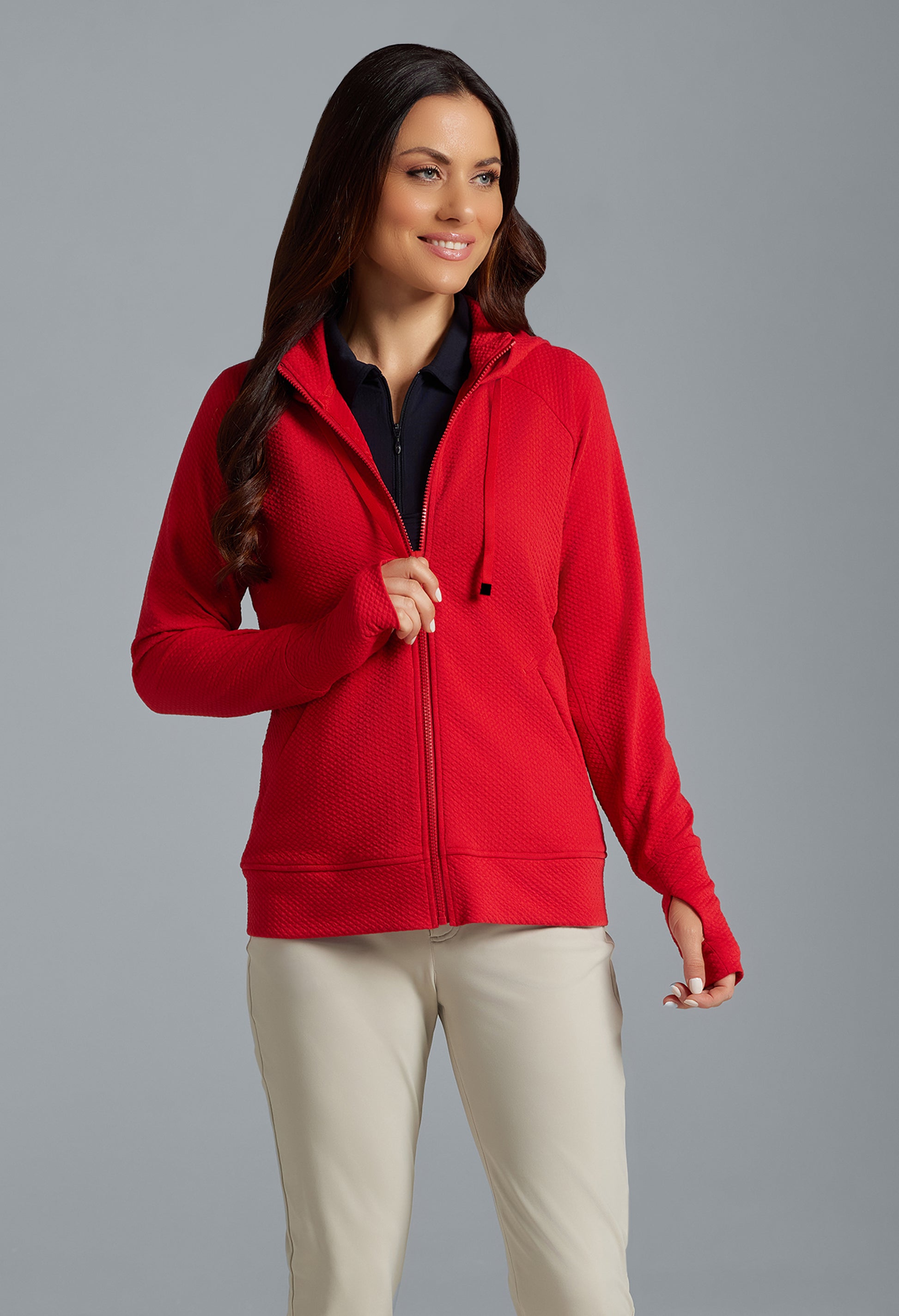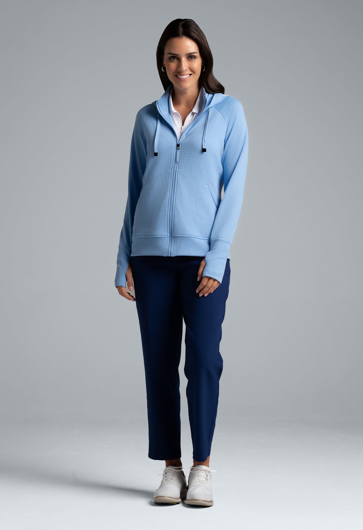 Meet your ultimate travel and lounge companion: the popcorn stitch full-zip hoodie featuring stain resistant fabric and endless versatility. Whether you’re indulging in well-deserved downtime or embarking on a cross-country road trip, take comfort in knowing this hoodie has your back—and that spills don’t stand a chance
