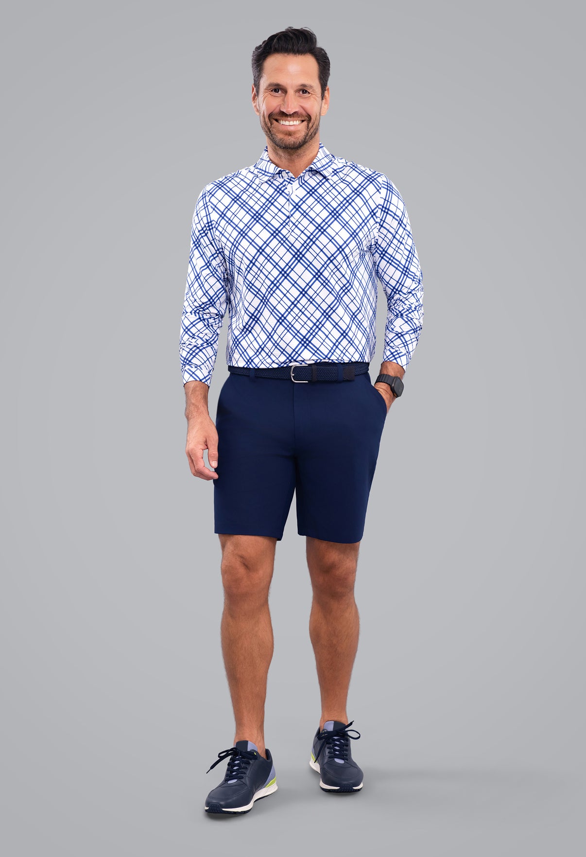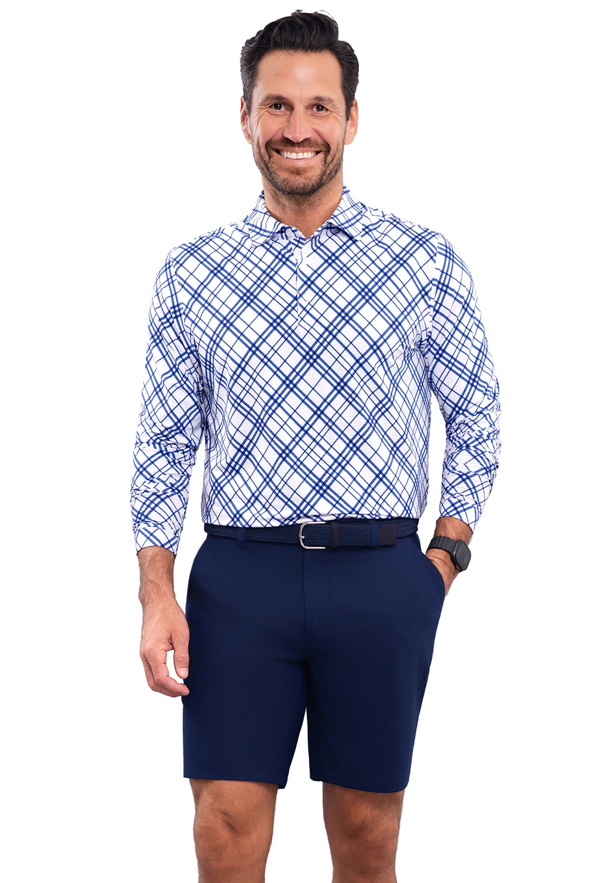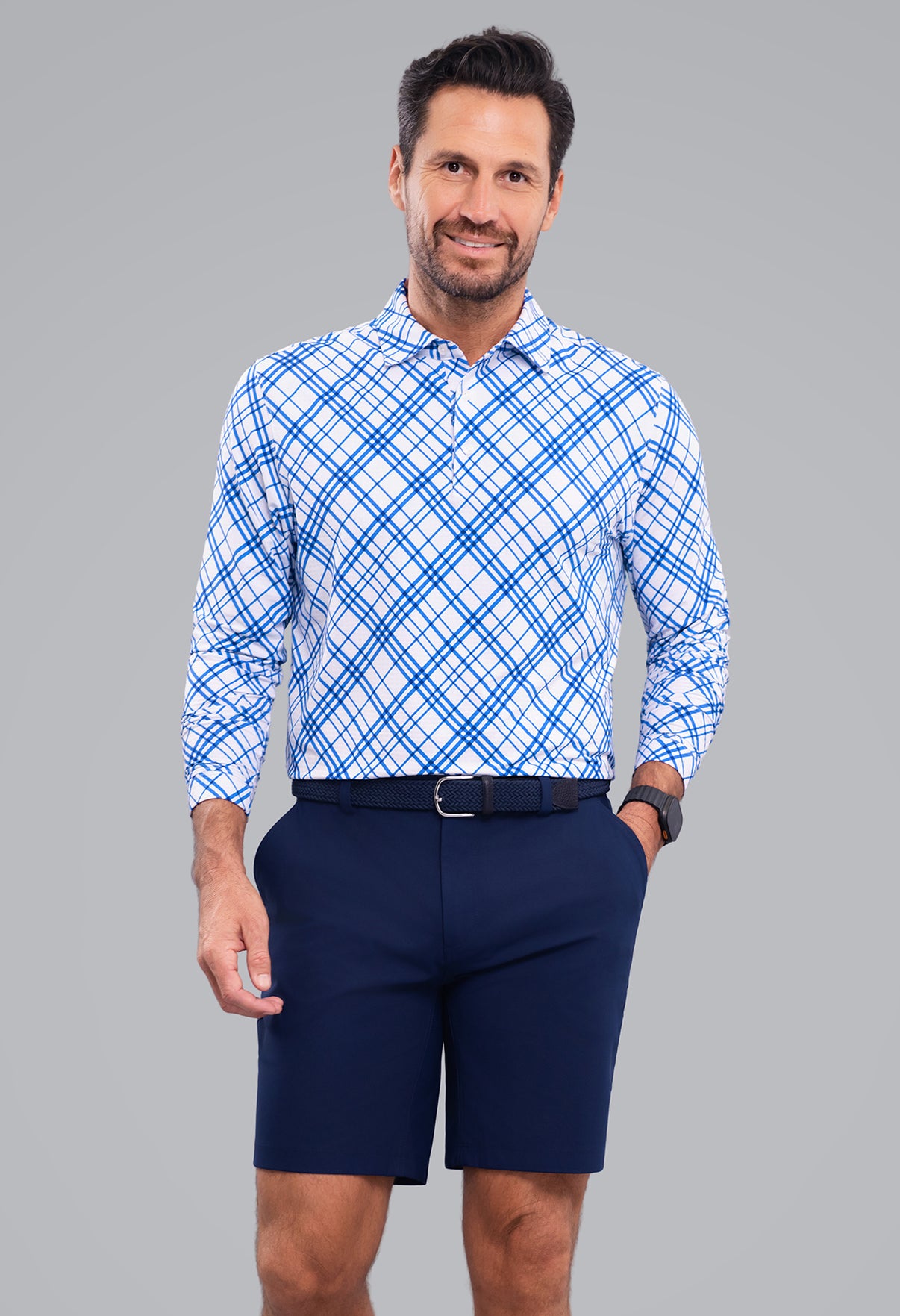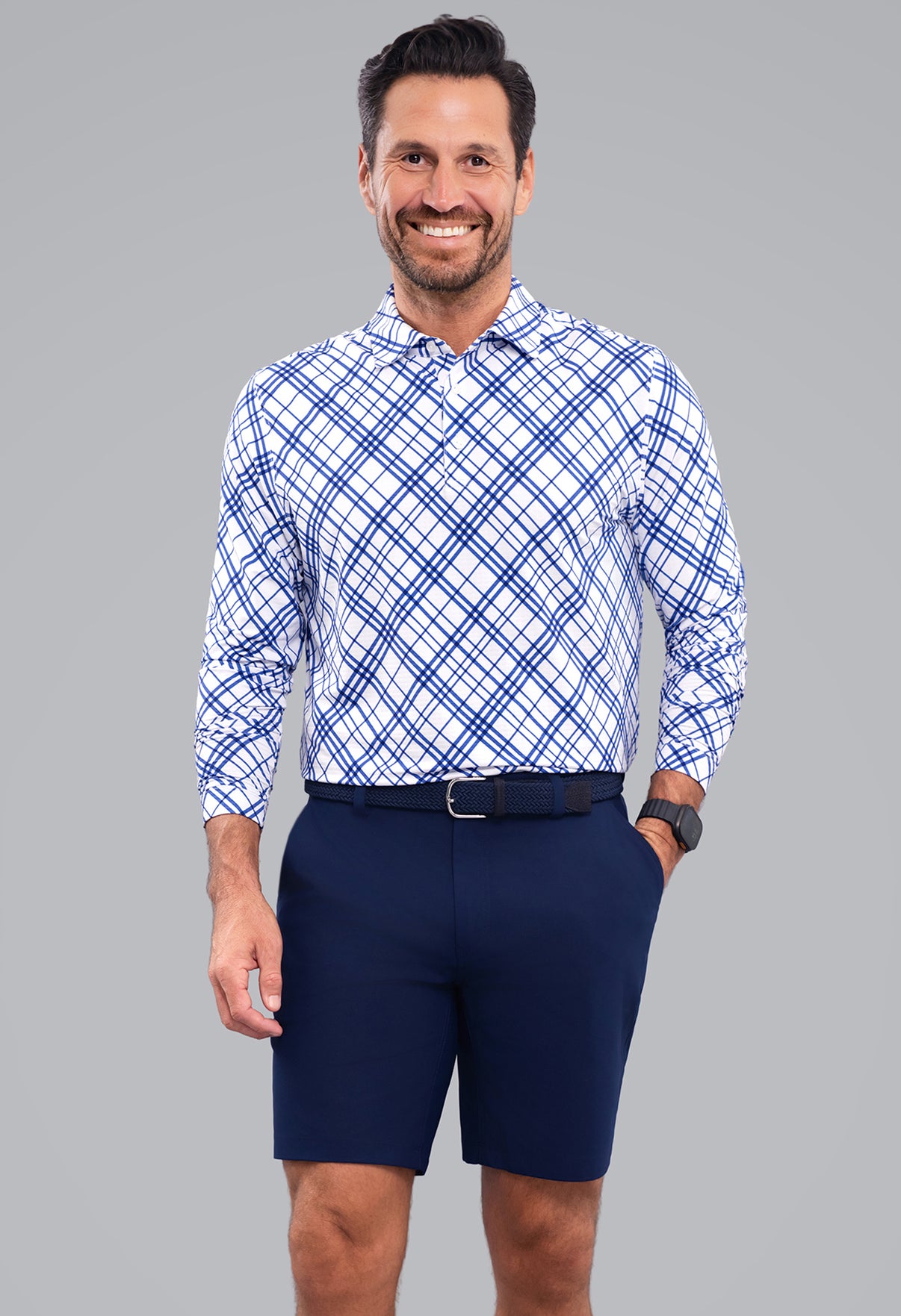 A fresh spin on a classic. The Tony Print Polo features a clean, crisscross plaid pattern in bold, versatile colorways. Designed for comfort and confidence, this polo is made from soft, light, and breathable Iceƒil® performance fabric that wicks moisture, cools skin by up to five degrees, and includes anti-stink technology. With UPF 50+ sun protection, it’s the perfect blend of polish and performance—on the course or off.