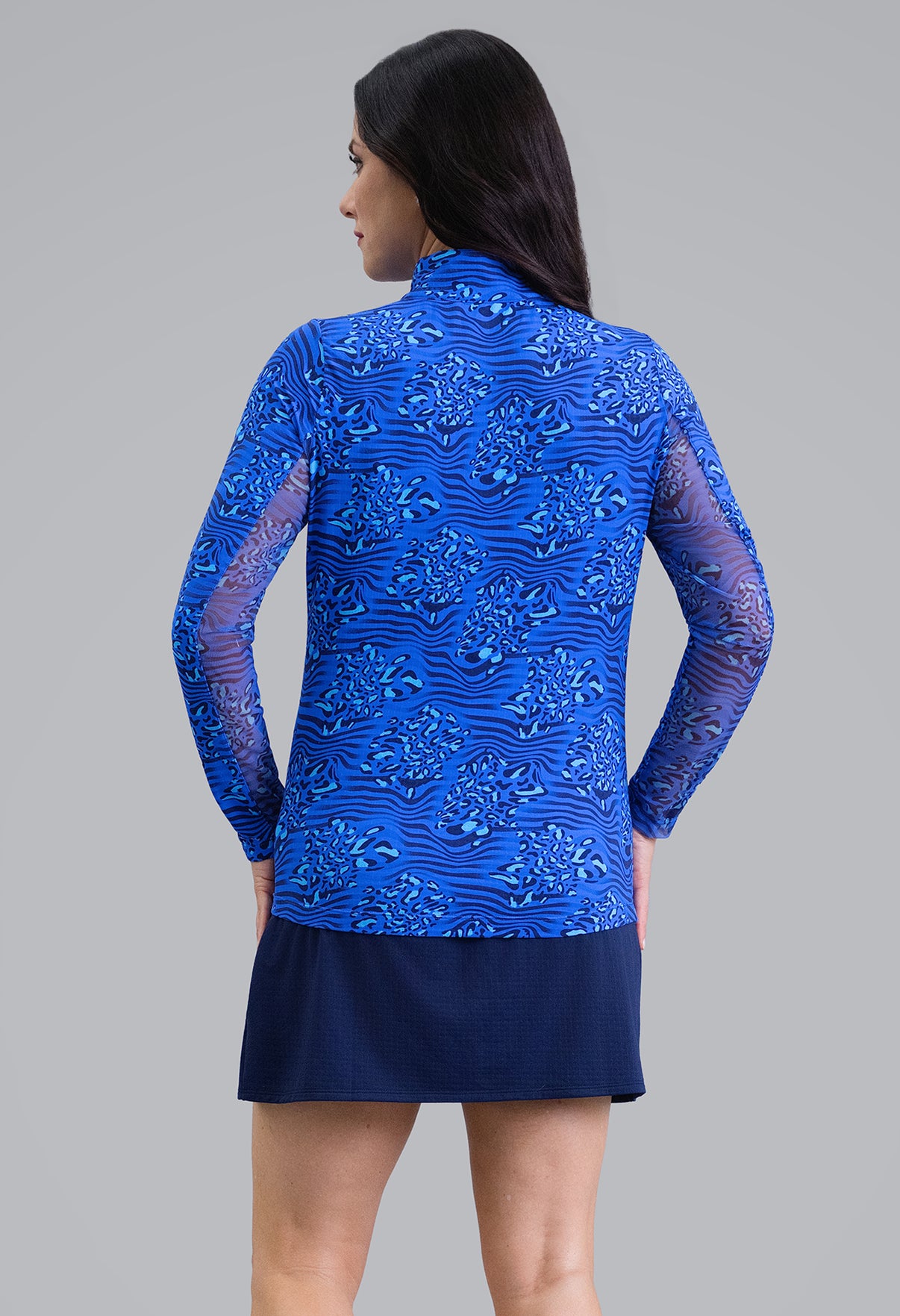 Unleash your bold side in the Yun Print Long Sleeve Mock Neck Top. This daring mix of zebra and leopard motifs creates a statement look. Made with IceFil® cooling technology, it lowers skin temperature, wicks away moisture, and offers UPF 50+ protection — all in a soft, breathable fabric that moves with you.